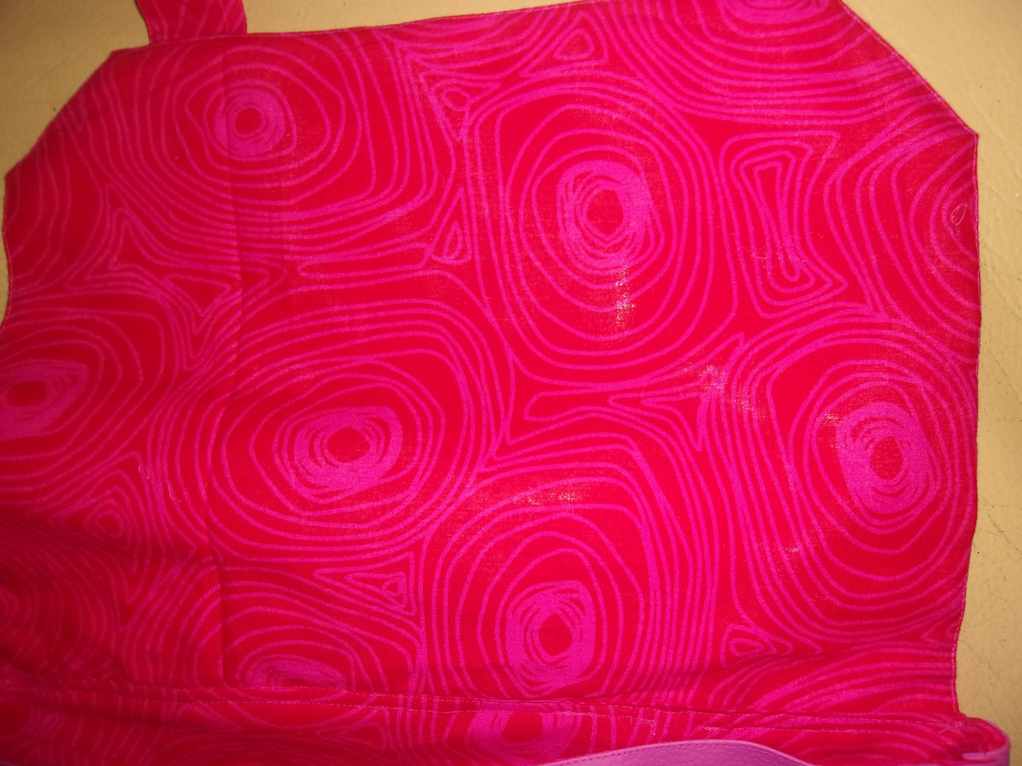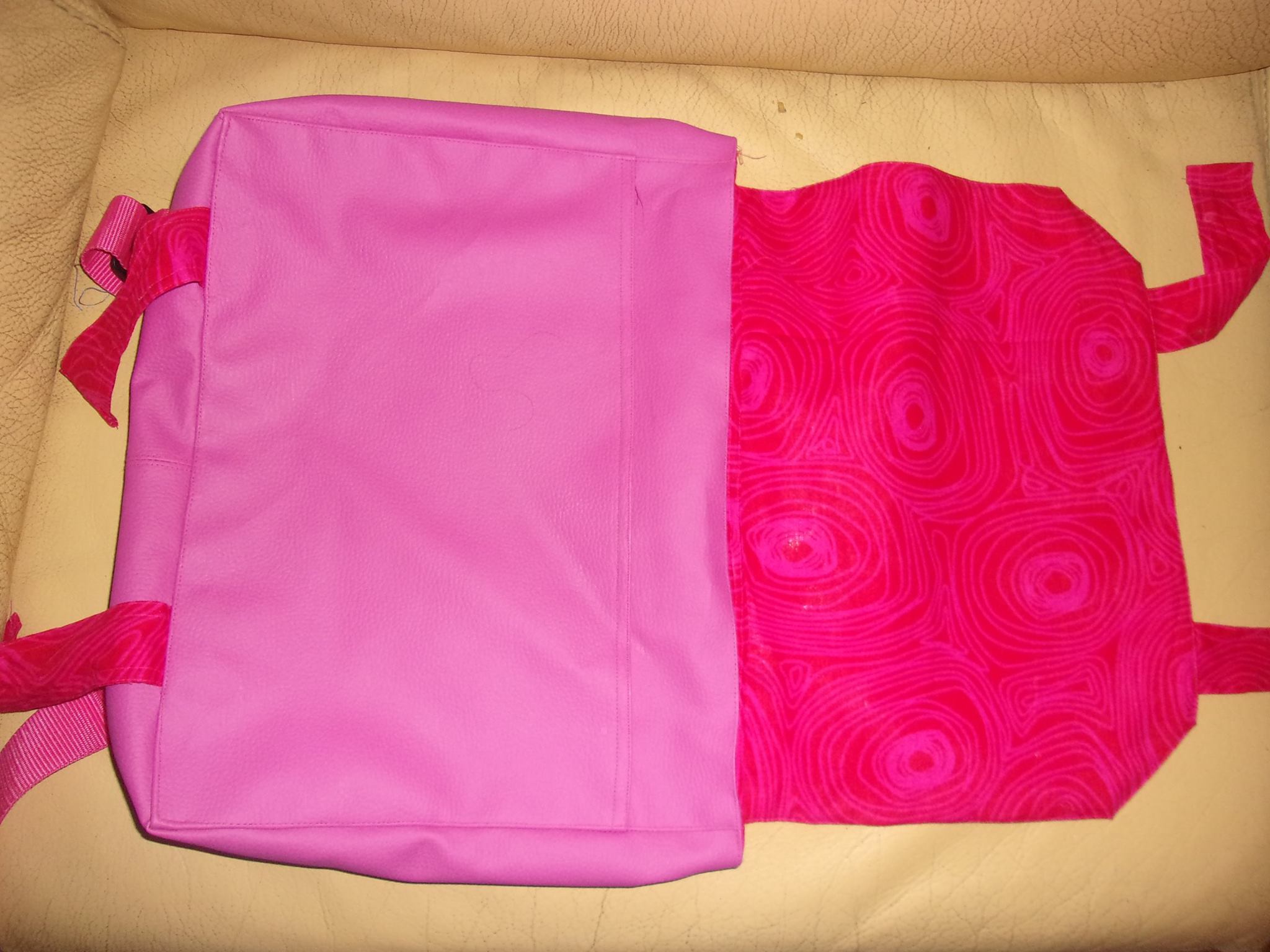 Il est réalisé en Simili cuir rose , et doublé d’un coton assez girly je trouve.
