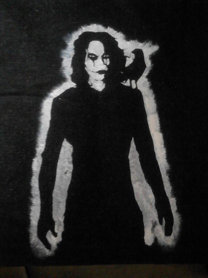 Il avait envie d’un sac à bandoulière à l’ effigie de son film préféré » THE CROW » , Personnage incarné par Brandon Lee , vous vous rappelez c’est celui devant qui nous avions bavé adolescentes……..