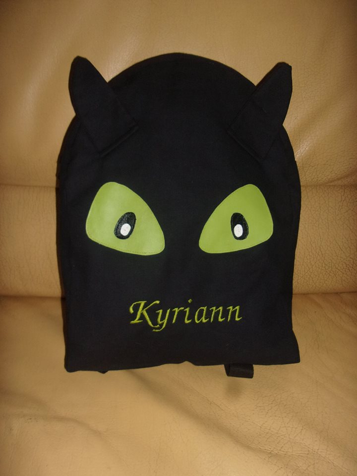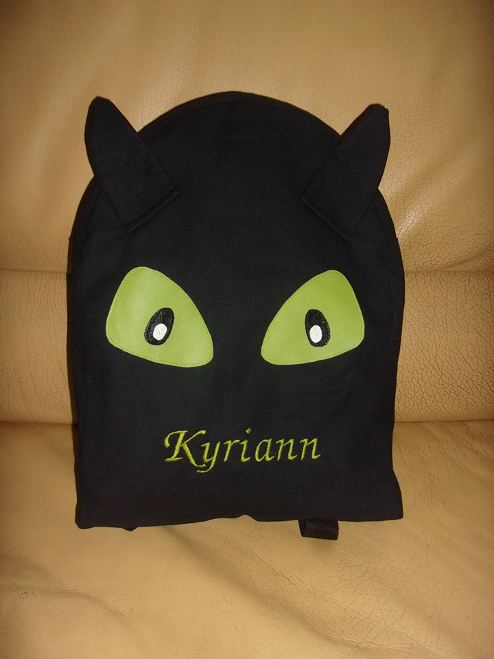 Les yeux de dragons sont en simili appliqué , Le prénom est brodé à la machine à broder.
