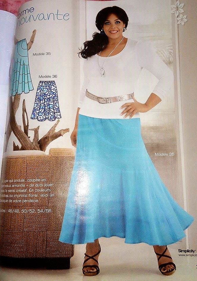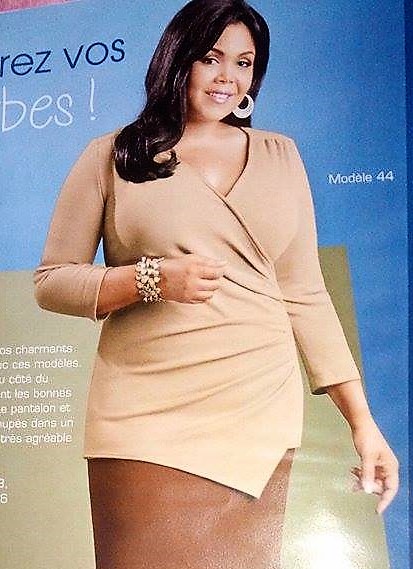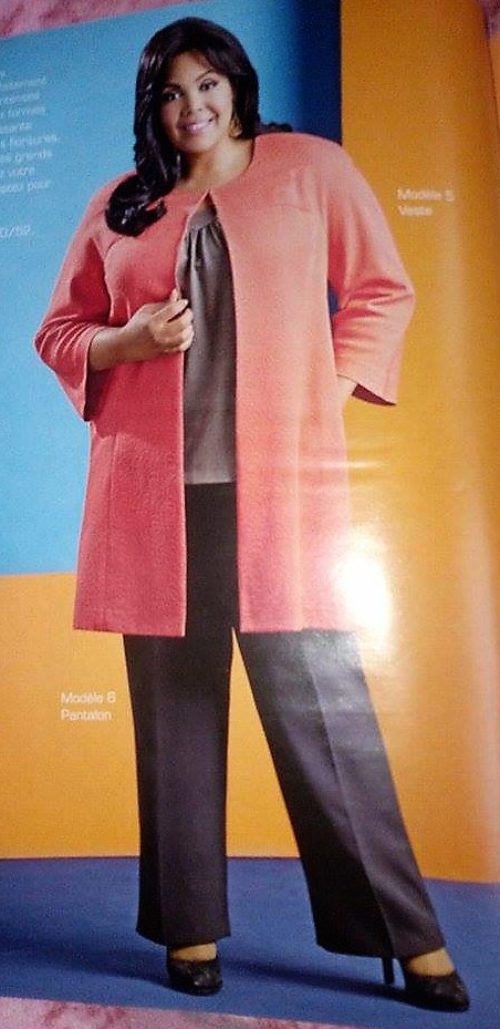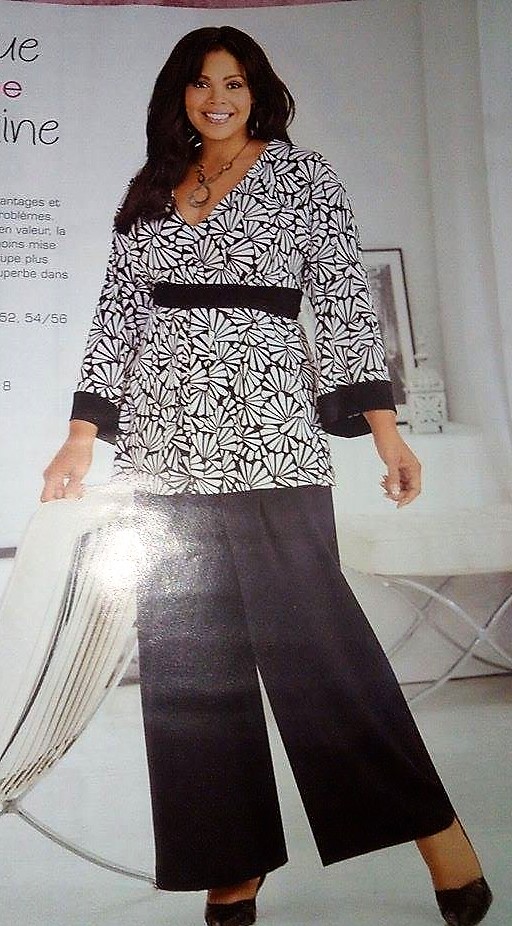 Je vous avoue que j’ai hésité à l’acquérir car la couverture ne m’inspirait pas beaucoup . Certes le mannequin est rond , cependant je trouvais la tenue beaucoup trop classique à mon goût , (j’ai un peu de mal aussi avec le mix des motifs …)