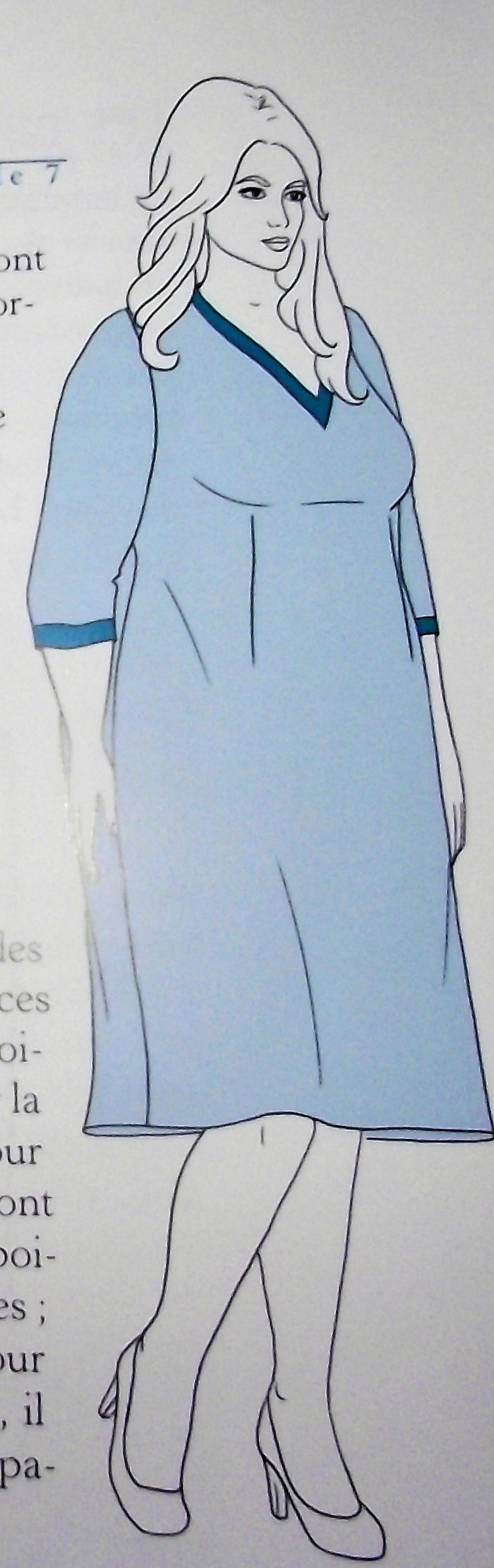 On sort les crayons et le matériel de traçage et on se lance . Vous tracerez le patron de base, qui consiste a avoir l’empreinte exacte du corps reproduite à plat sur le papier avec les pinces et courbes nécessaires. Tout le tracé est expliqué , et analysé sur de nombreuses pages , afin que le résultat soit parfait et épouse parfaitement votre corps. Dans la suite du chapitre les particularités des morphologies seront expliquées individuellement , pour la poitrine volumineuse et le ventre marqué ( c’est mon soucis avec 4 grossesses….) .