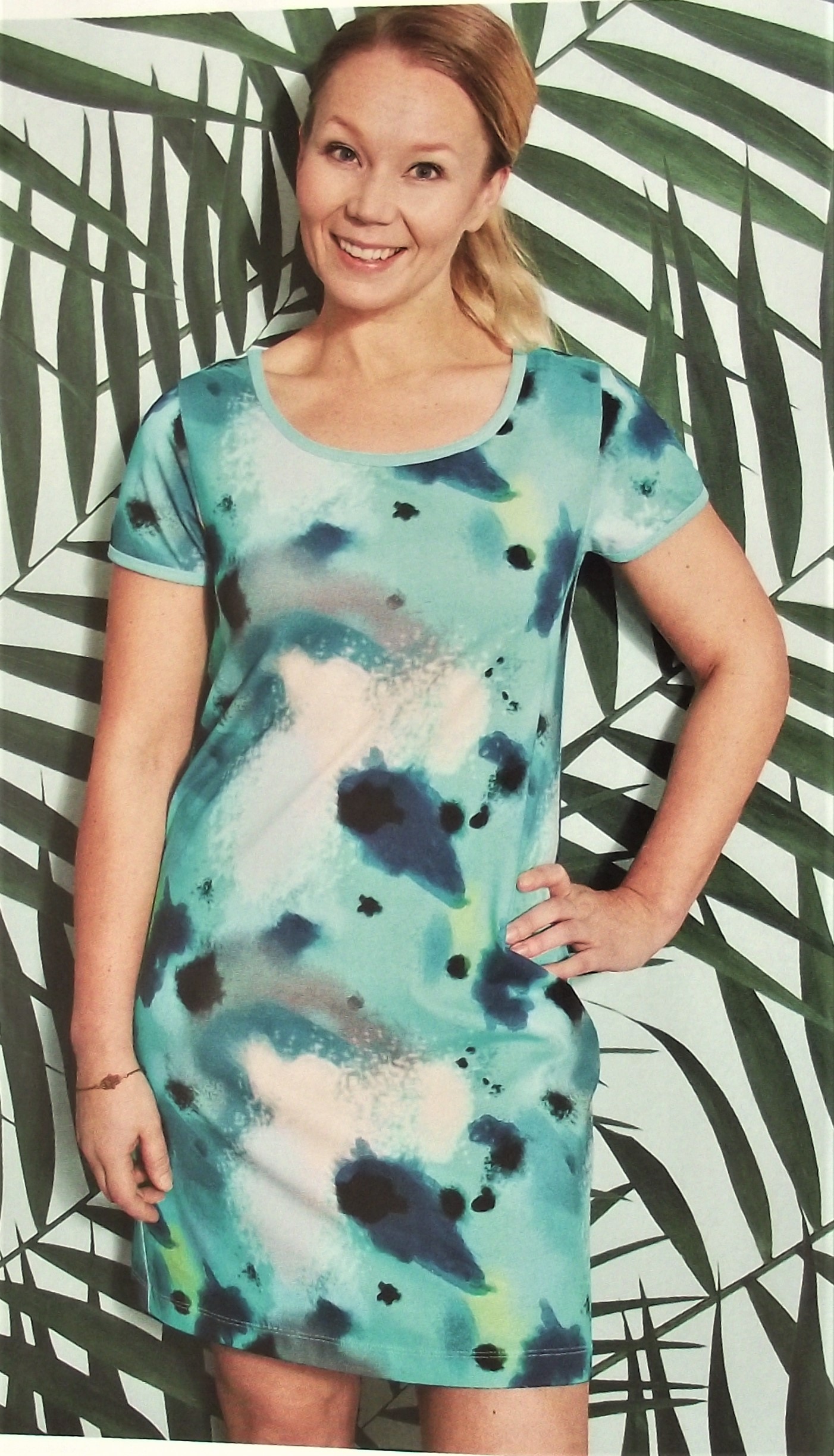 J’aime bien cette robe simple devant , et plus originale au dos avec son décolleté drapé.![]()