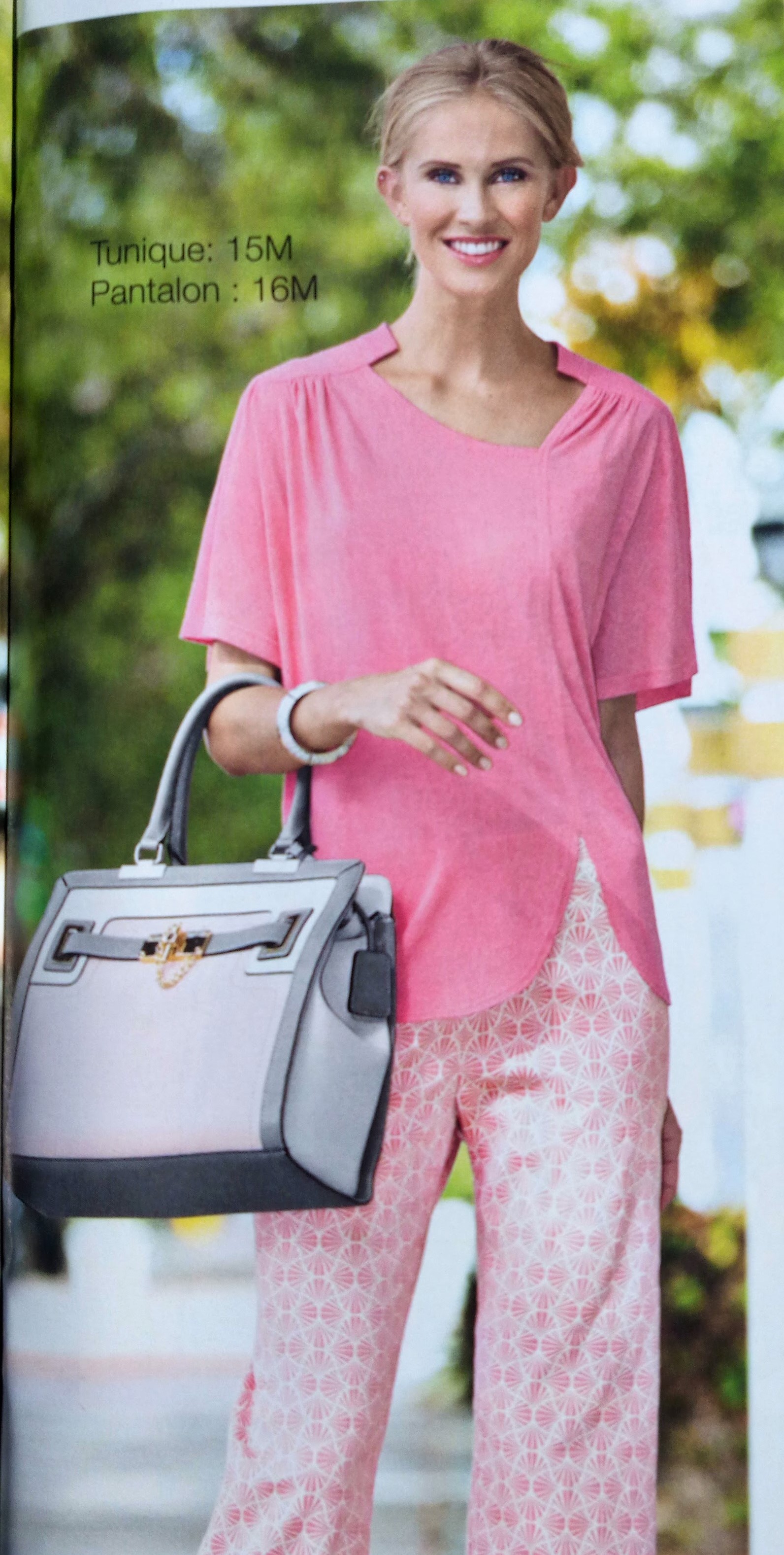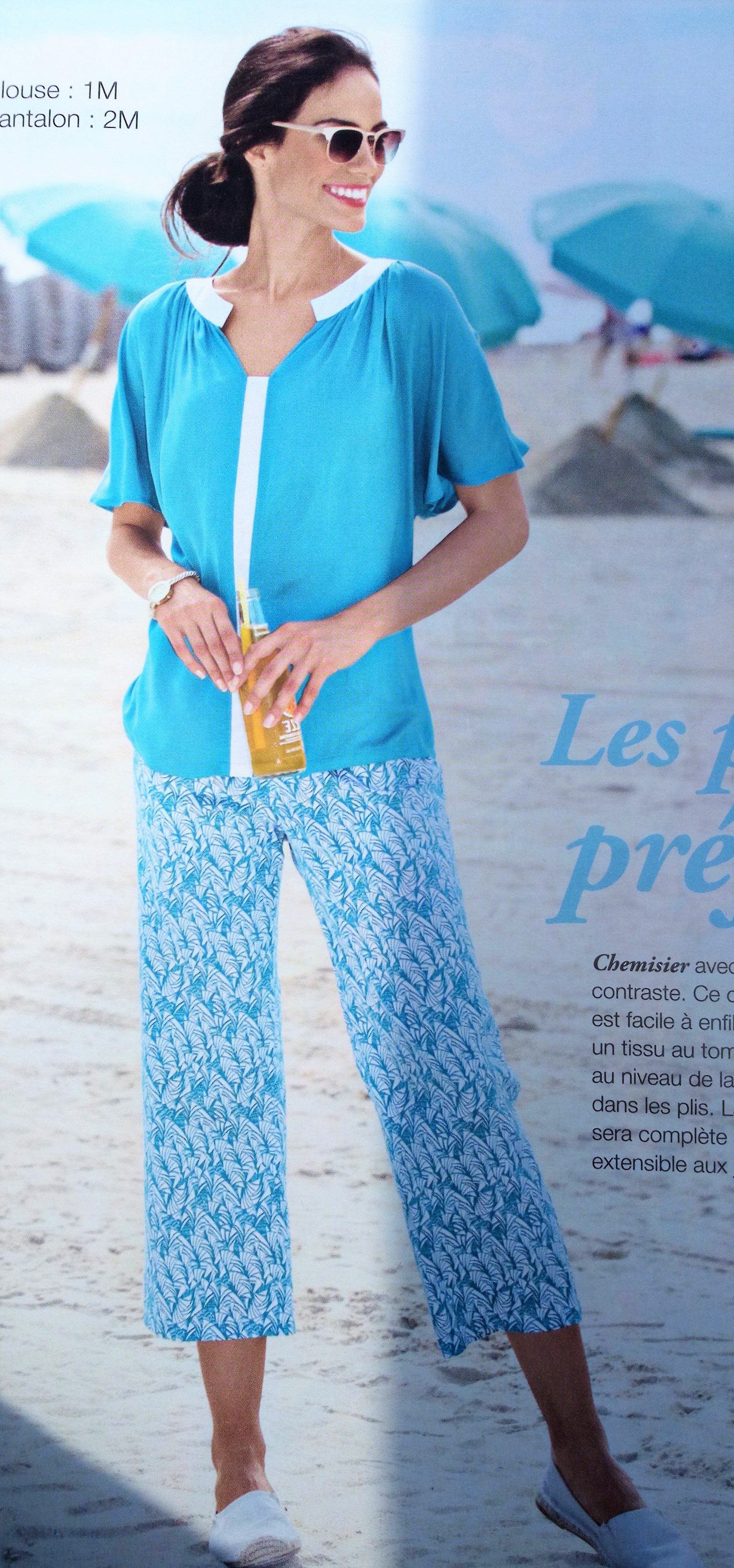 Cette petite blouse est superbe aussi. Elle est évasée . Les pinces partent du cou pour mettre en valeur l’encolure goutte d’eau . Les manches sont a godets avec une ouverture sur l’épaule. Elle est dans les tailles 40/42, 44/46, 48/50 .