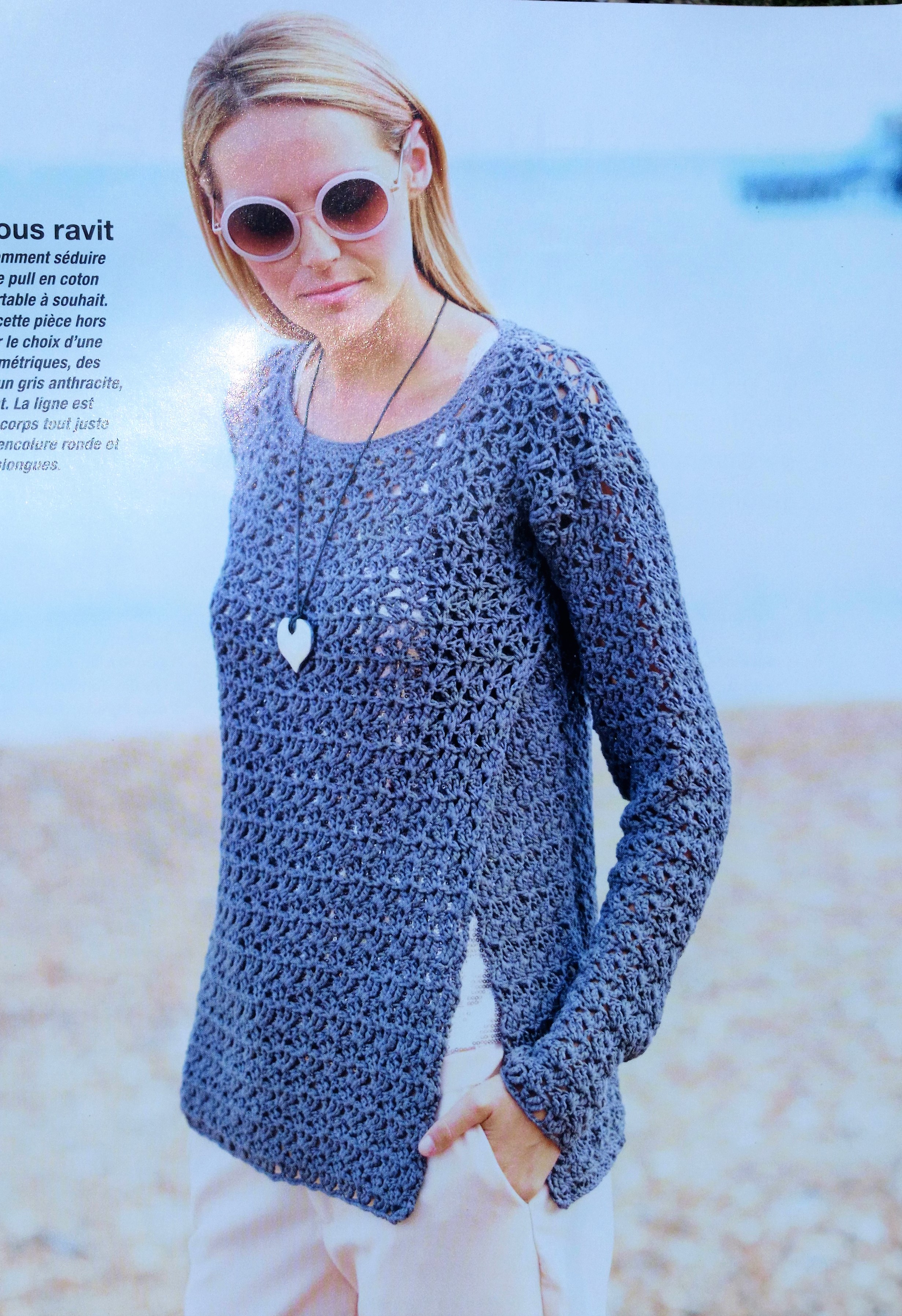 Voici un diaporama , afin que vous puissiez visualiser une partie du contenu de la revue . Il y a d’ailleurs un très beau pull au crochet qui va jusqu’au 48.