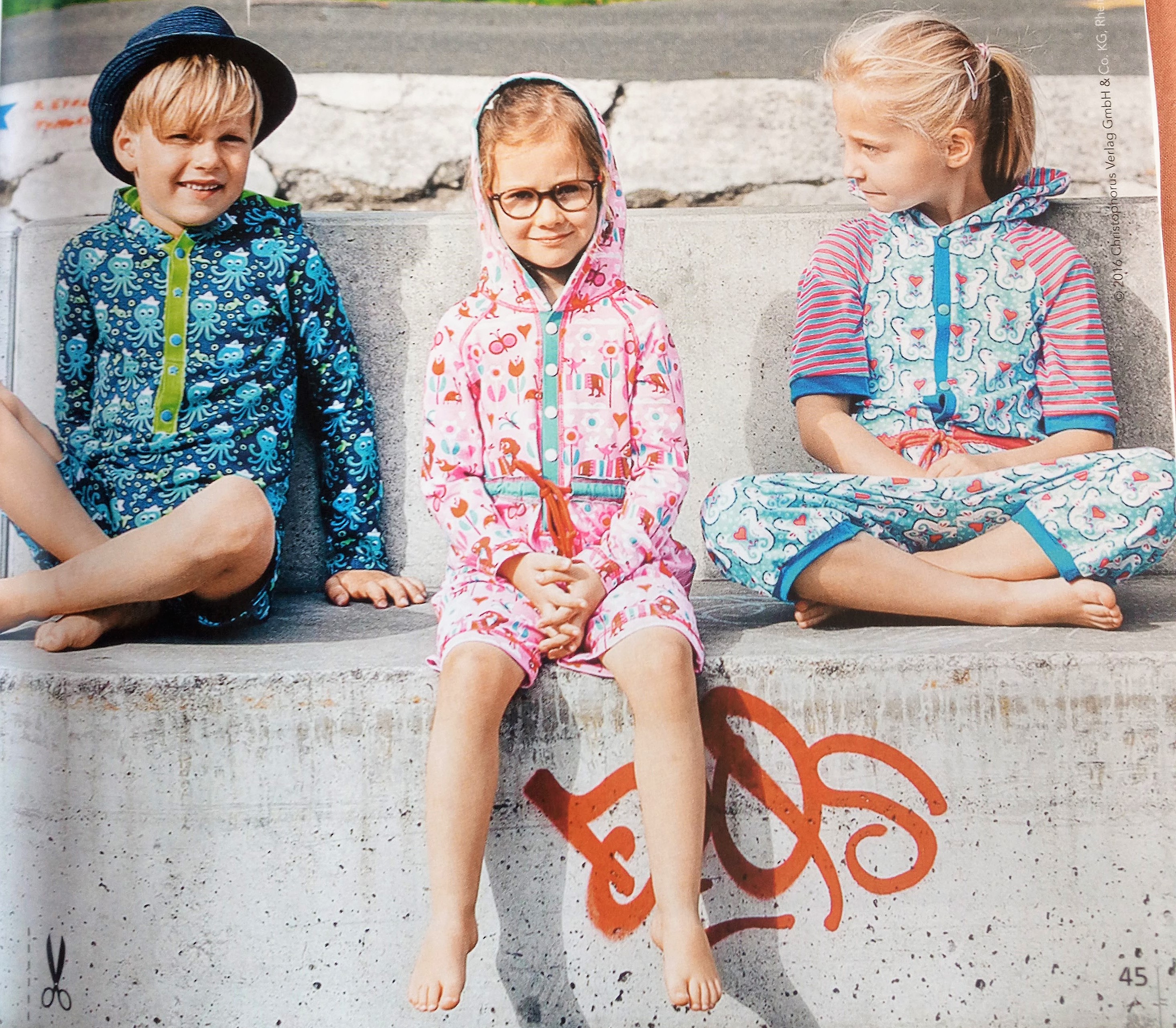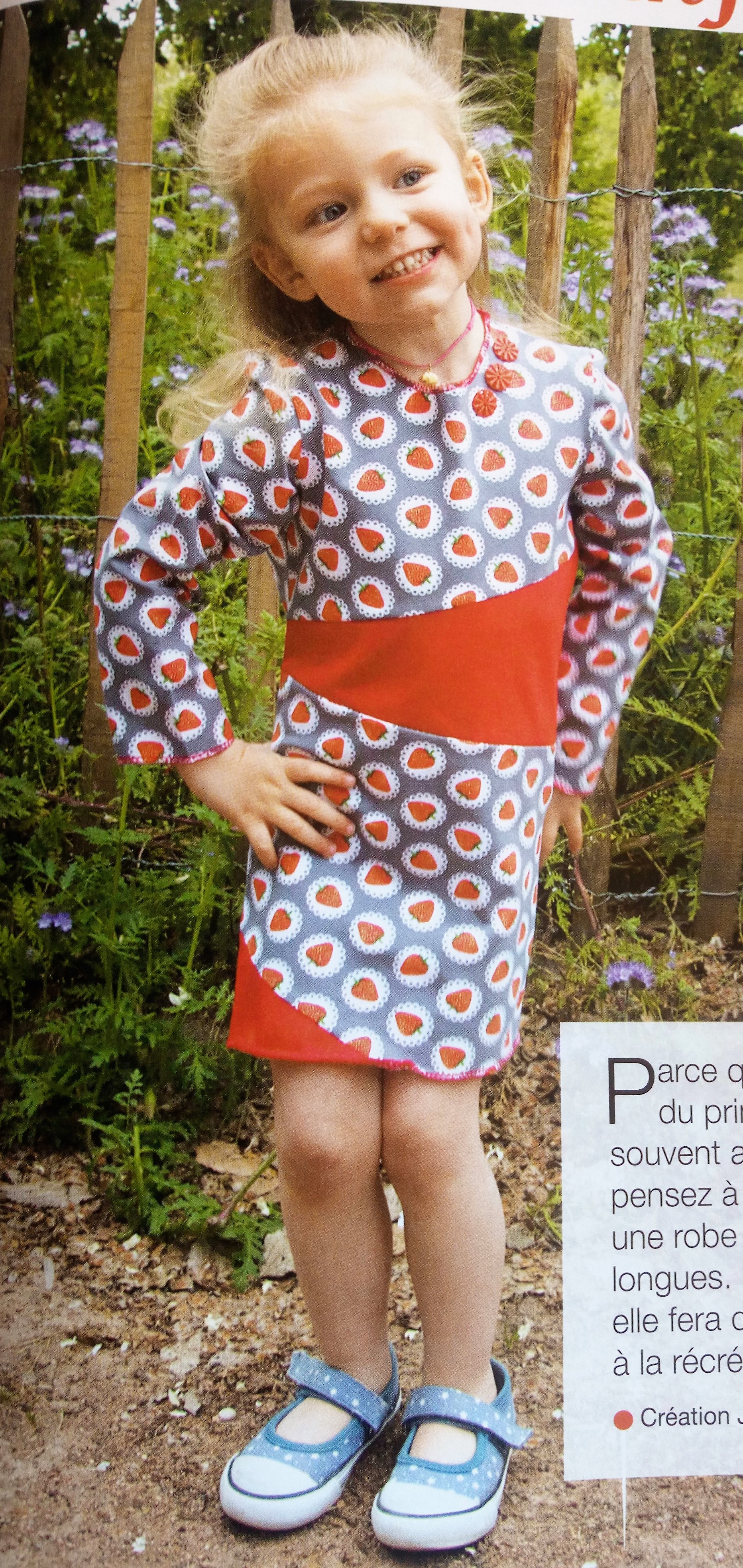 J’aime beaucoup cette tunique enfant , pas nécessairement pour un pyjama comme préconisée dans le revue. Je la verrai bien en veste en l’ouvrant sur le devant. Elle est de la taille 2 ans au 8 ans.