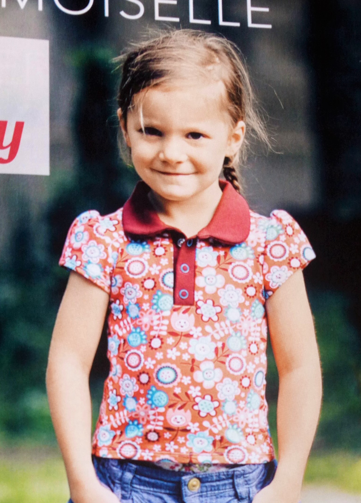 Cette petite robe est mignonne avec son pochon et serre tete assortis. Vous la trouverez de la taille 90 à 120 cm . Patron qu’il vous faudra tracer vous même.