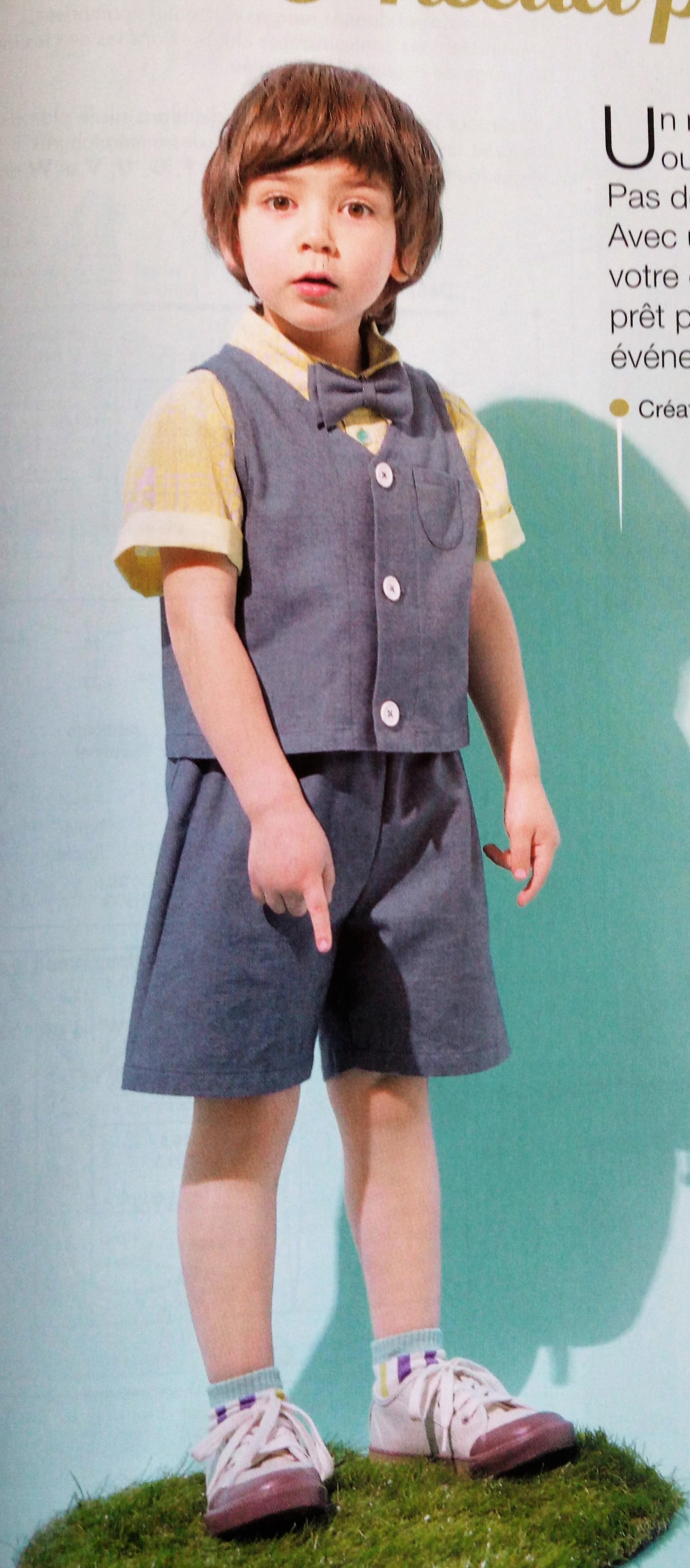 Pour ces deux tenues , vous aurez aussi a redessiner le patron vous même en vous aidant du schéma. Pour l’ensemble garçon d’honneur , sur la planche de patron vous trouverez: