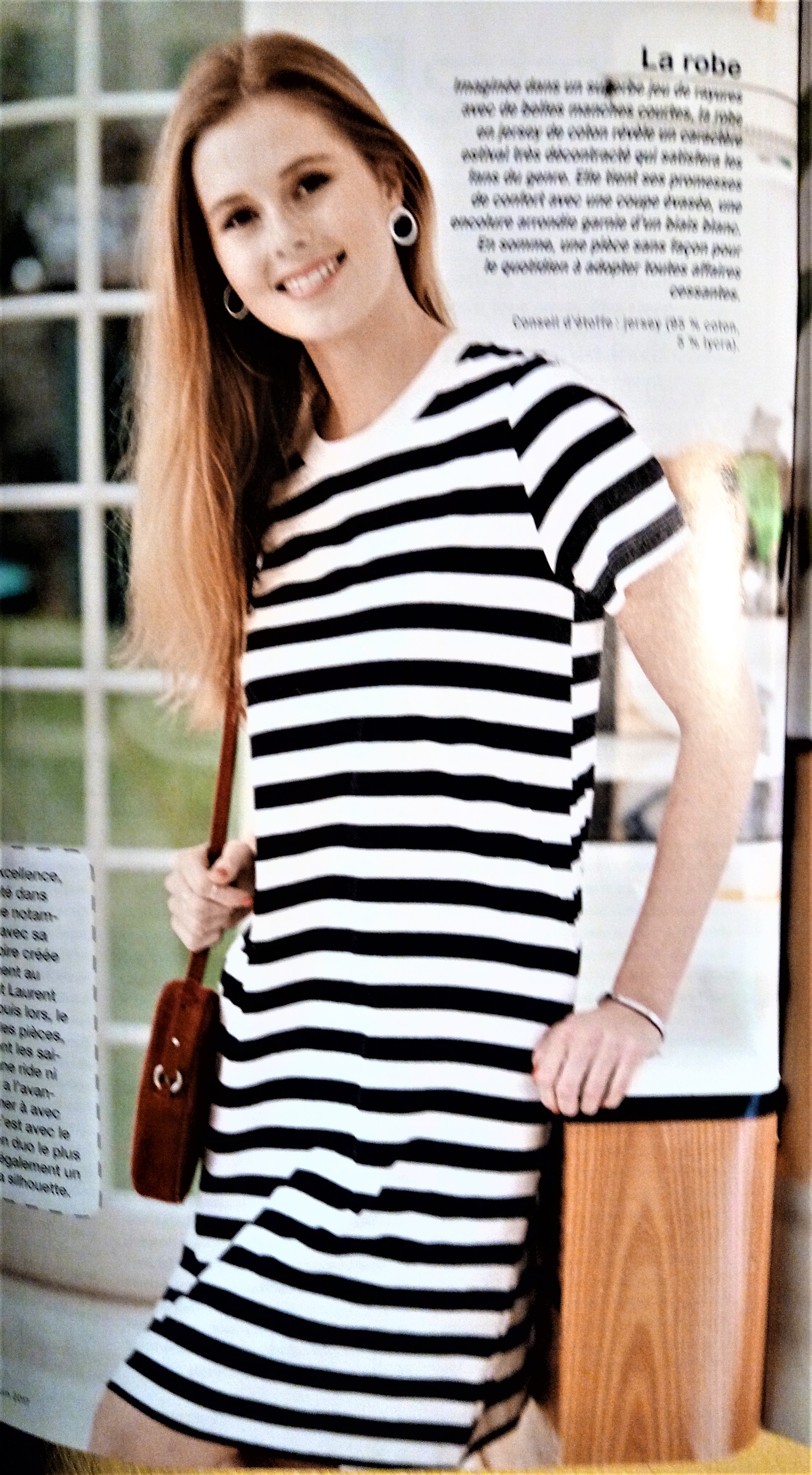 Une robe dans mon top comme c’est étonnant ! Celle ci est réalisée dans un tissus non extensible. Elle possède une encolure rode des manches courte de forme raglan . le petit détail qui fait la difference tout en soulignant la taille , c’est ce nœud . La robe est fermée au dos à l’aide d’une fermeture à glissière invisible. Elle est en taille 36 à 46 .