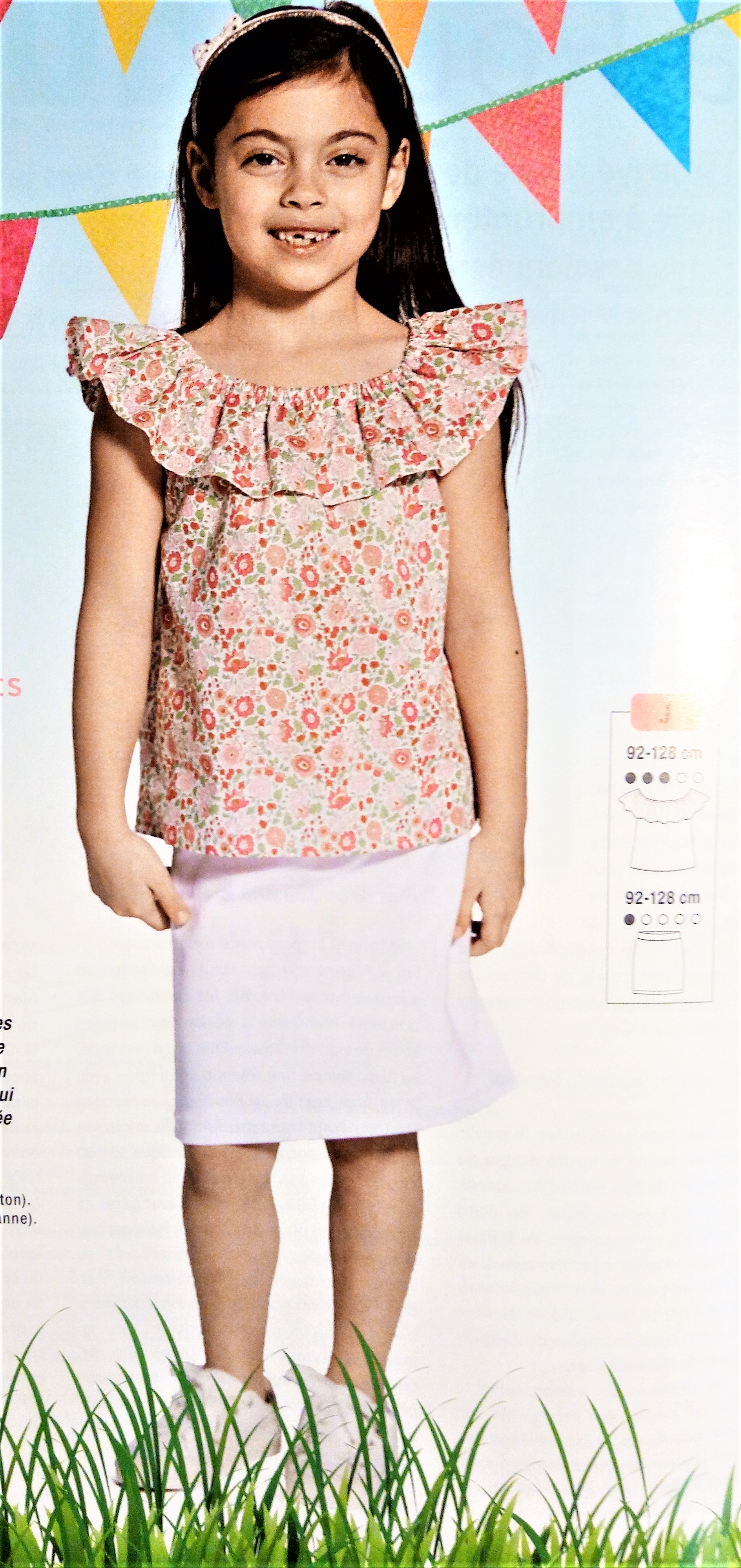 Le dernier , sera pour cette robe de petite fille. Elle va de la taille 92 à 128 cm. Elle est réalisé en broderie anglaise. Elle n’échappe pas à la mode des épaules découvertes , mais ici c’est fait de manière subtile.