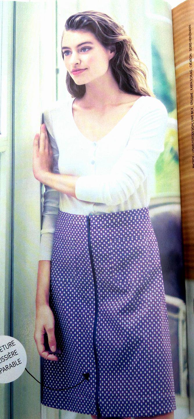Cette jupe est superbe elle aussi. Dans la revue elle est réalisée dans un lin à carreau. La partie asymétrique rapportée est coupée dans le biais . Celà rajoute du cachet à cette jupe.