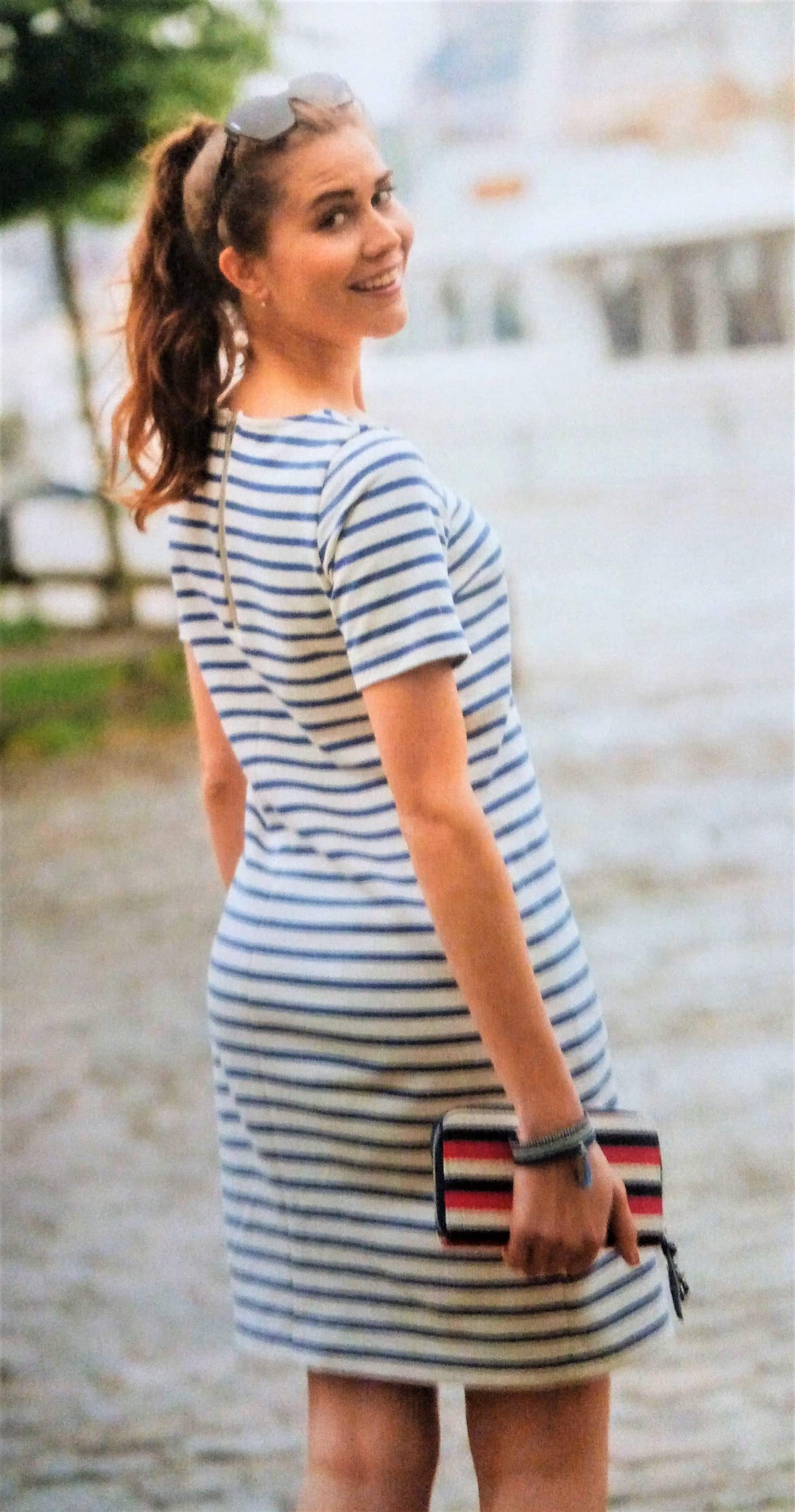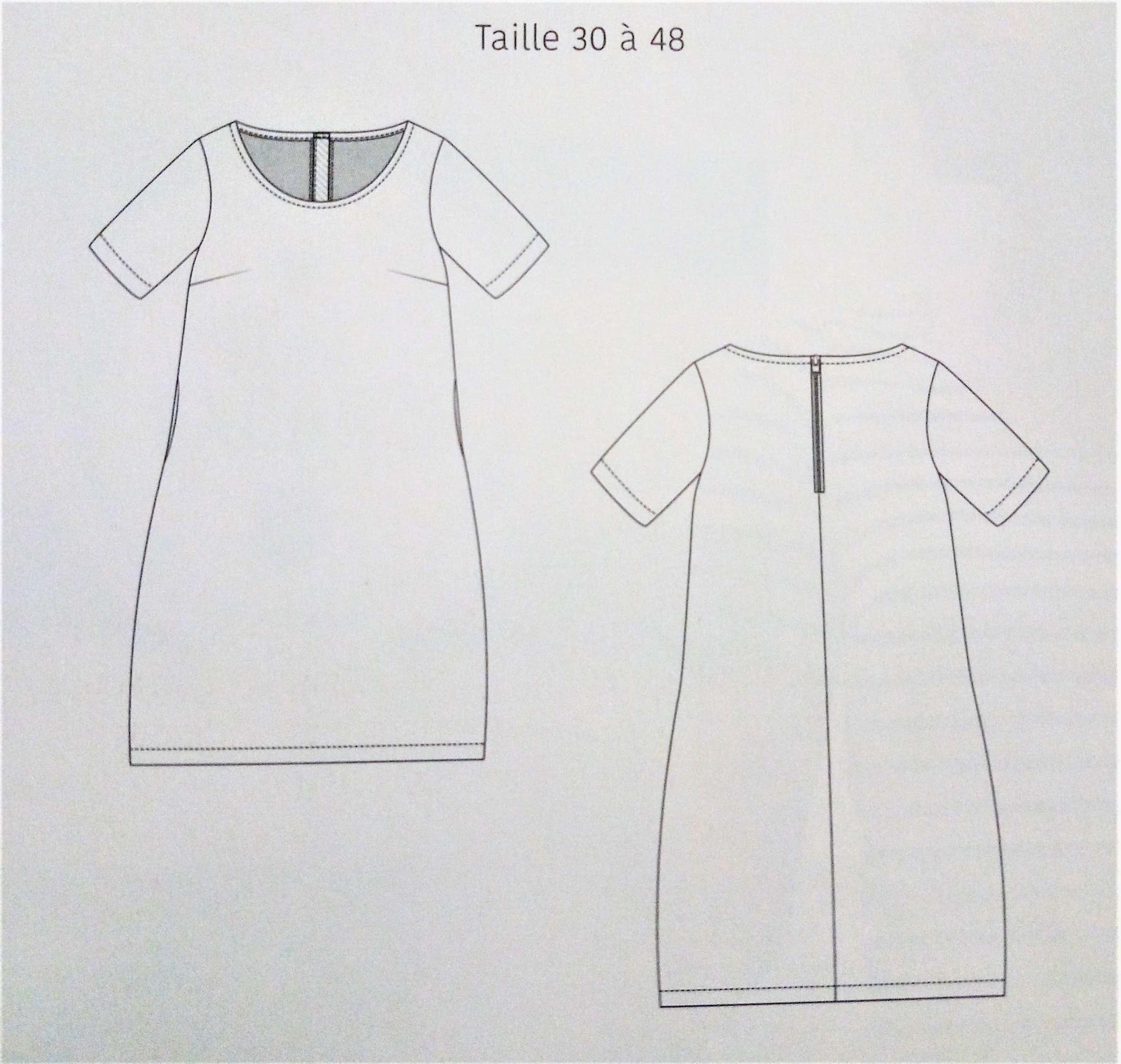 Un basique indispensable dans la garde robe il s’agit de la robe Solange . Elle va de la taille 30 à 48 dans la revue . Les tailles 50 à 56 sont à télécharger et imprimer ici.