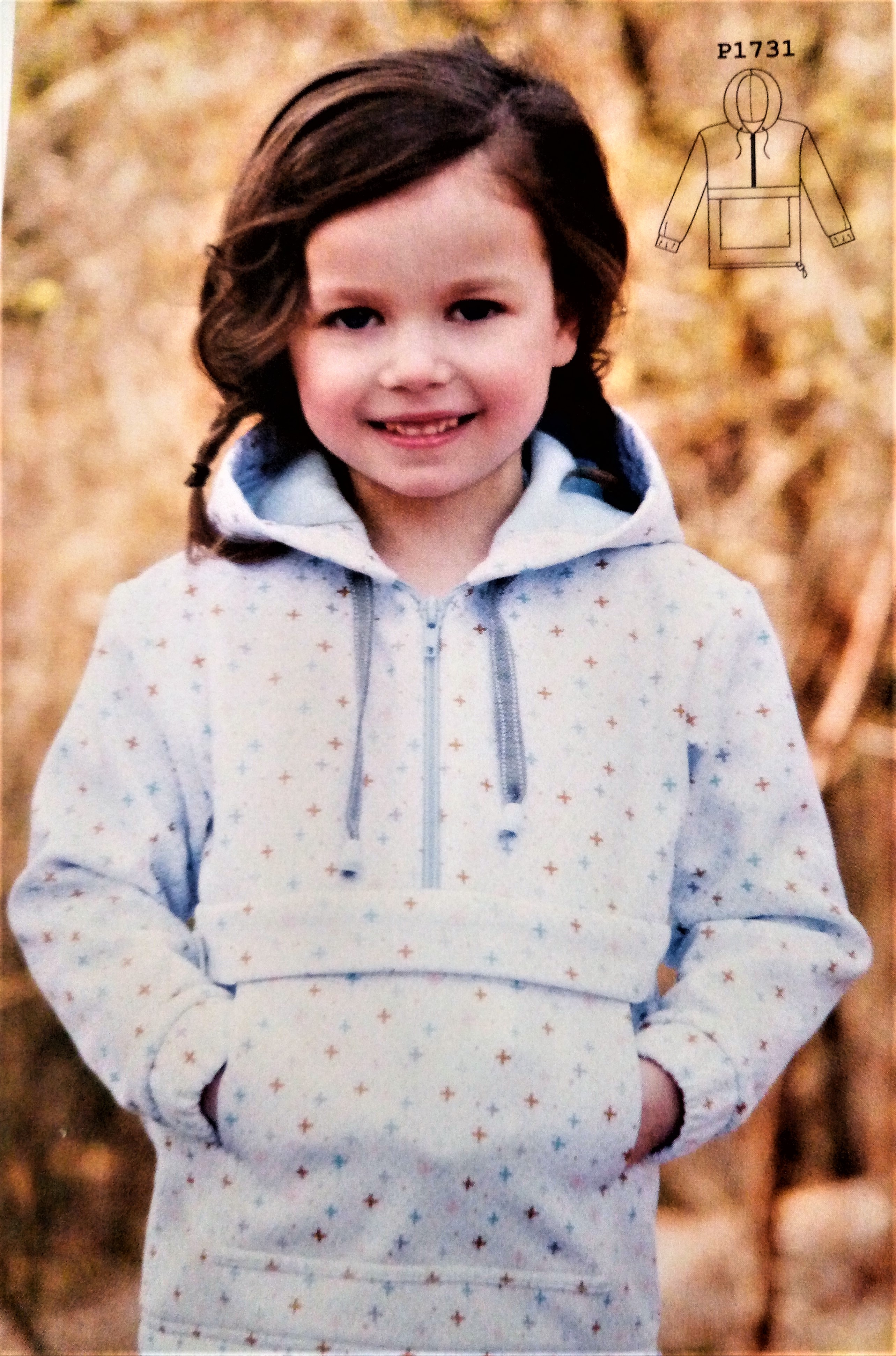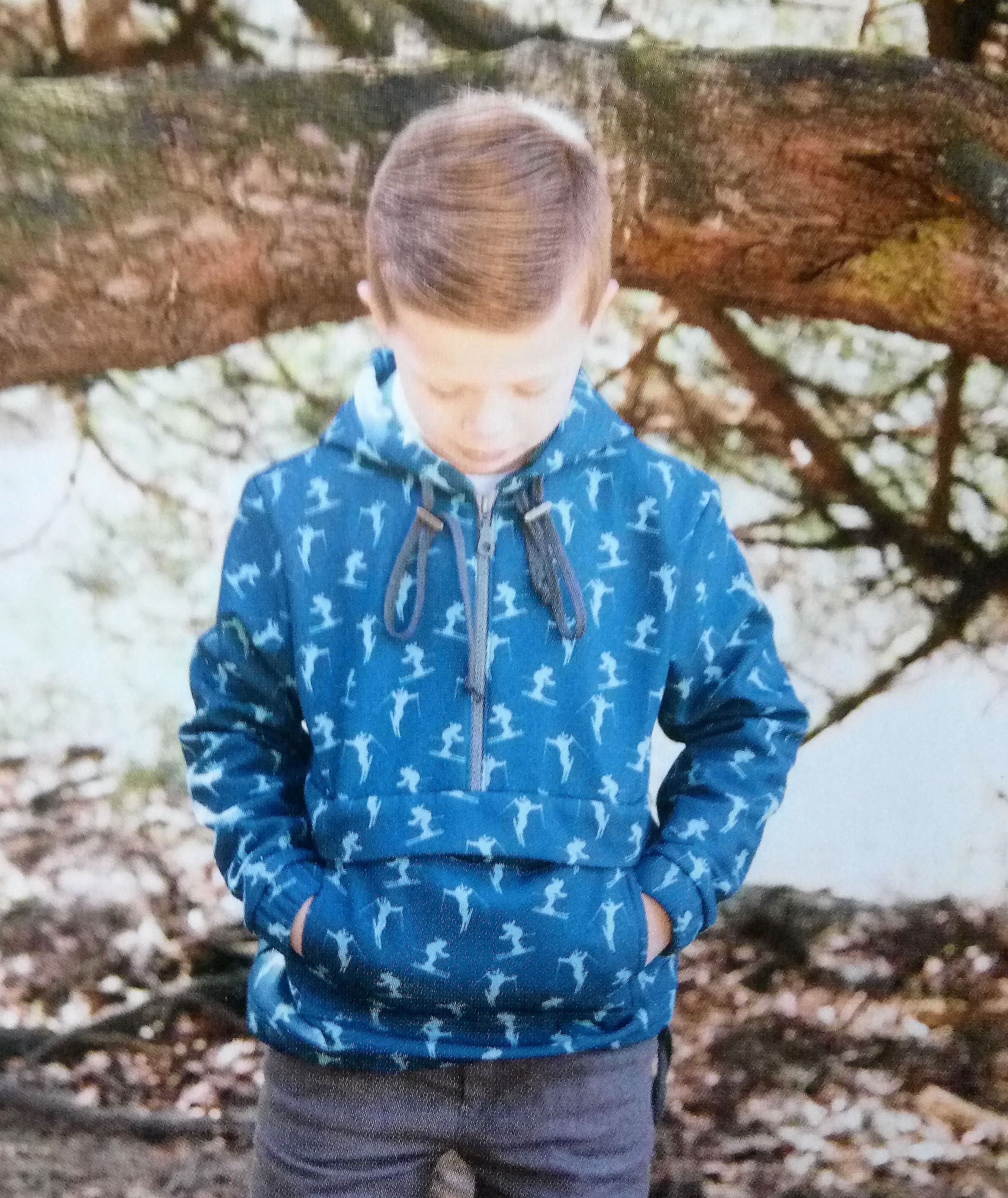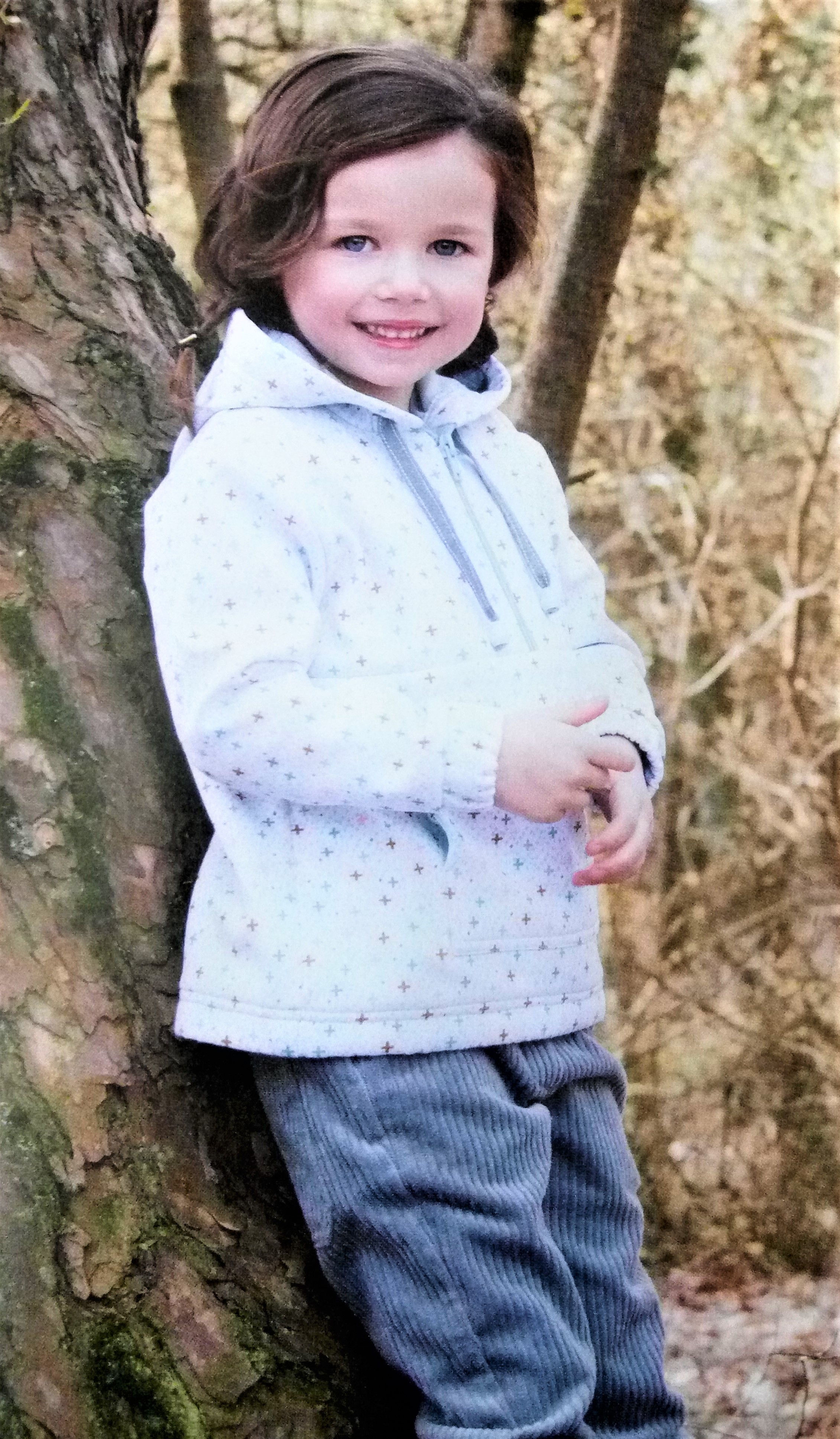 L’anorak à enfiler ira aussi bien au filles qu’aux garçons. Il a une capuche à cordons et une grande poche devant pour y mettre les mains . L’idéal pour affronter les premiers froid à la rentrée.