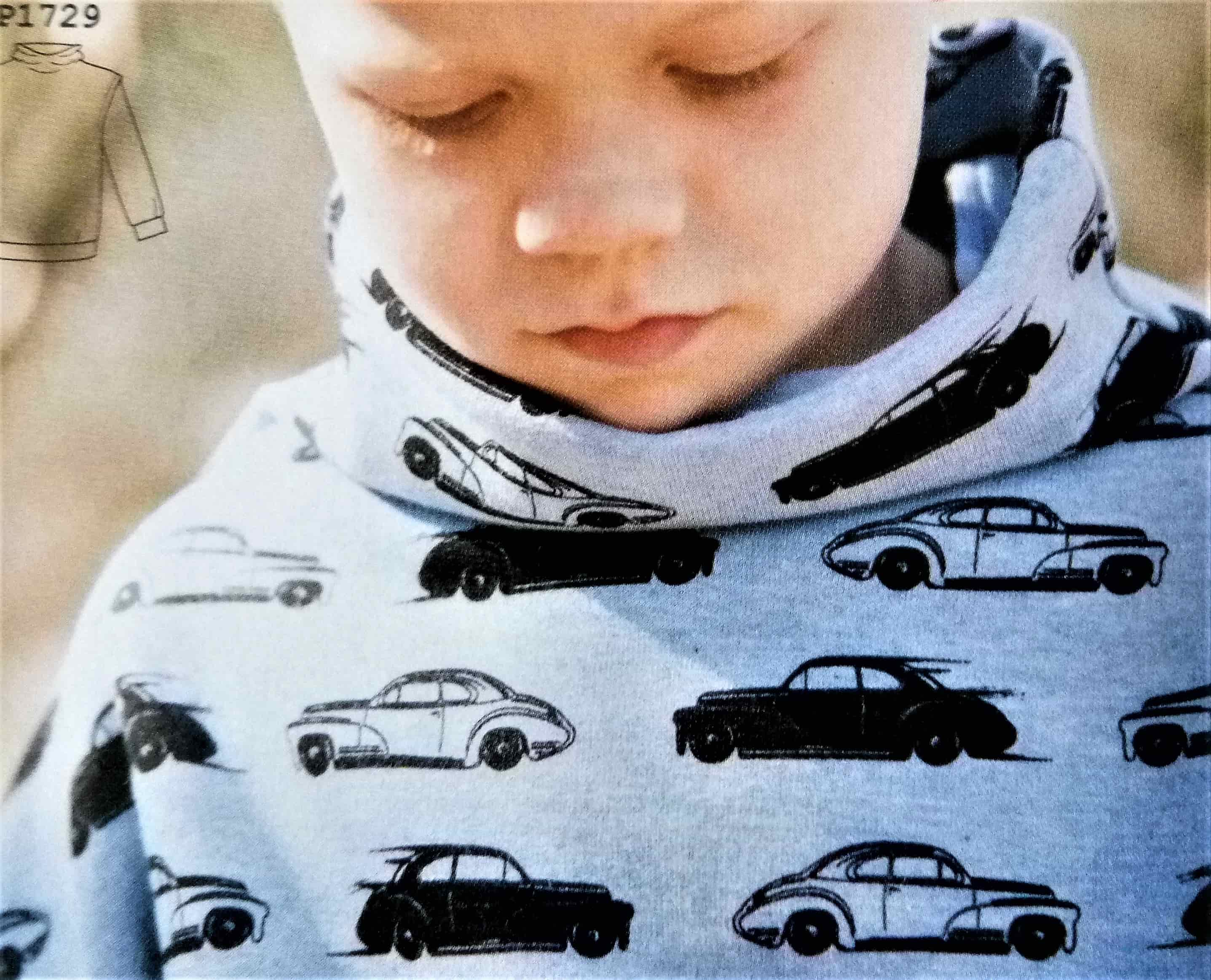Ce sweat est original avec son col boule/ roulé . Détail original les manches longues rapportées sur le pull . Je pense que ça peut être sympa de jouer avec les couleurs . J’aime beaucoup 🙂 .