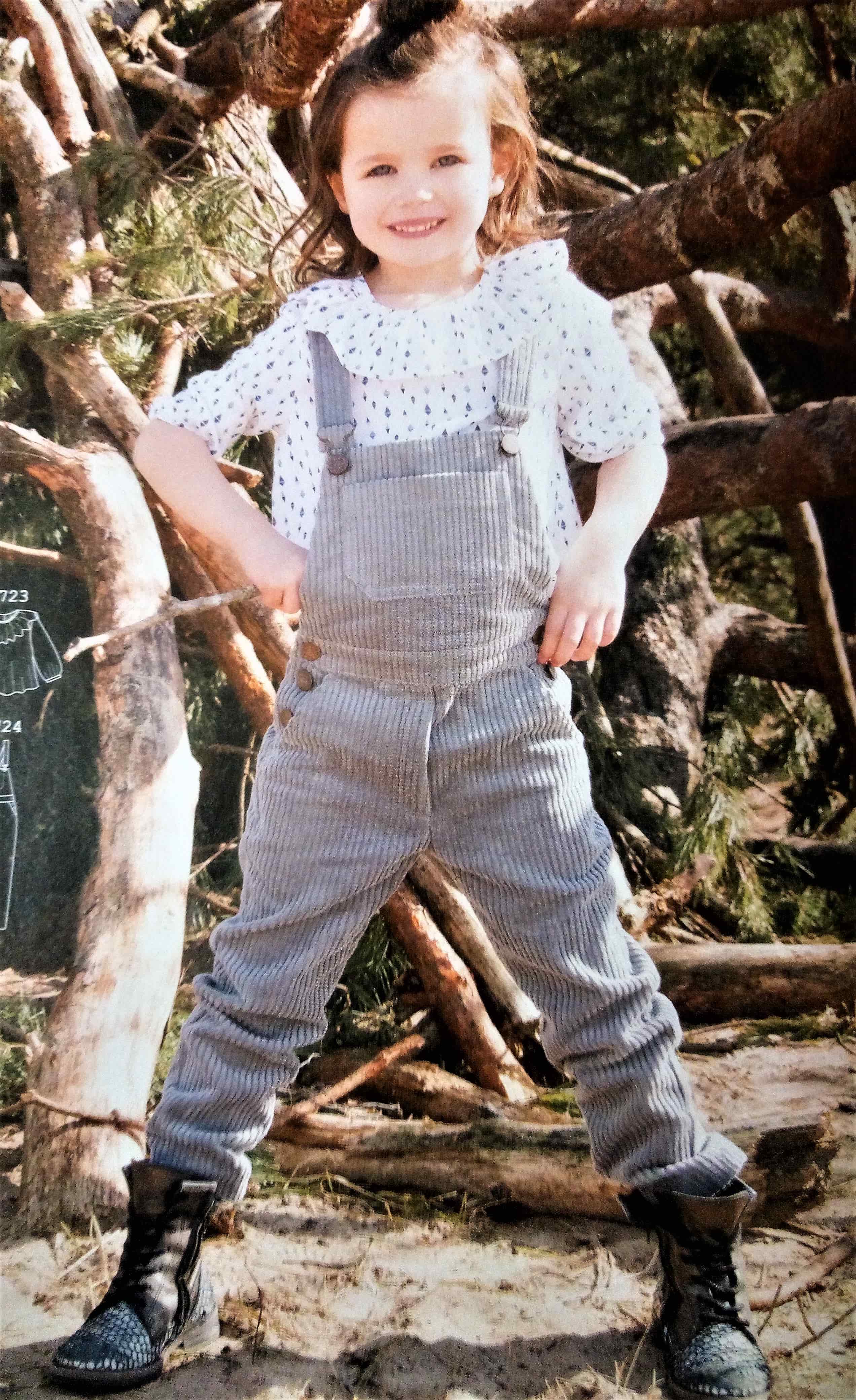 Cette salopette est un grand classique mais c’est une piece que j’adore pour les filles avec un haut trés girly le mélange est sympa. Comme ici avec la blouse du dessus 🙂 . Ma fille a mis une option dessus 🙂