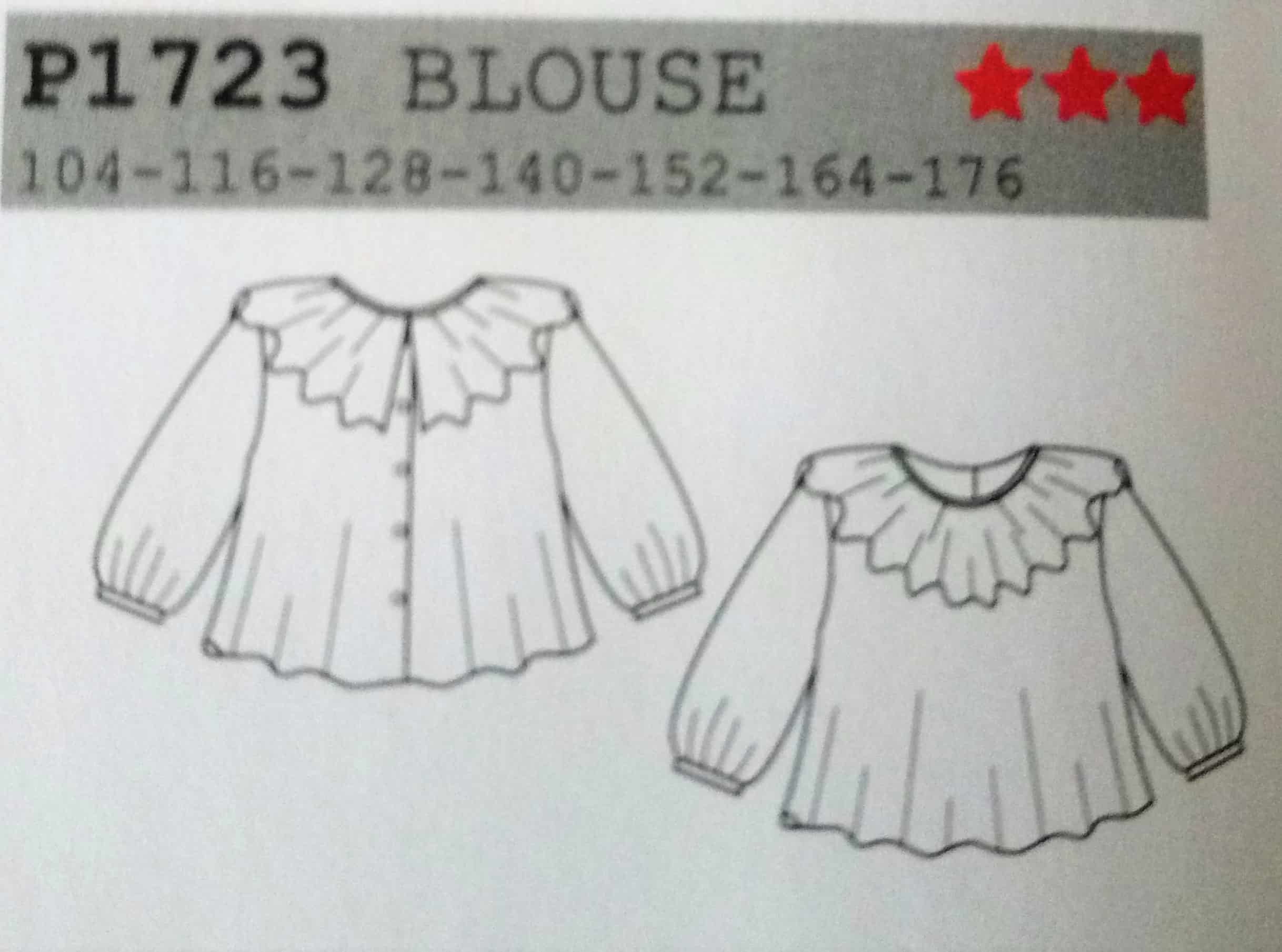 J’adore cette petite blouse , avec son grand col. Elle est boutonnée dans le dos. Les bas de manches sont légèrement resserrés à l’aide d’un élastique sous coulisse.