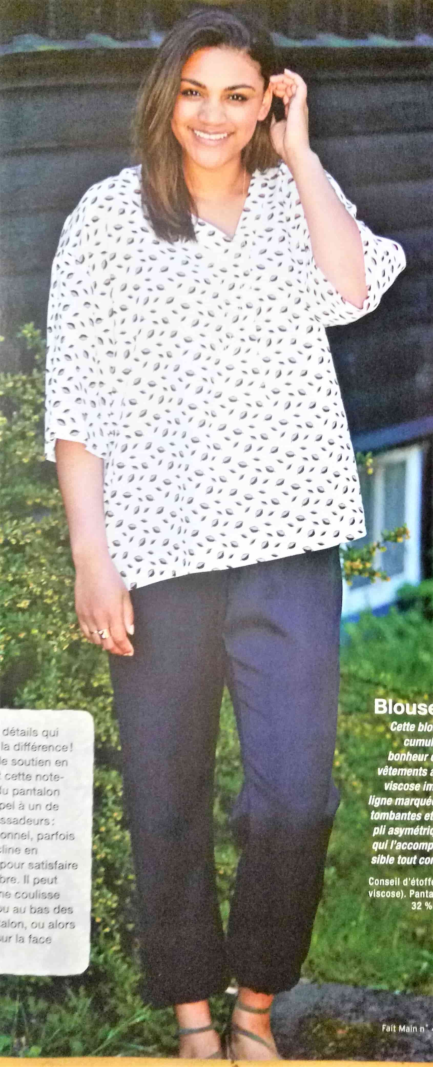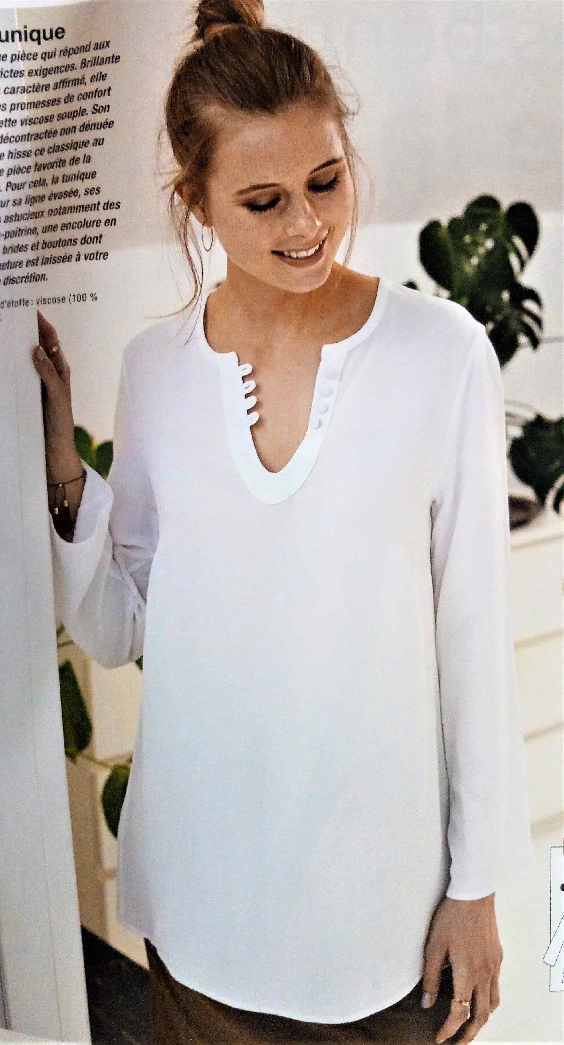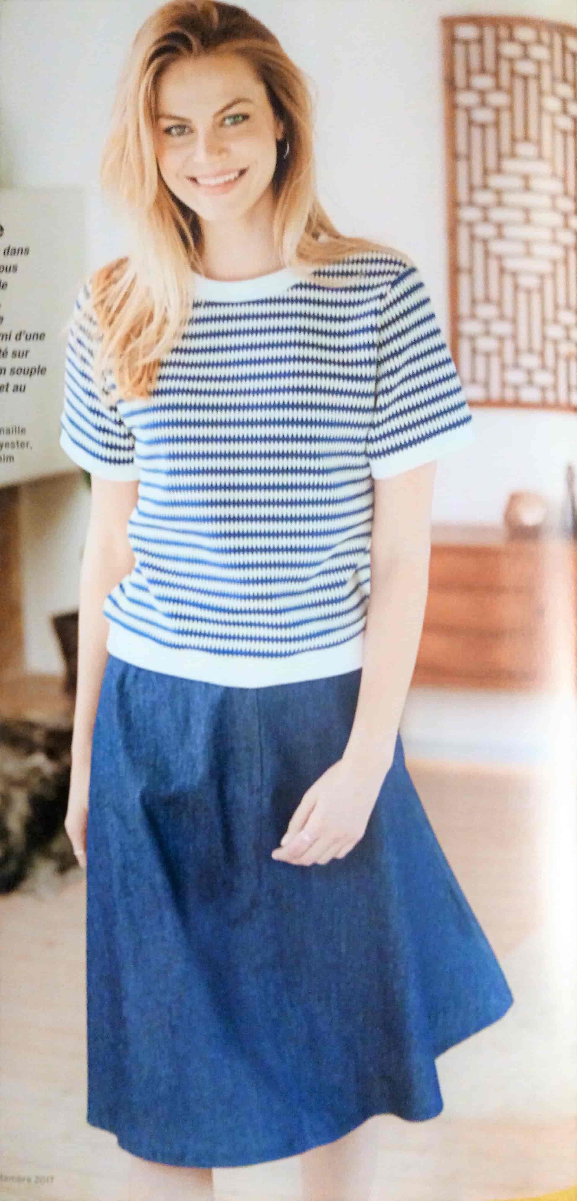 Je pensais ce top banal quand j’ai vu le croquis et finalement il ne l’est pas tant que ça. Deux plis pris dans les couture d’épaules donnent un peu d’originalité à ce haut. Il mériterai d’être un peu plus décolleté. Il va de la taille XS au XXL.