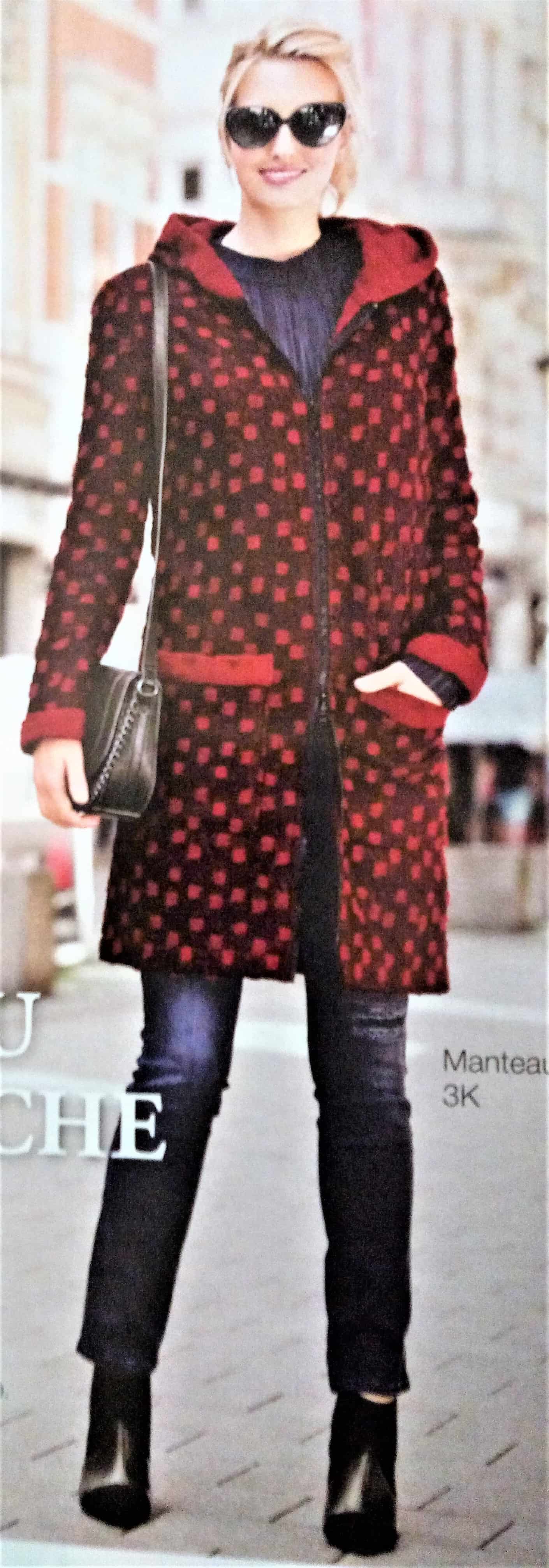 Que dire de ce manteau long à capuche?Il est superbe ici il est réalisé dans un tissus double face Les bas de manches et la capuche sont bordés avec un tissu contrastant tout comme le haut des poches.