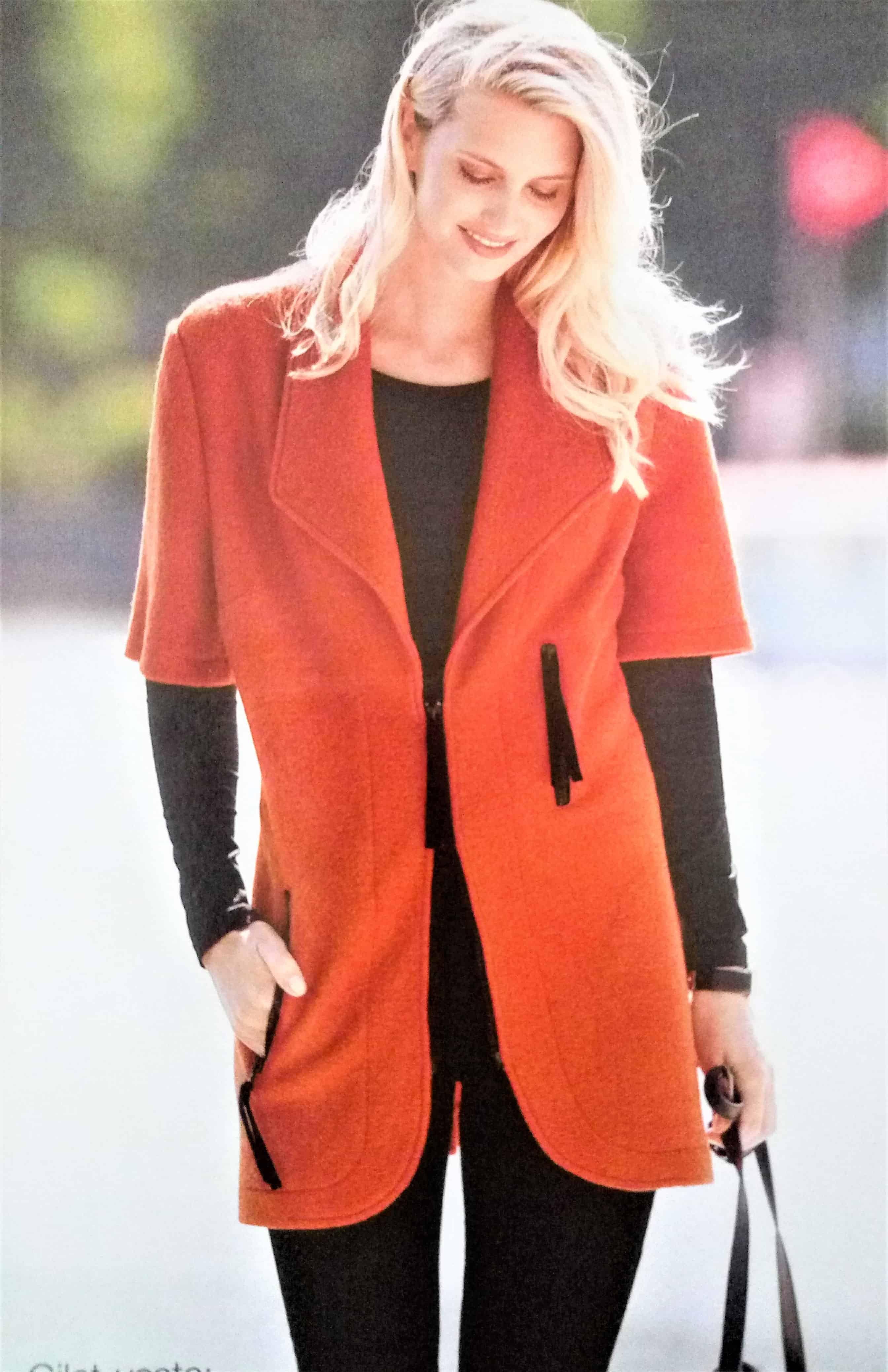 Vous avez vu ce gilet original avec ses découpes?J’ai un peu de mal avec la fausse fourrure cependant. Je verrai bien les découpes bordées de passepoils de couleurs vives. Les poches sont très profondes!