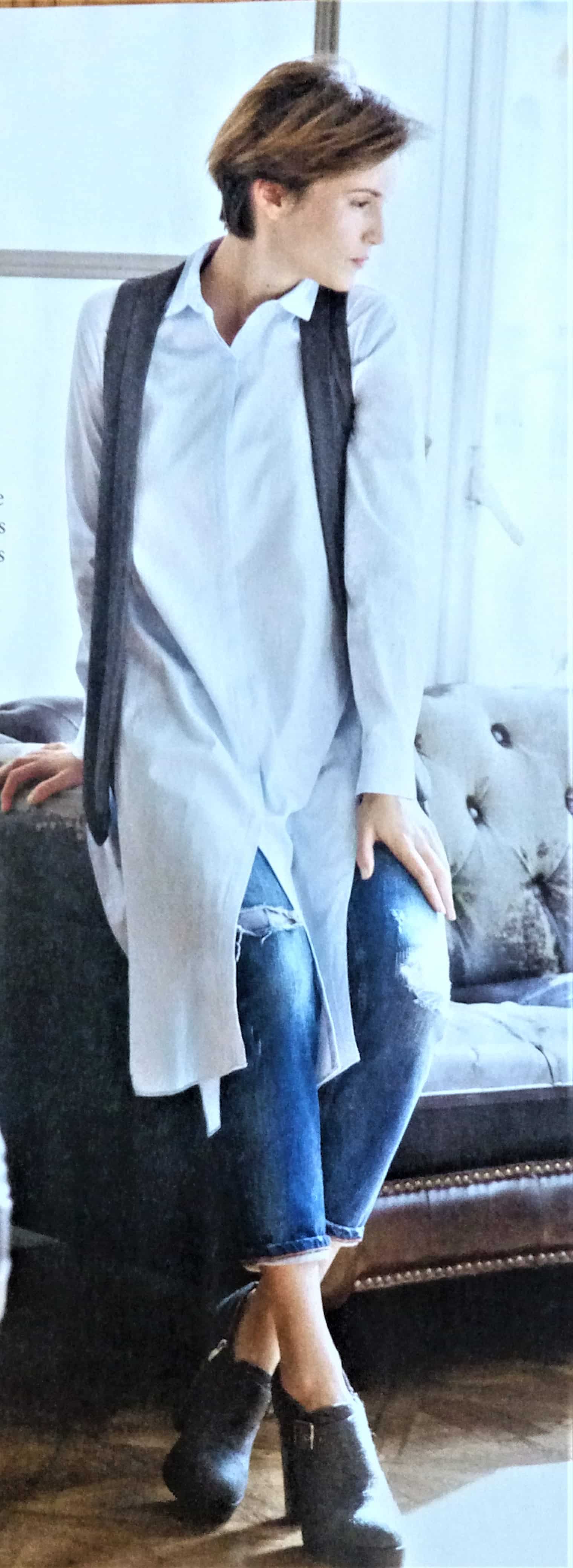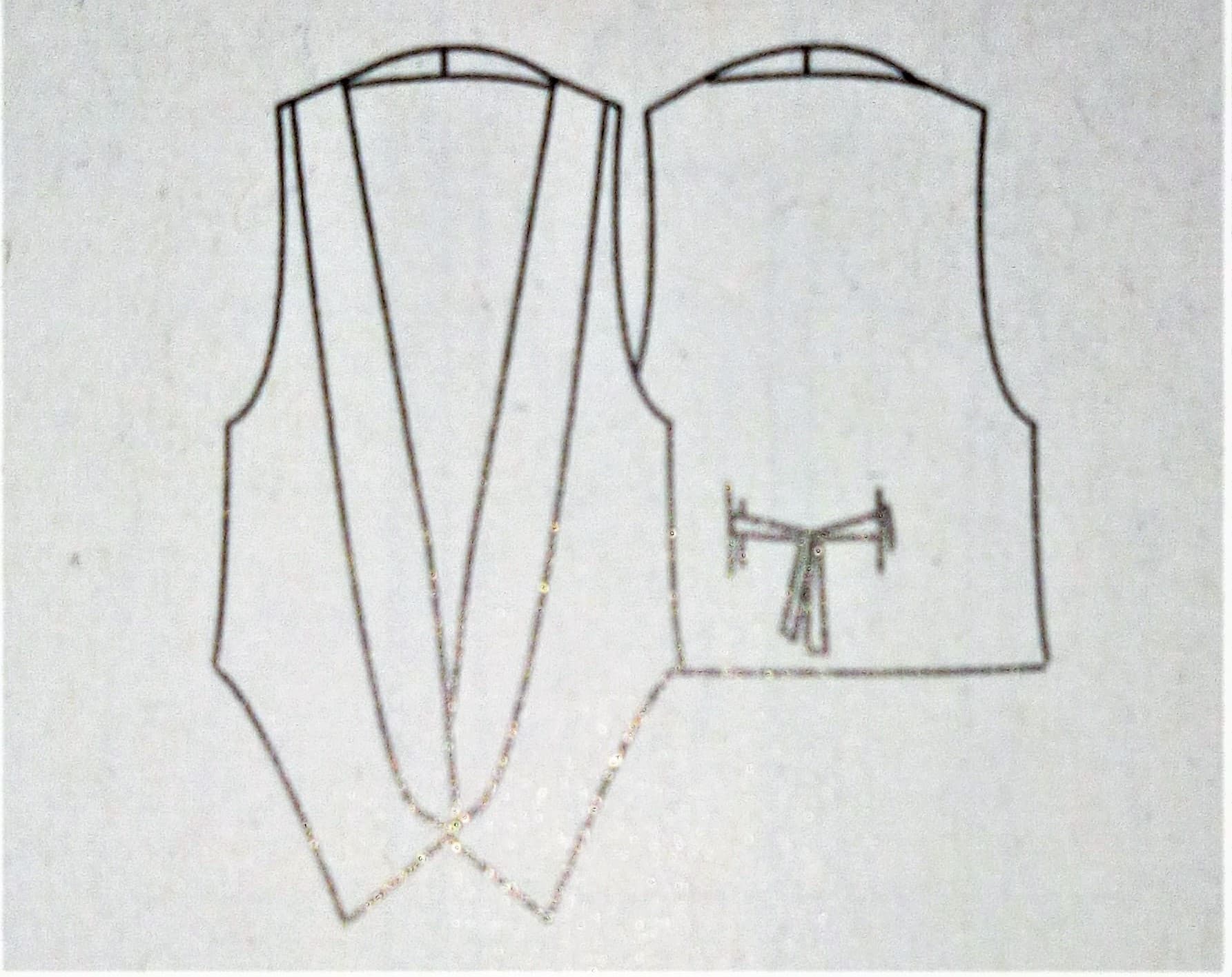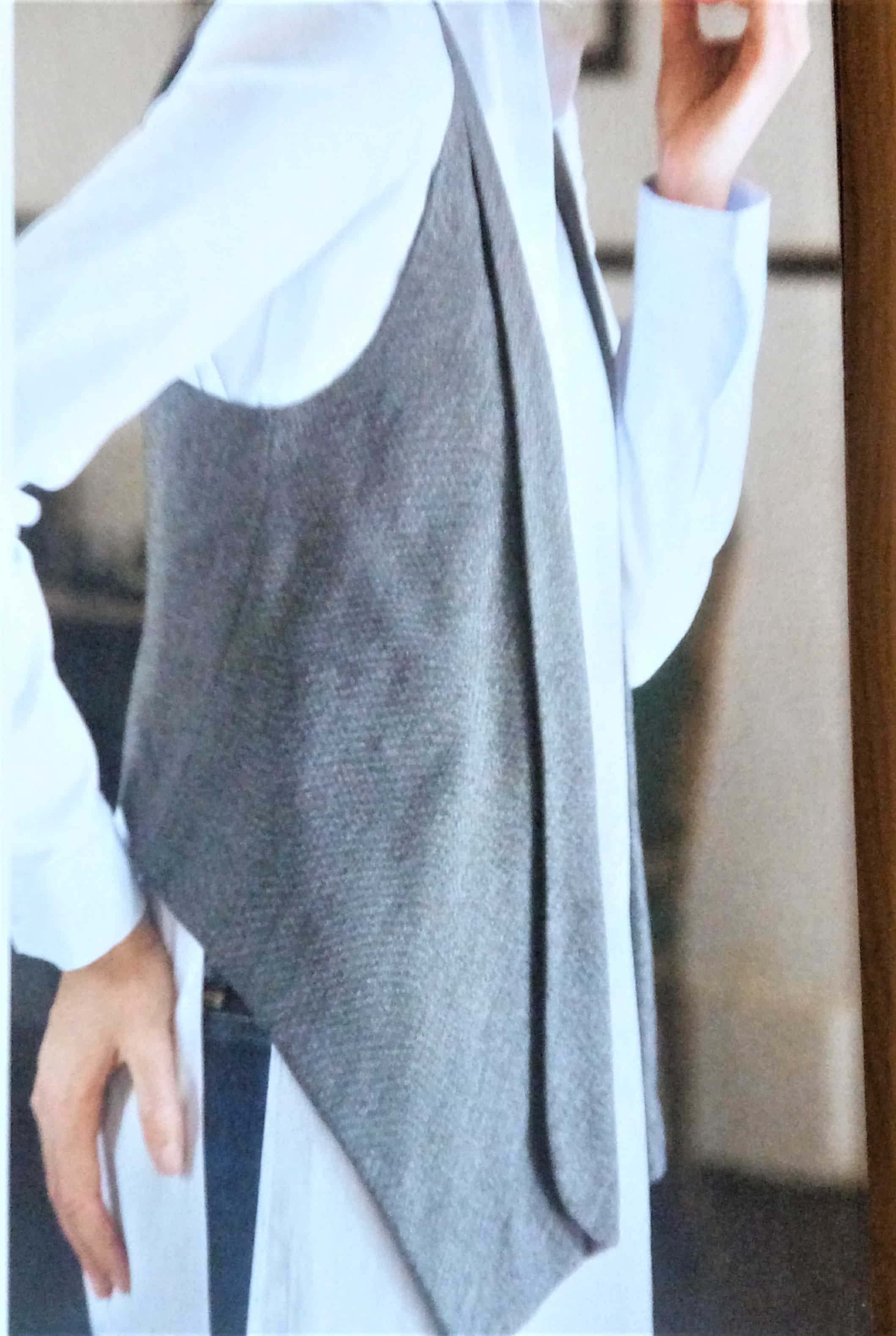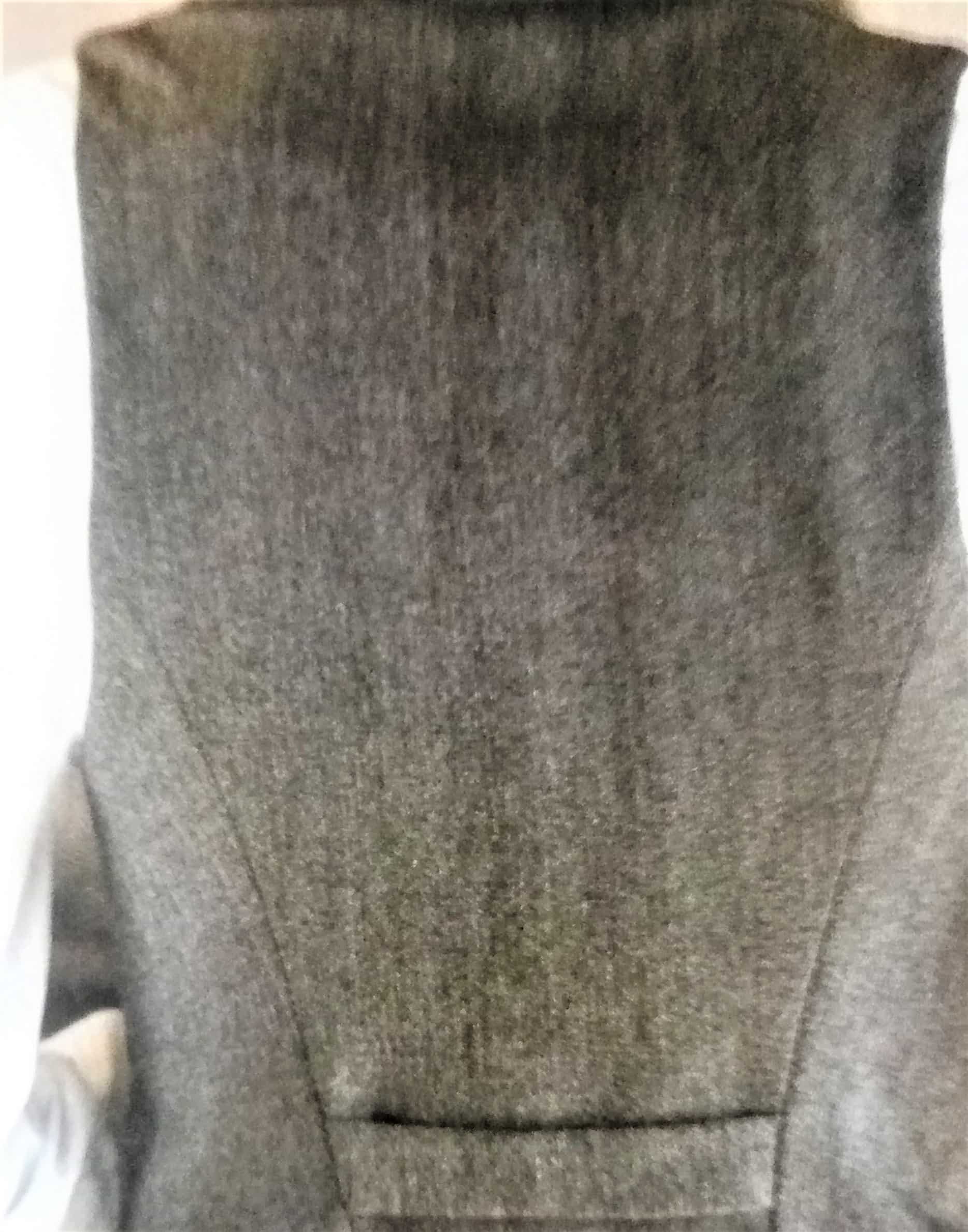 Ce gilet est pas mal lui aussi . Le devant est plus long que le dos avec une martingale. Je trouve qu’il allonge la silhouette avec son col « Smoking ». Je le verrai bien en satin pour les fêtes.