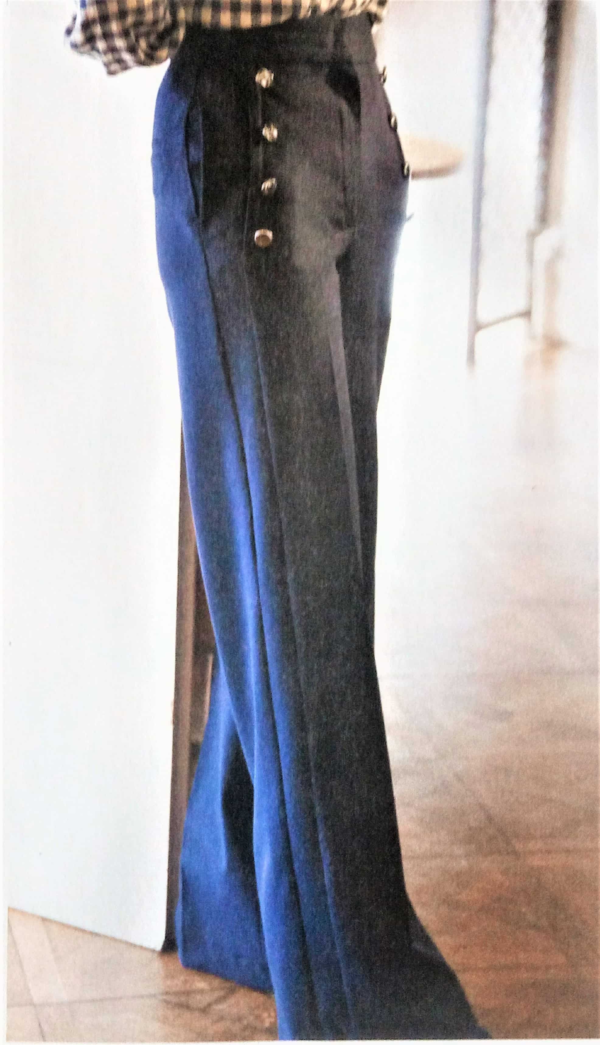 Que dire de ce pantalon , si ce n’est que je le trouve magnifique! D’inspiration vintage avec sa taille haute amplifiée avec la série de boutons sur les poches ainsi que ses jambes larges ce pantalon à tout pour plaire.