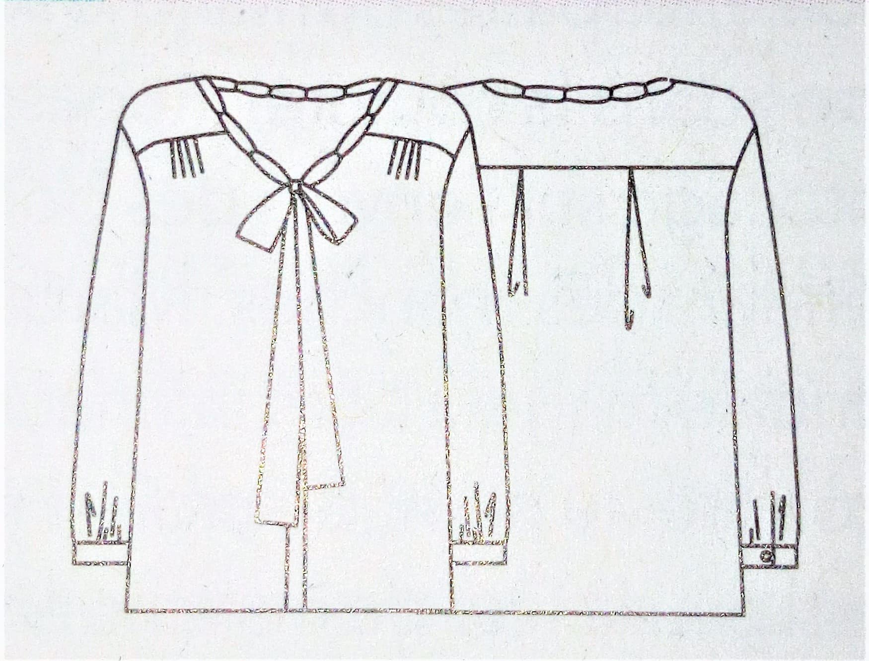 J’adore ce chemisier , je lui trouve un côté rétro avec cette longue lavallière sur un grand décolleté. Il possède un empiècement, des petits plus sur le devant et le dos.