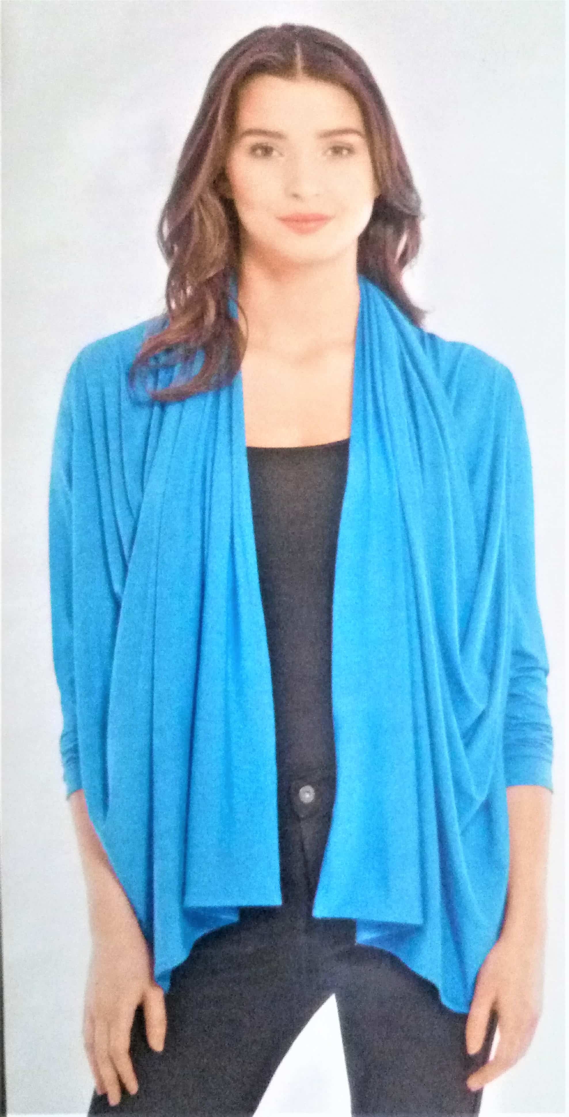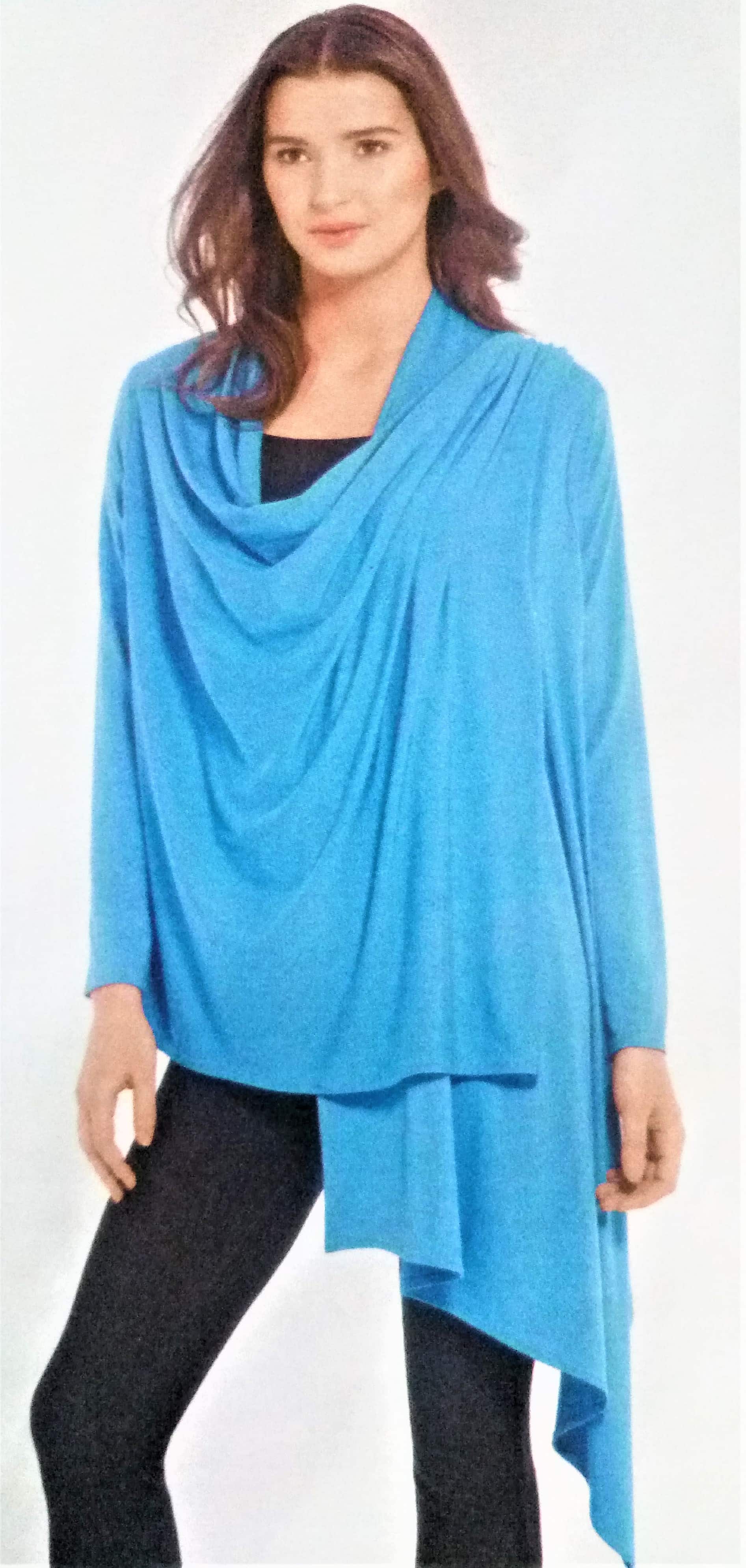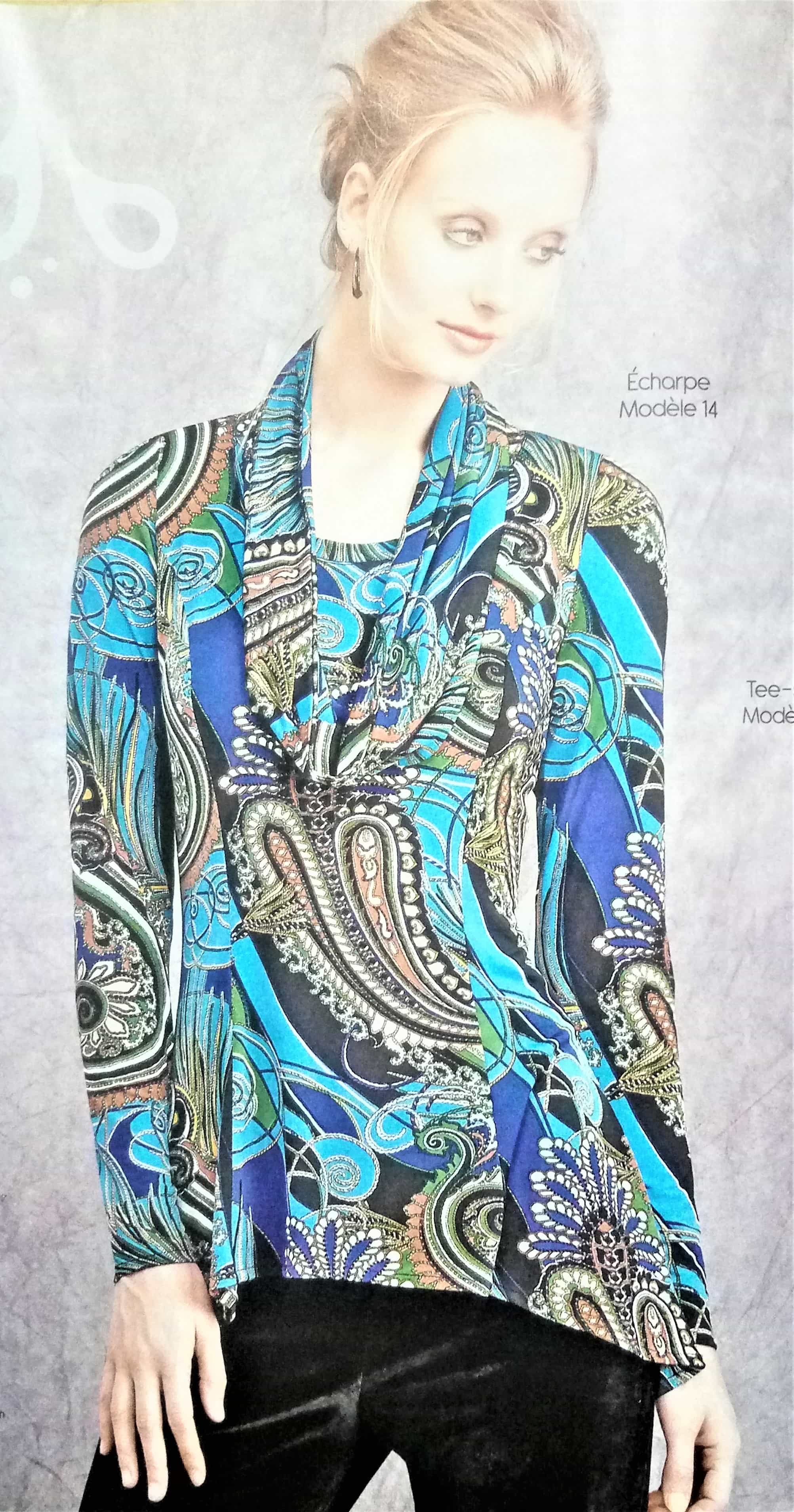 Souvent, il nous est proposé des vêtements évolutifs comme celui de la couverture. ici il s’agit d’un gilet à nouer, torsader ou draper. Personnellement j’adore ce genre de pièces dans la garde robe.