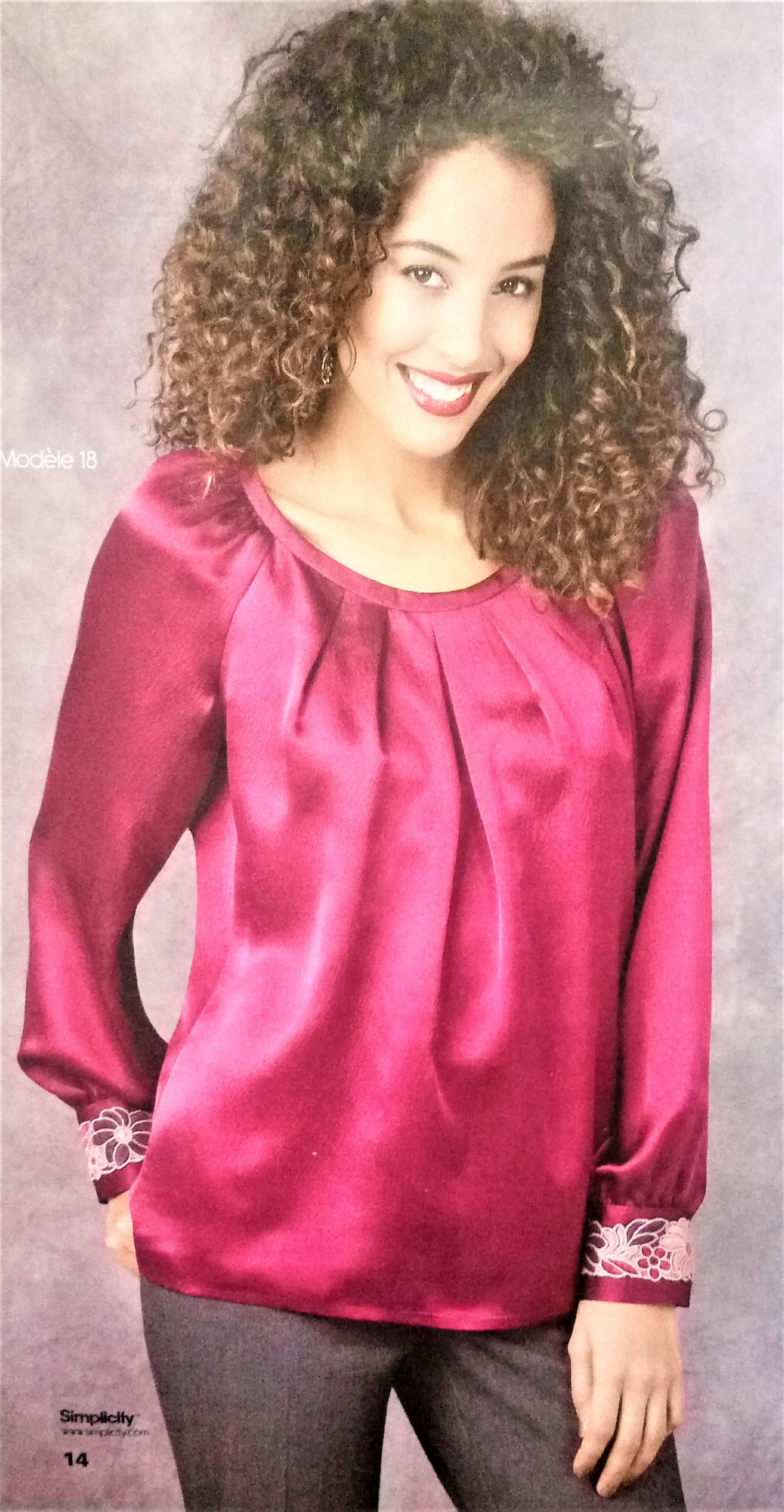 Sur toutes les revues « Tendance Couture » le logo de « Simplicity » apparaît sous le titre. C’est un rappel utile. Il est toujours suivi de deux adjectifs qui varient de temps en temps. Personnalisé revient souvent, car en effet c’est leur parti pris. Un même modèle de vetements sera présenté avec des déclinaisons ou variations, telles que la longueur et la forme des manches, ou bien avec ou sans col…. Ceci pour vous permettre de vous approprier le vêtement.