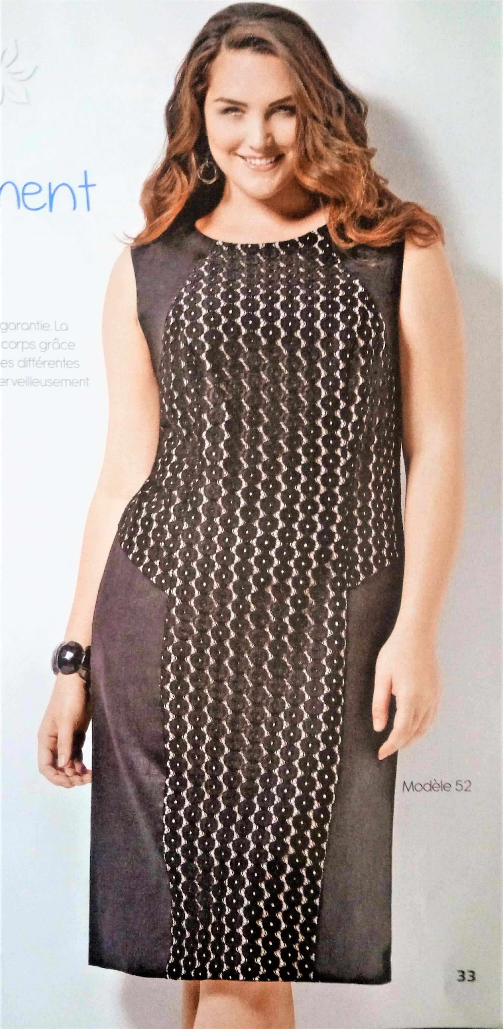 Une robe dans mon top, celle ci va jusqu’au 56 , ce qui fait son charme c’est le jeu des découpes et des matières qui affinent la silhouette. Elle est pensée pour les grandes tailles afin de sublimer nos formes. La version avec dentelle est magnifique.