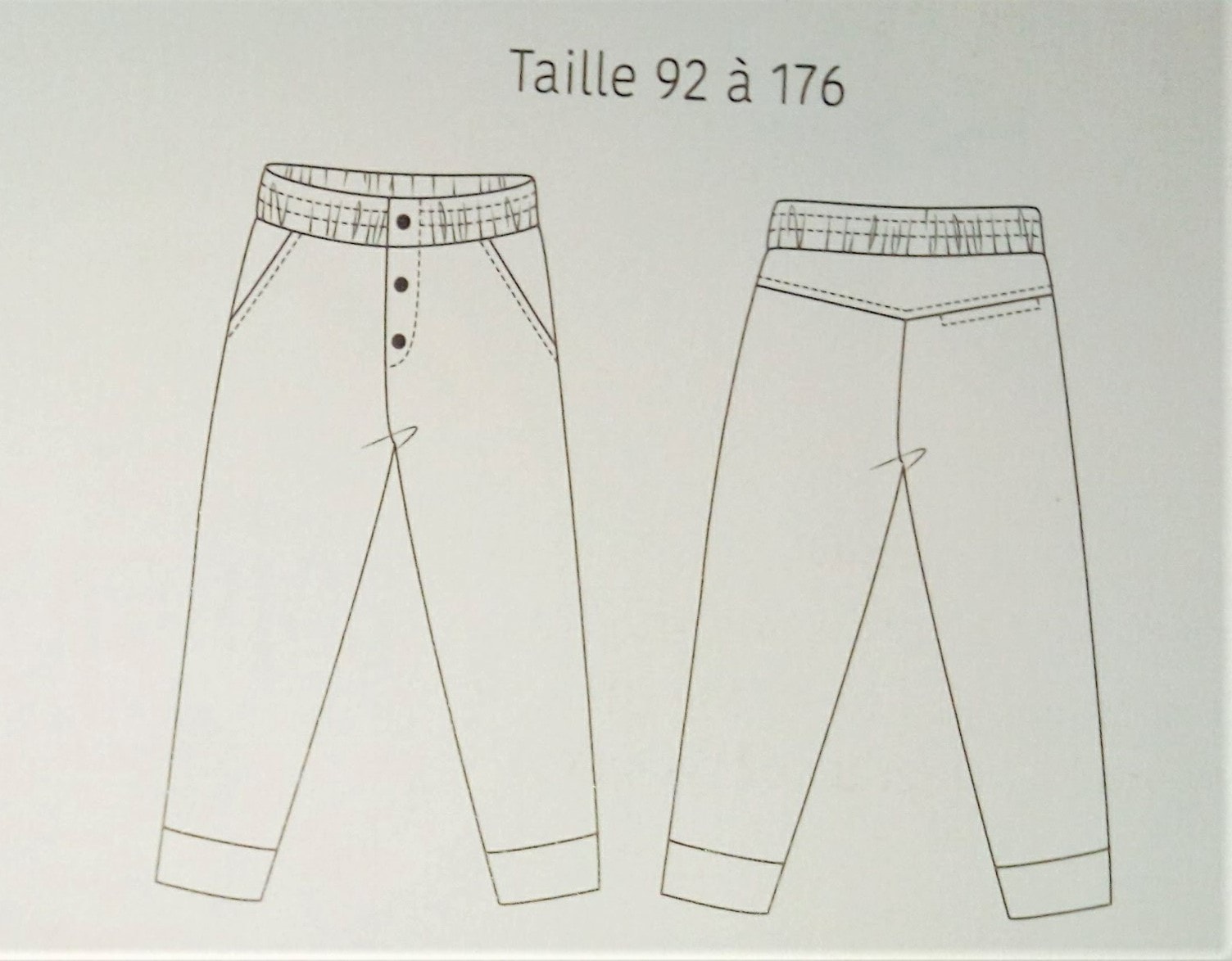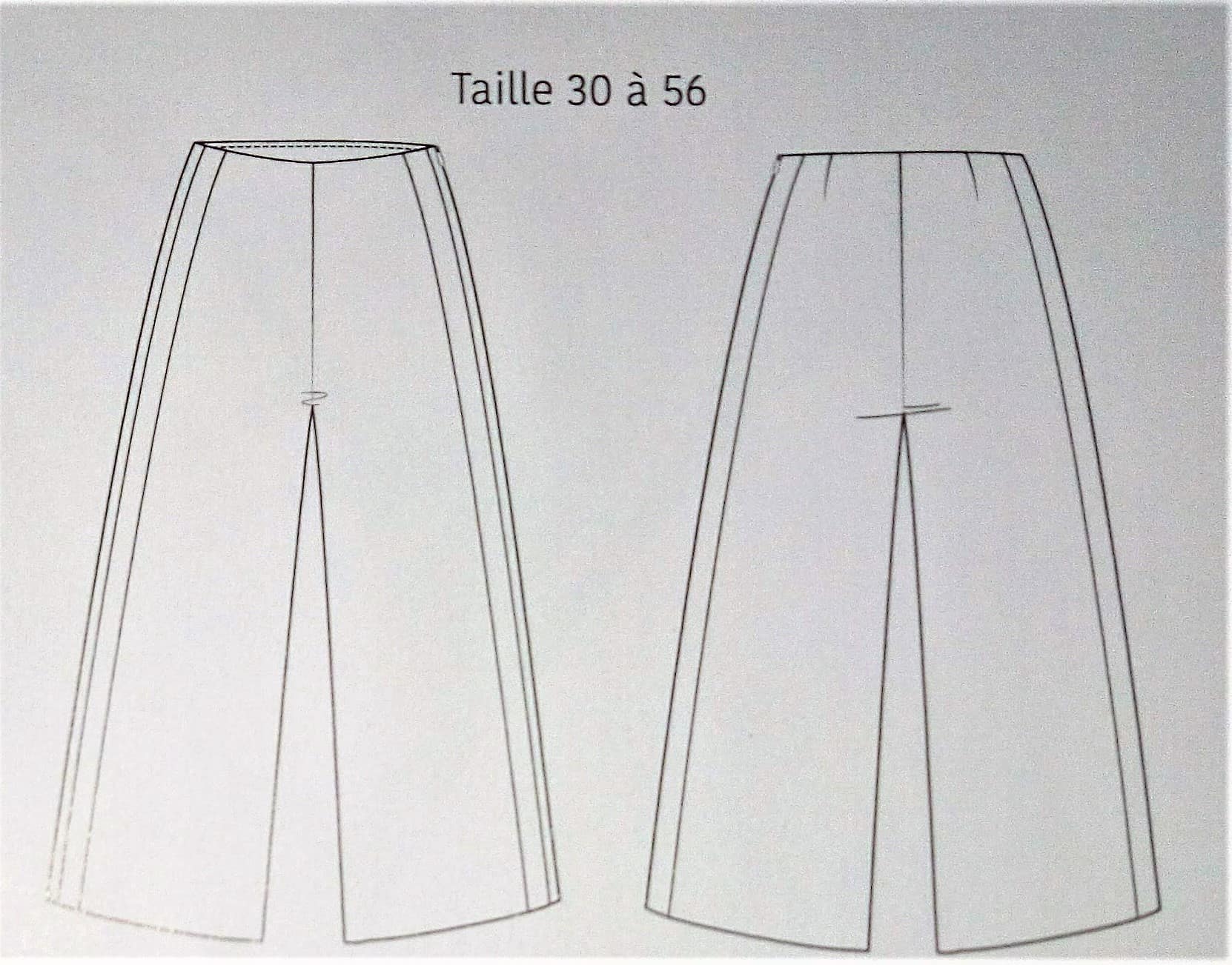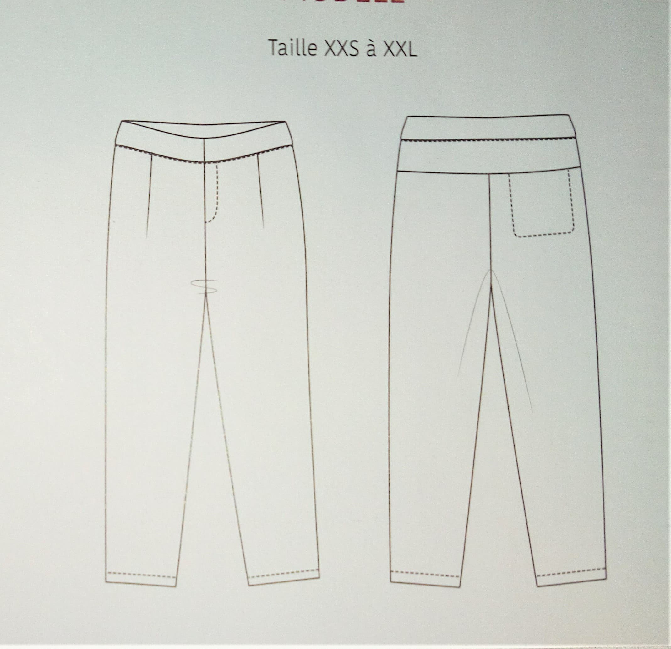 Les rayures font le pantalon, nous indique la présence d’un patron de pantalon à rayures, comme on le voit sur la couverture. Il possède des rayures sur la couture de côté.