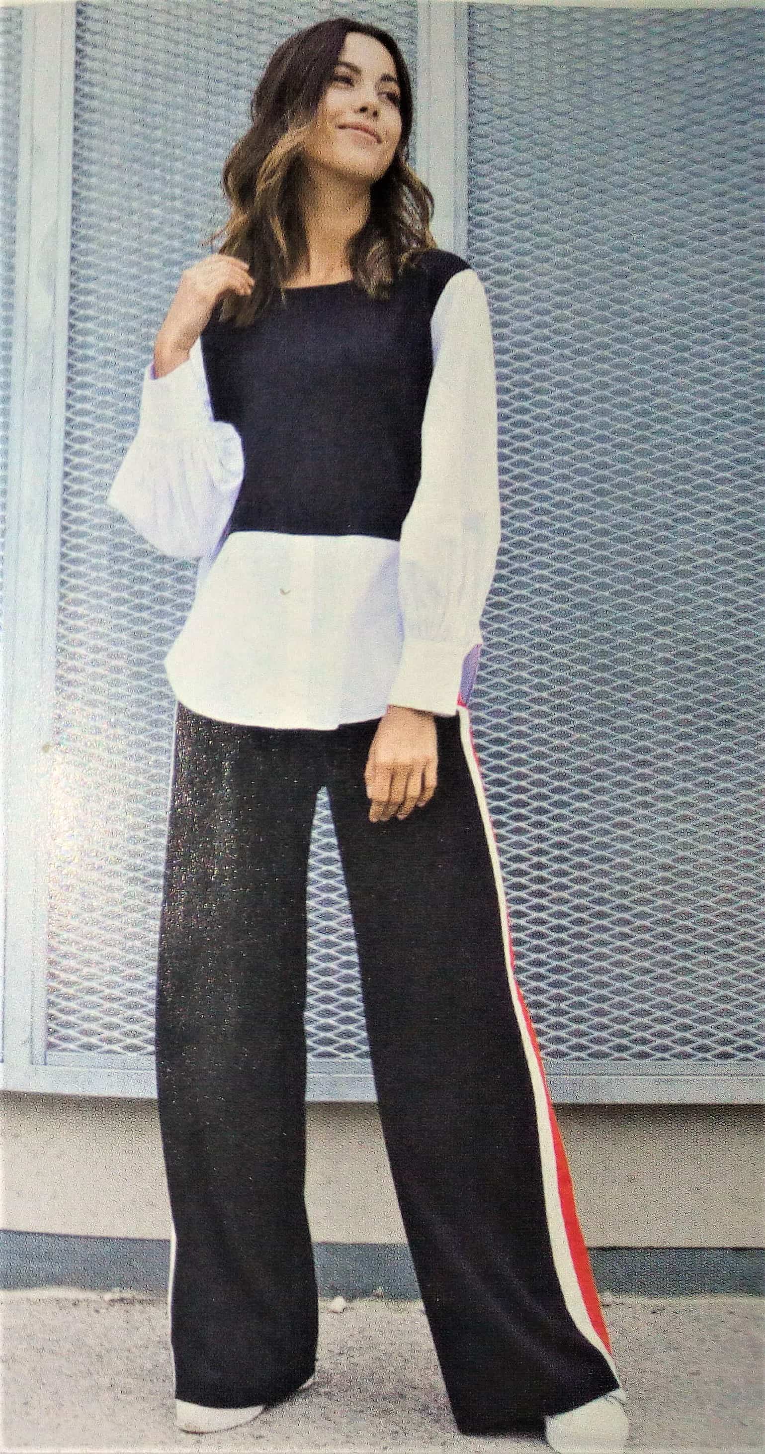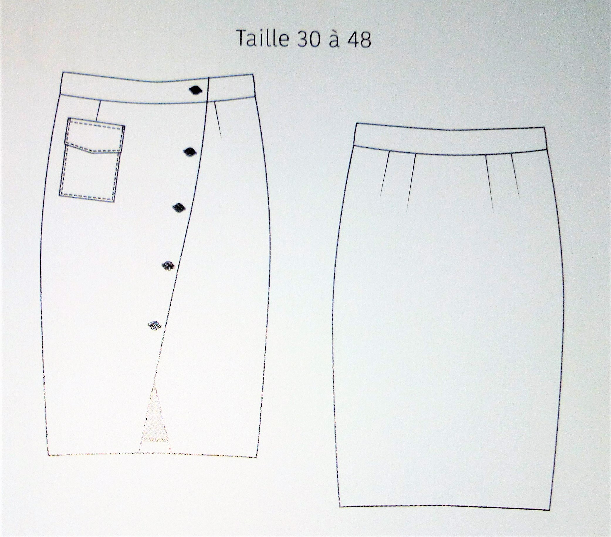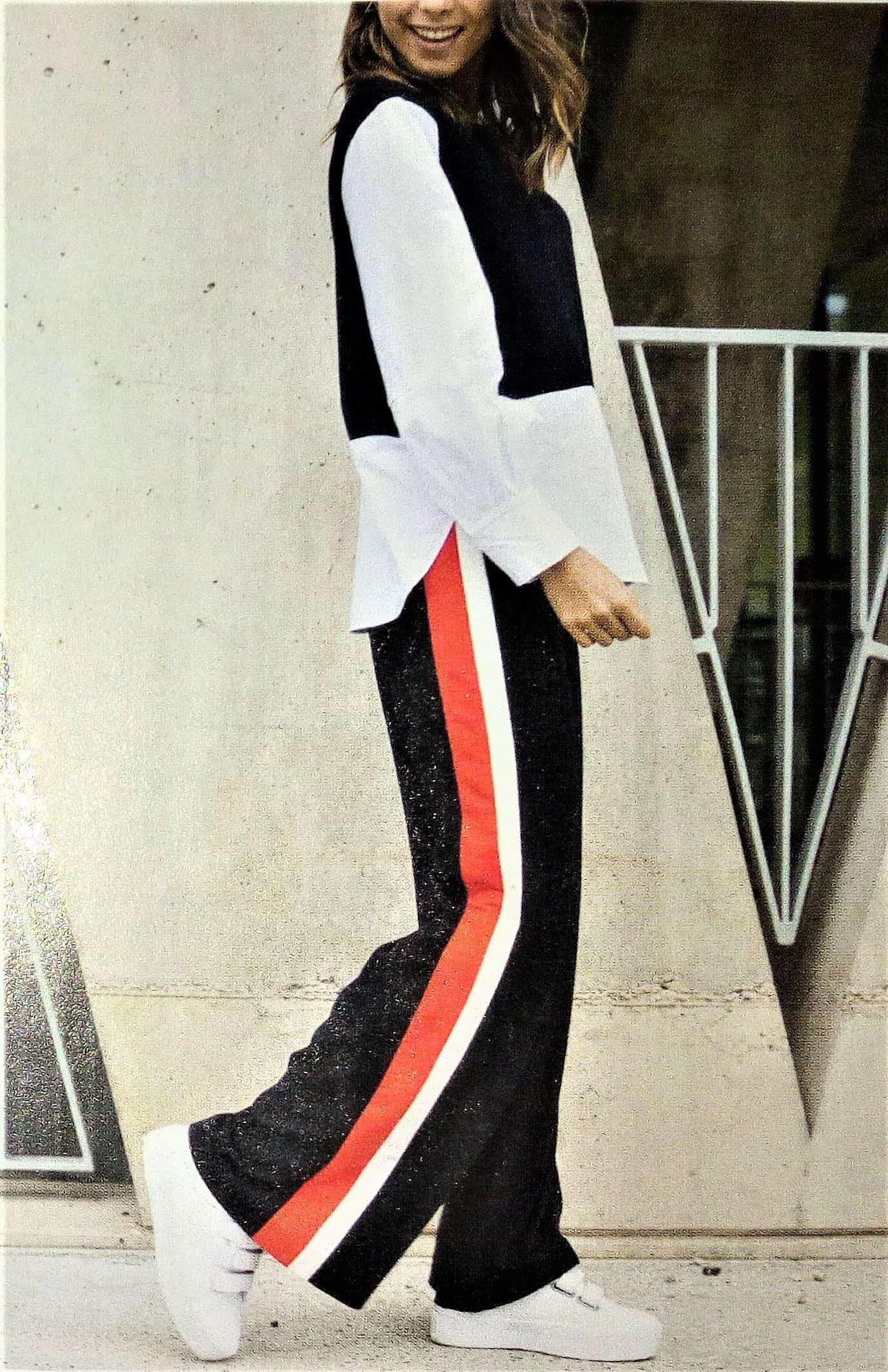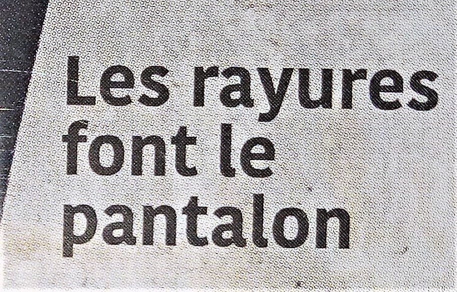 Les rayures font le pantalon, nous indique la présence d’un patron de pantalon à rayures, comme on le voit sur la couverture. Il possède des rayures sur la couture de côté.