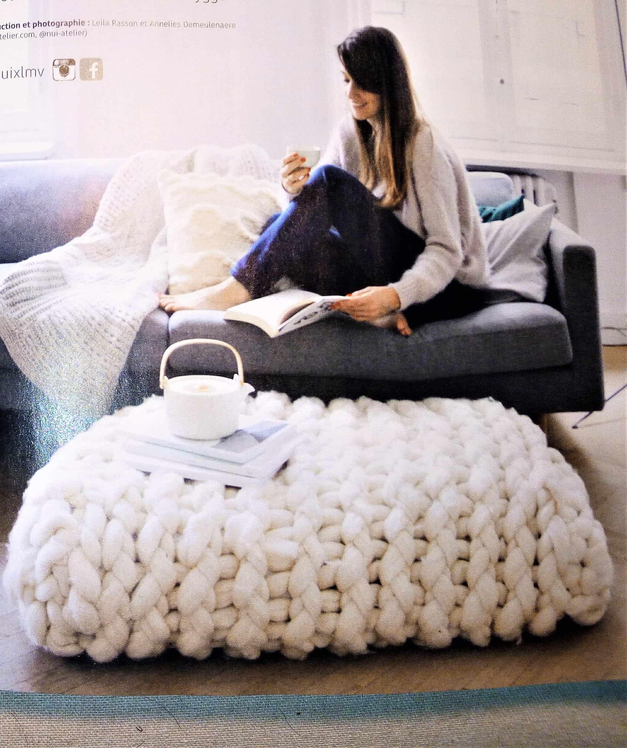 Vous apprendrez à l’aide d’un tuto à réaliser un cadre pour tisser quelques accessoires, ainsi qu’ un pouf en tricotant avec les bras.