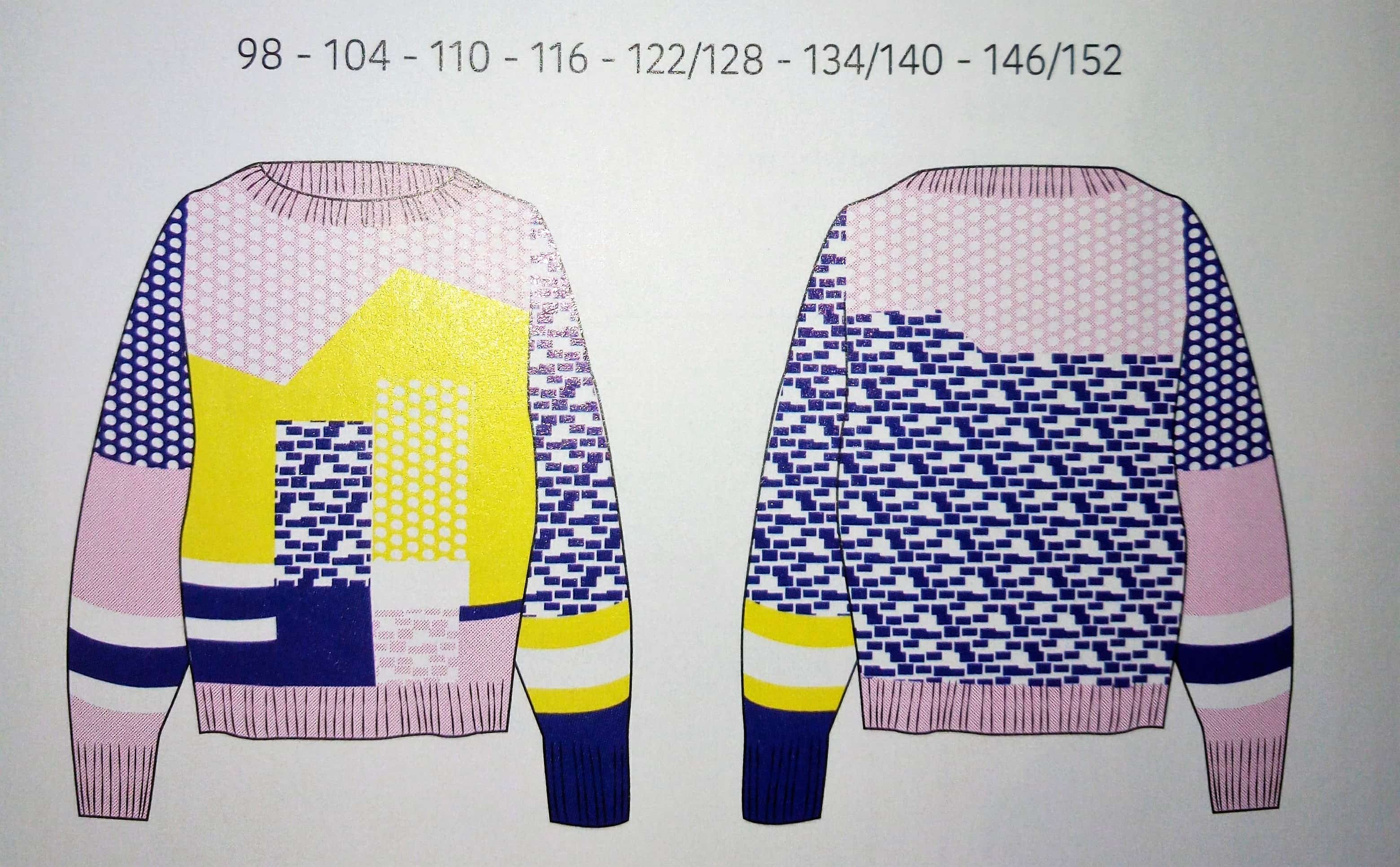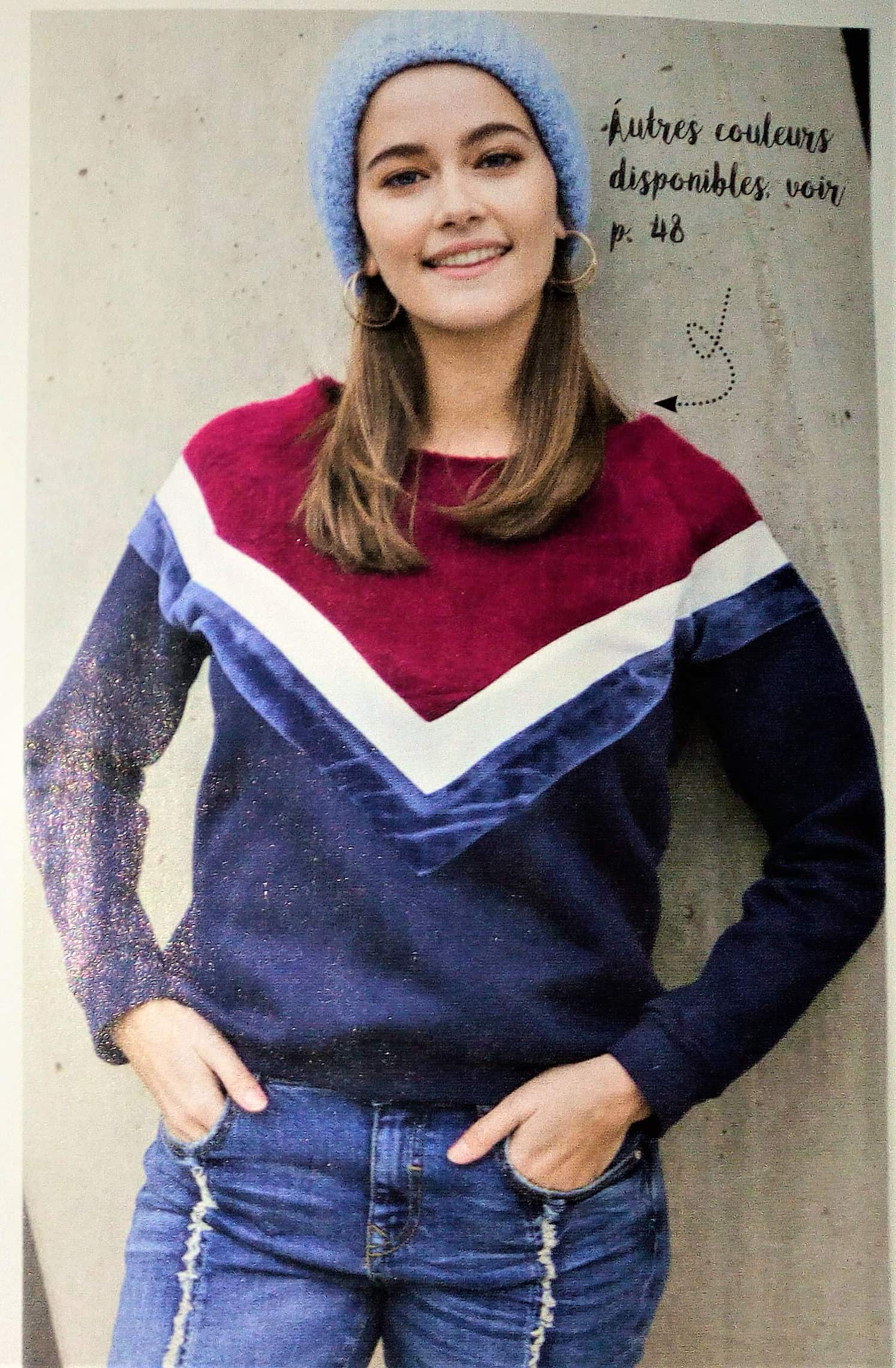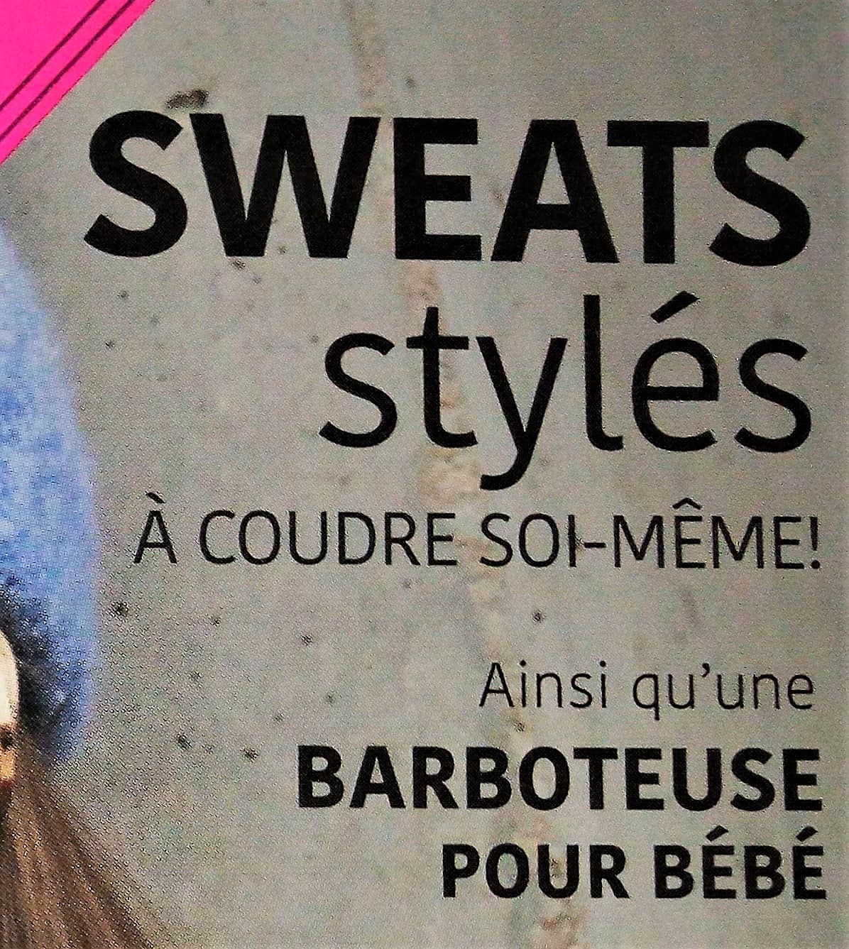 Comme nous en avons un aperçu sur la couverture, nous découvrirons des sweats structurés de plusieurs couleurs ainsi qu’une barboteuse pour bébé.