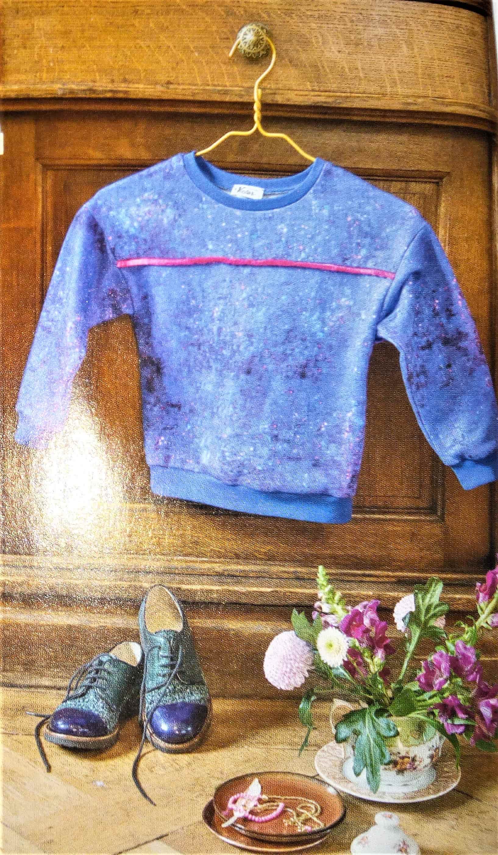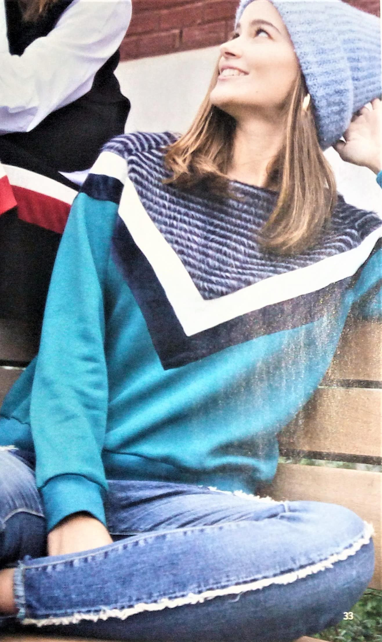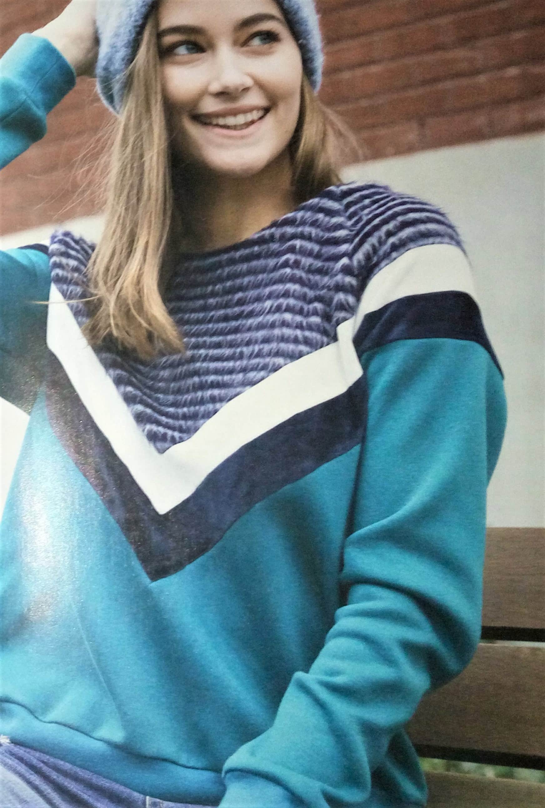 Comme nous en avons un aperçu sur la couverture, nous découvrirons des sweats structurés de plusieurs couleurs ainsi qu’une barboteuse pour bébé.