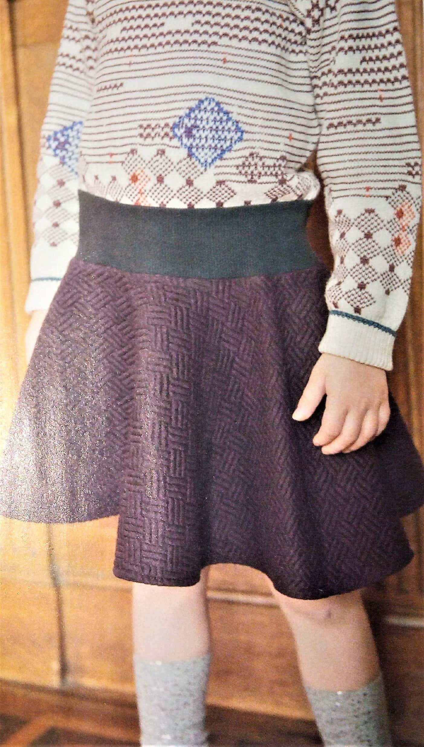 Le dernier de mon top sera pour cette jupette, couture rapide. C’est la base d’une jupe cercle avec un bord côte à la ceinture.