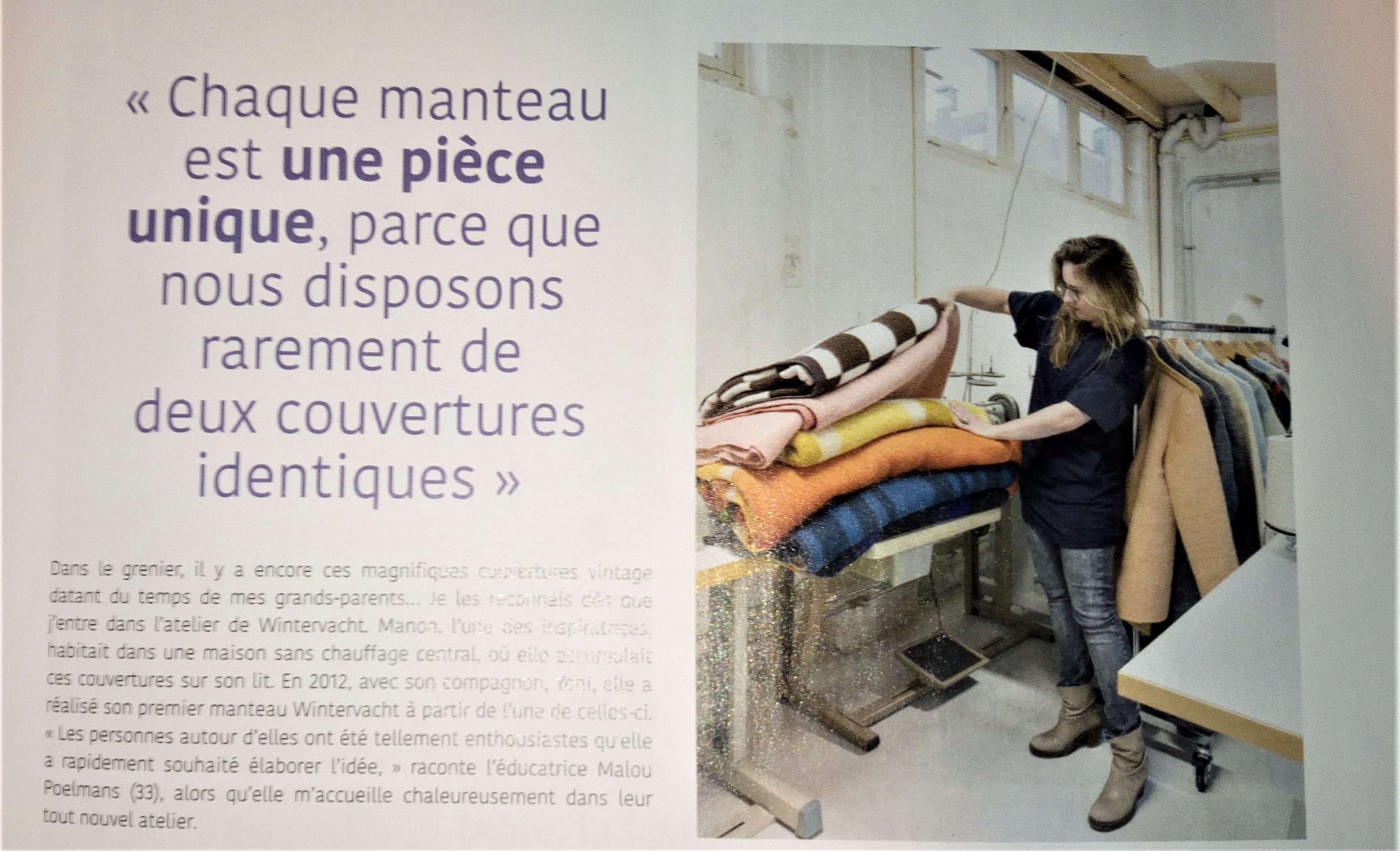 Il y a aussi un long article sur deux couturières « Wintervacht » qui créent des vestes à partir de couvertures, elles réalisent ainsi des vêtements uniques.