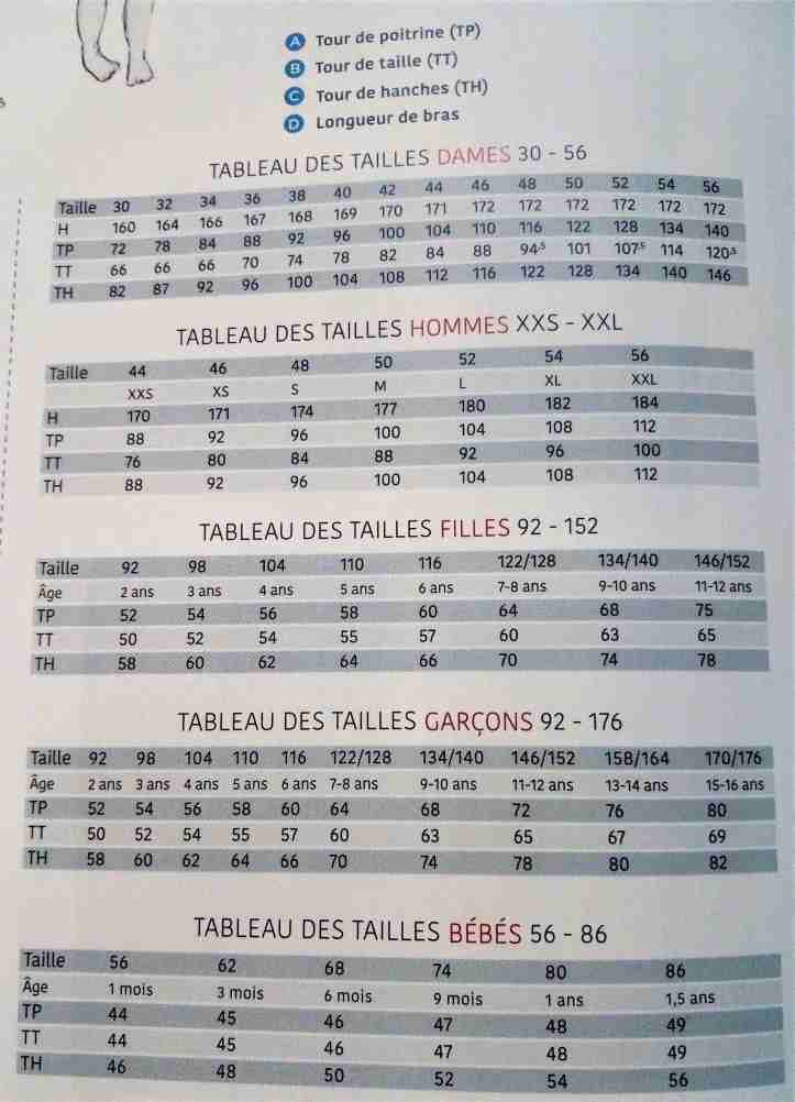 Le tableau des tailles