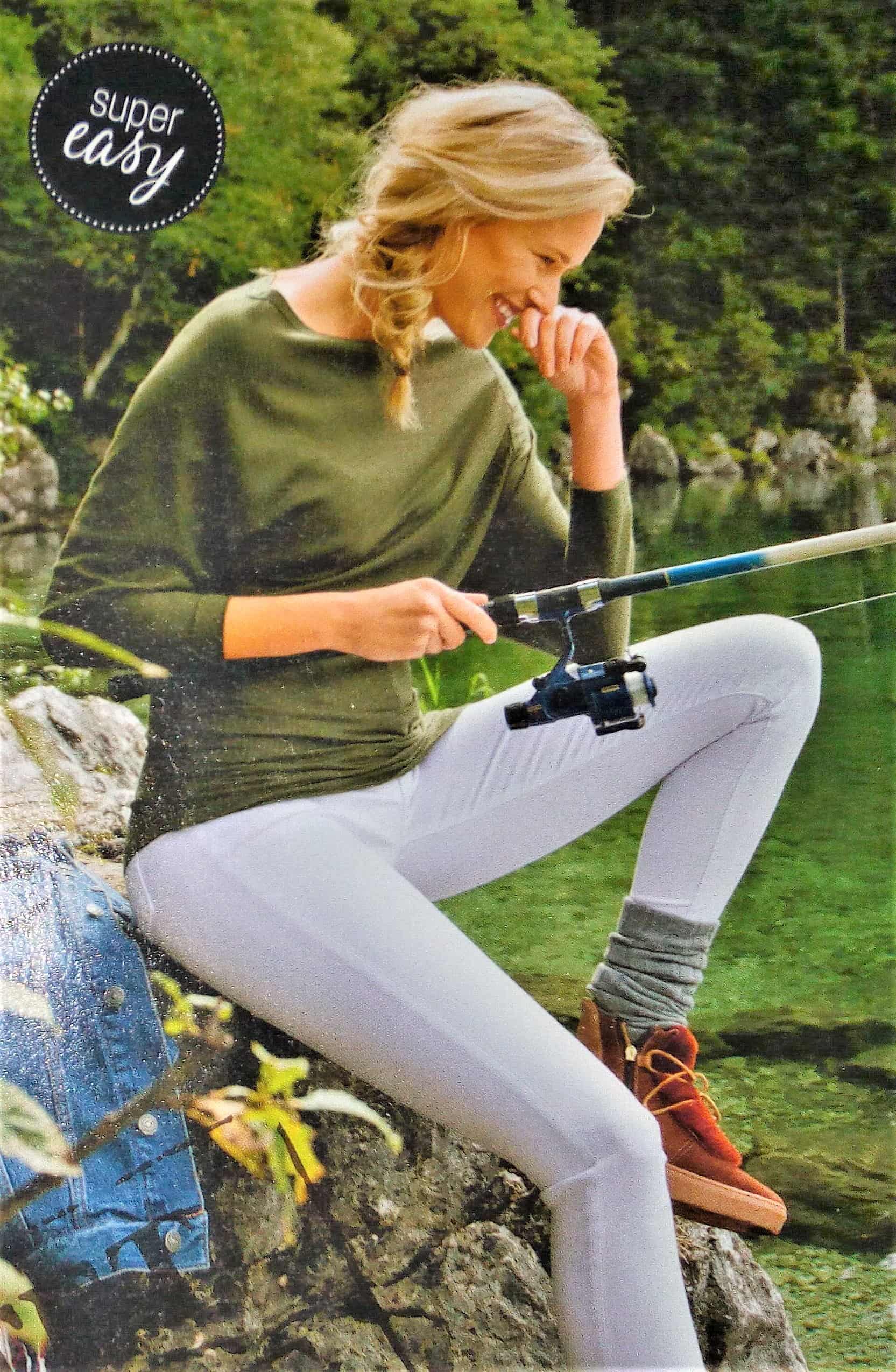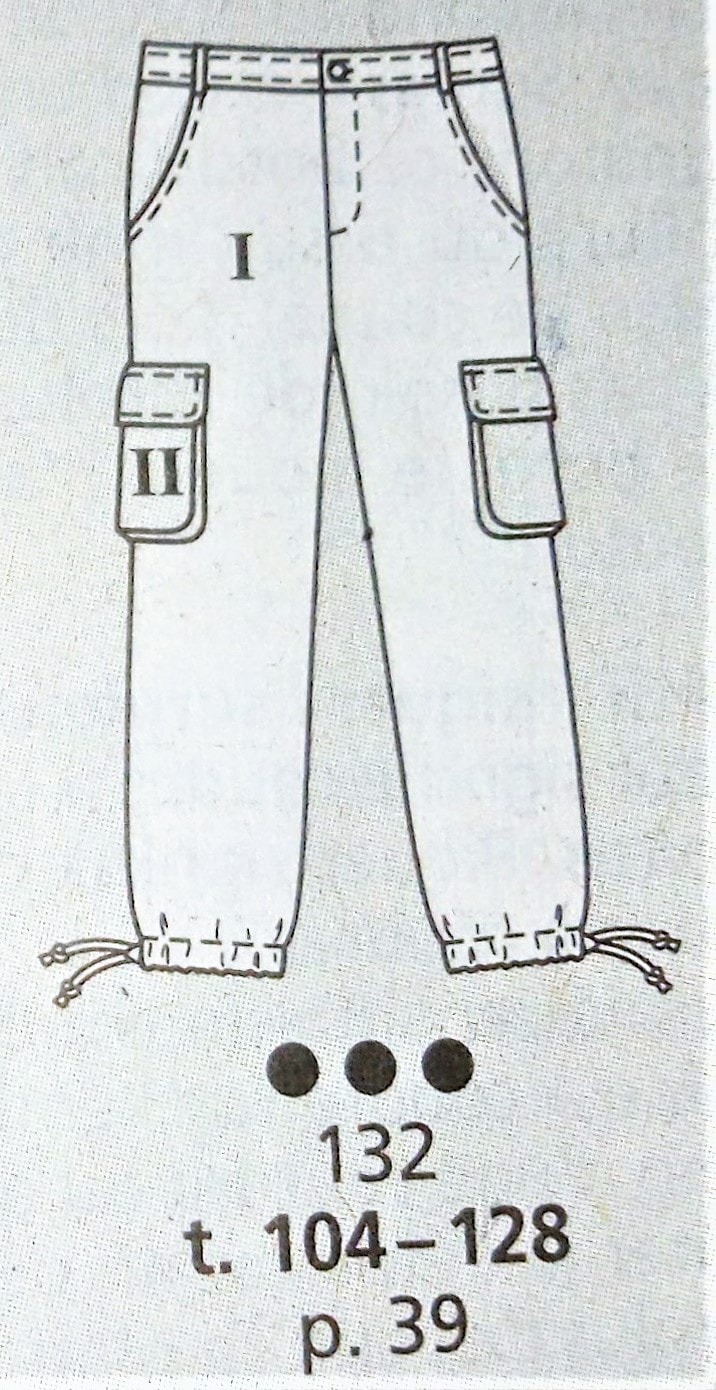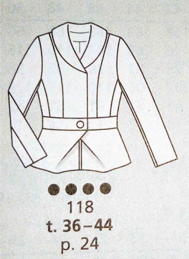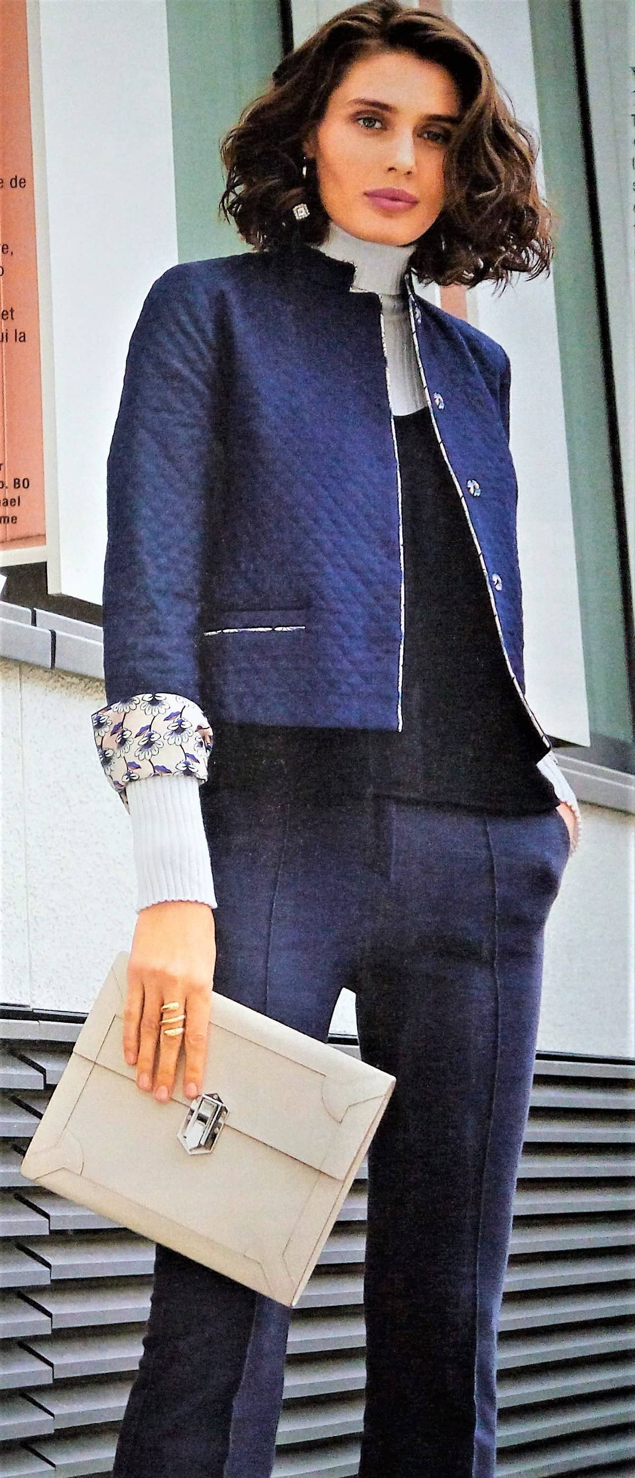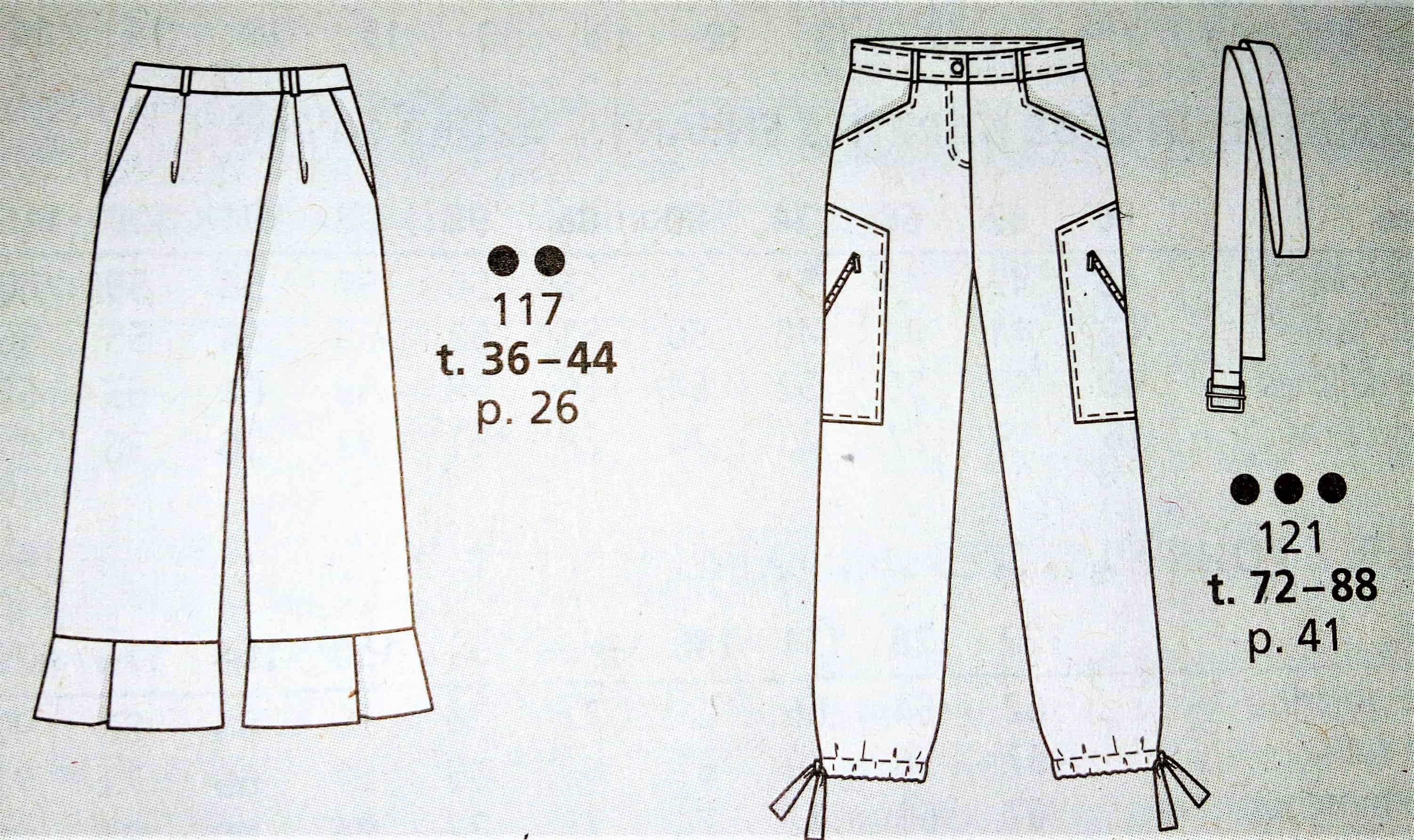 J’aime beaucoup ce pantalon 7/8 ème. Il agrandi la silhouette grâce aux parements surpiqués de côté. Vers l’ourlet les parements créent une petite fente. Je le trouve original. Il va de la taille 44 au 52.