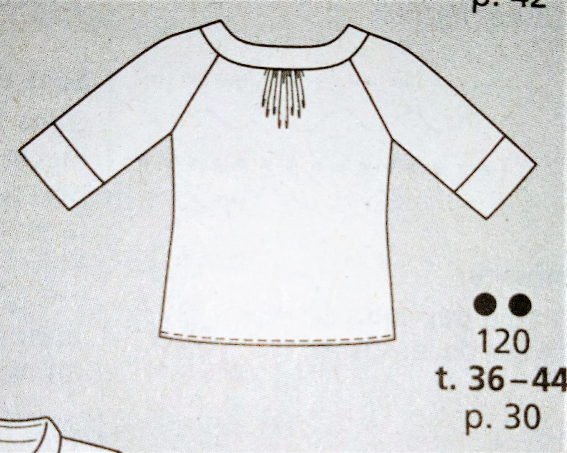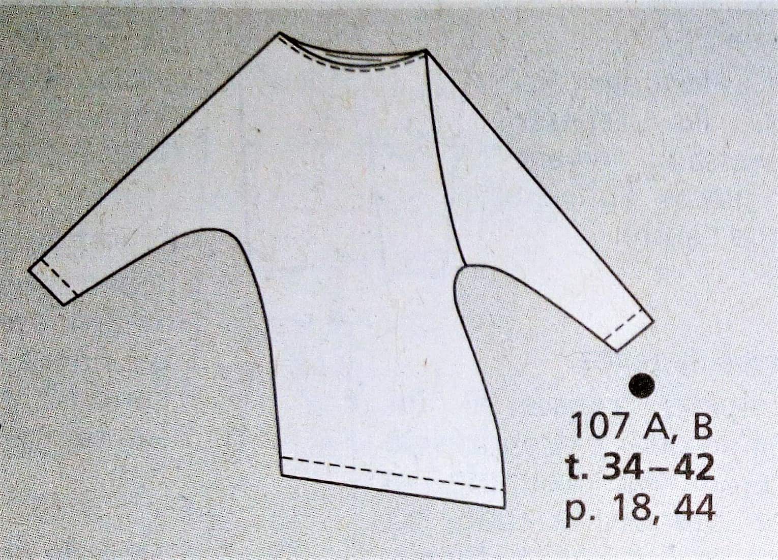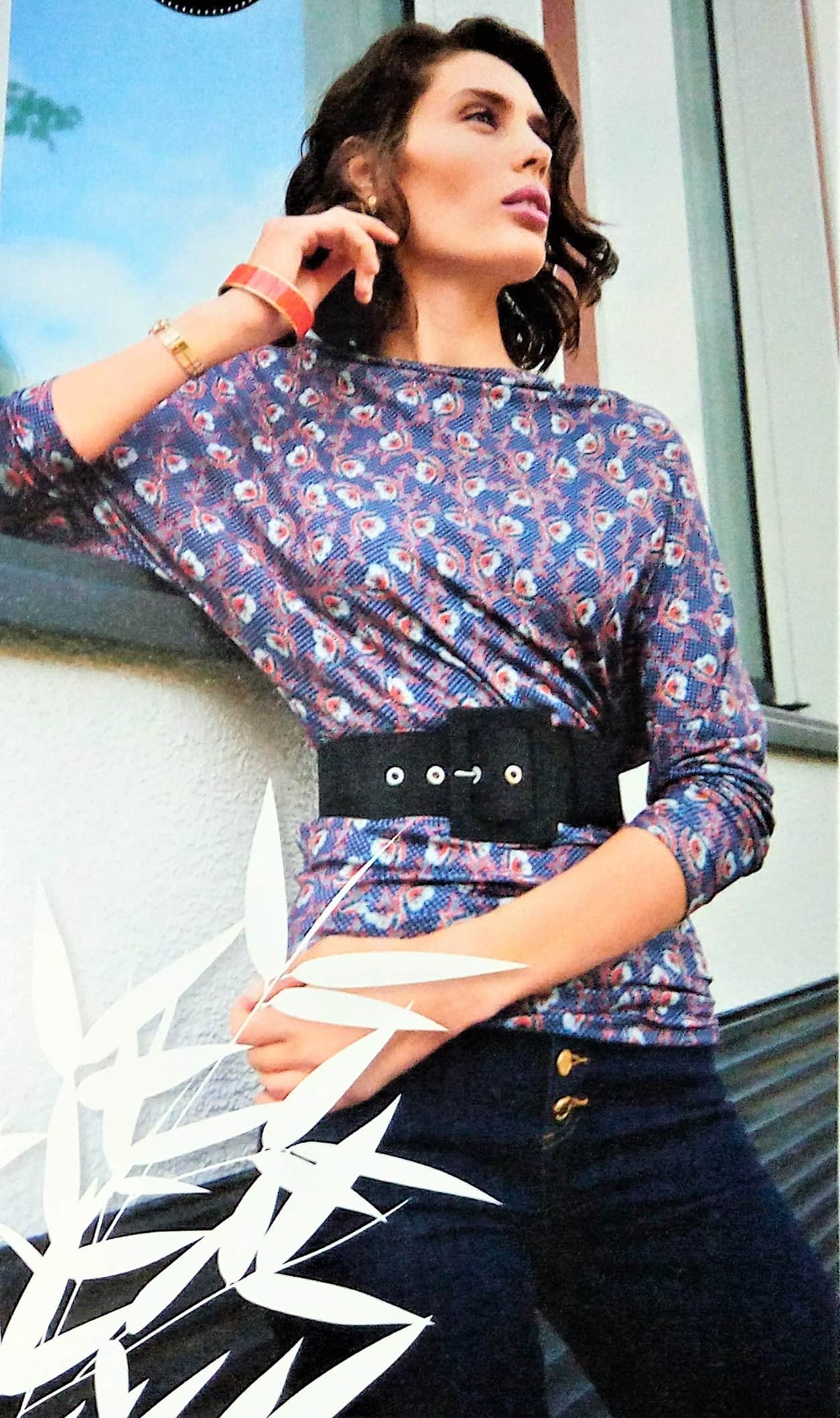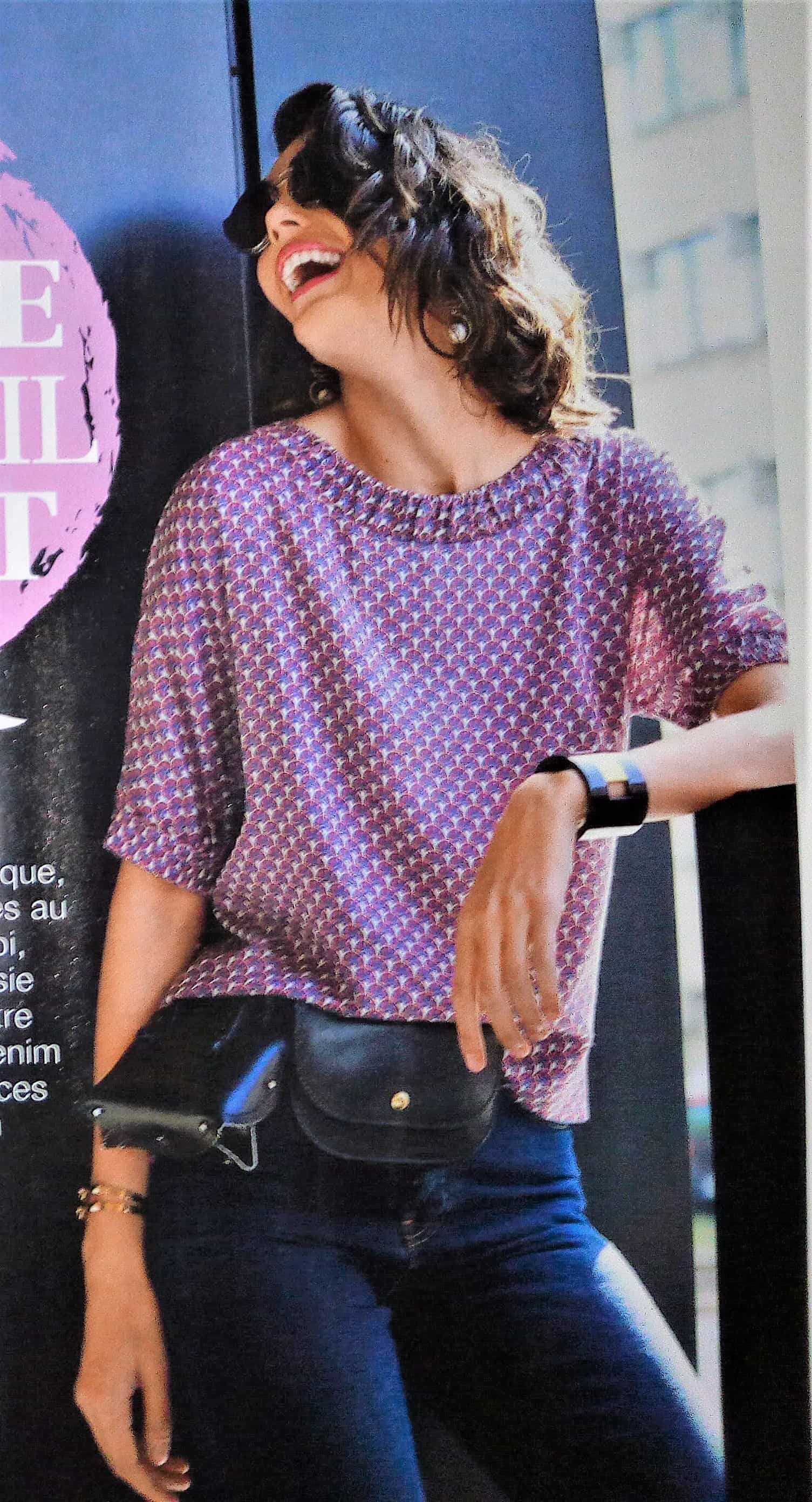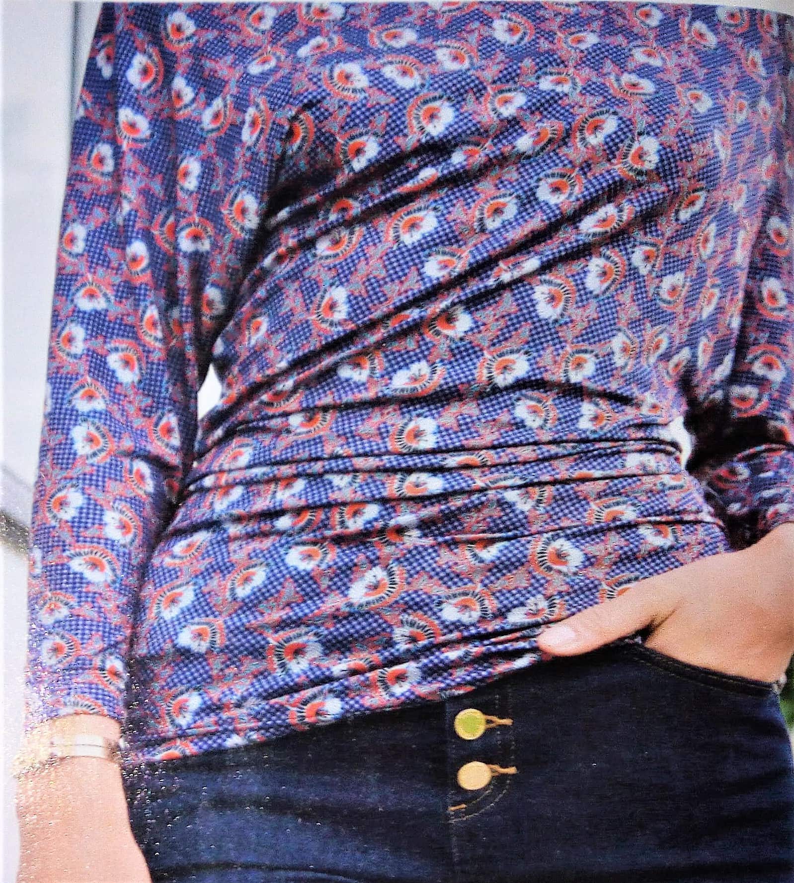Voici un superbe top de plus « super easy » (super facile) à coudre. Il est de coupe asymétrique, avec une manche coupée à même et une rapportée la couture de coté est décalée ce qui lui donne ce joli drapé. Il va de la taille 34 au 42.