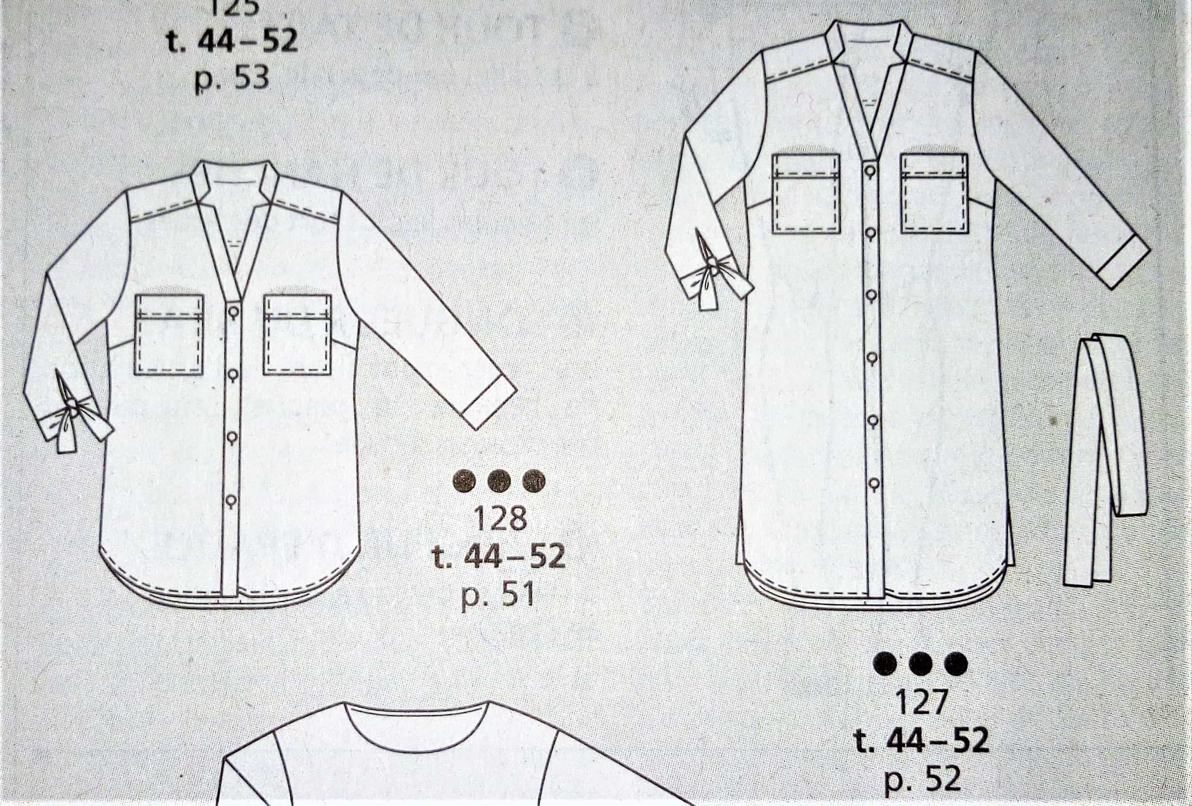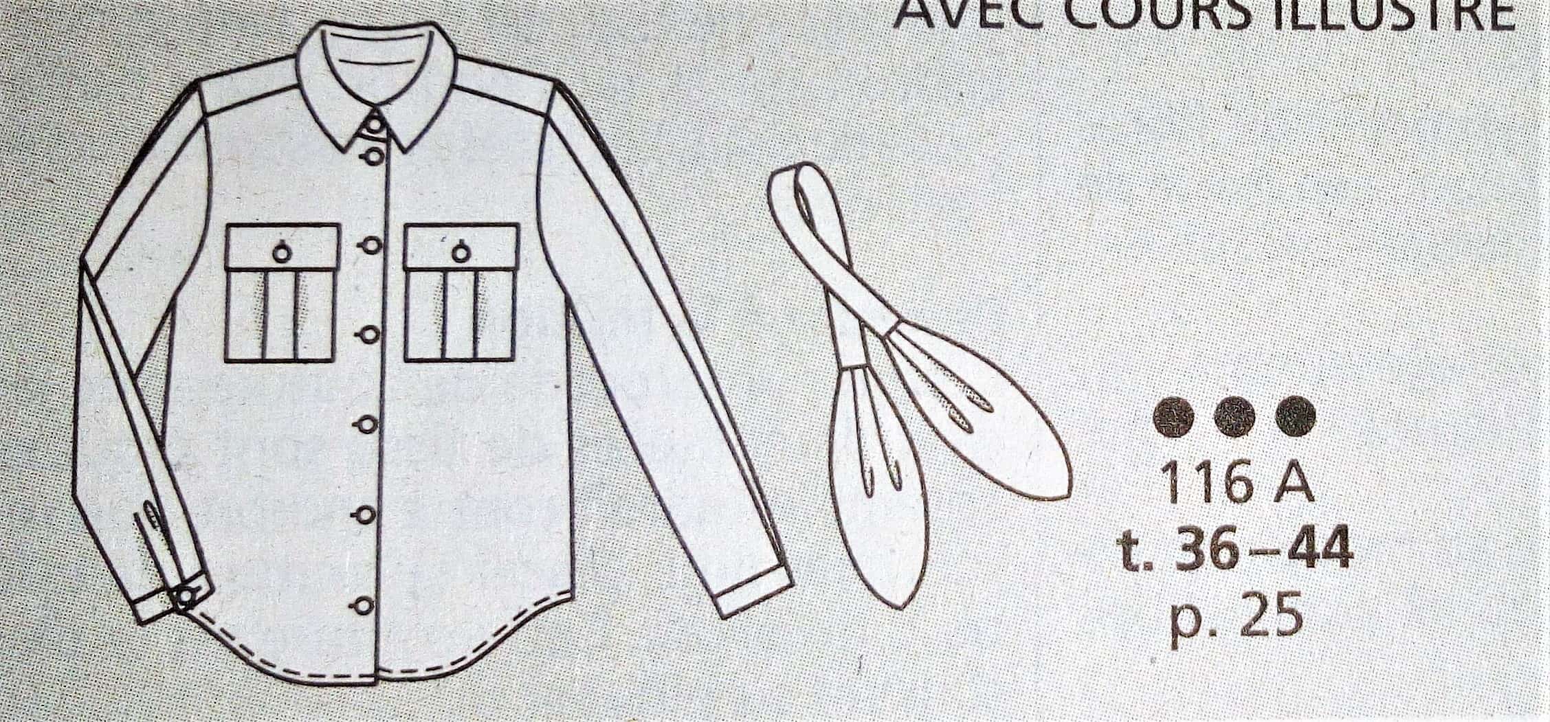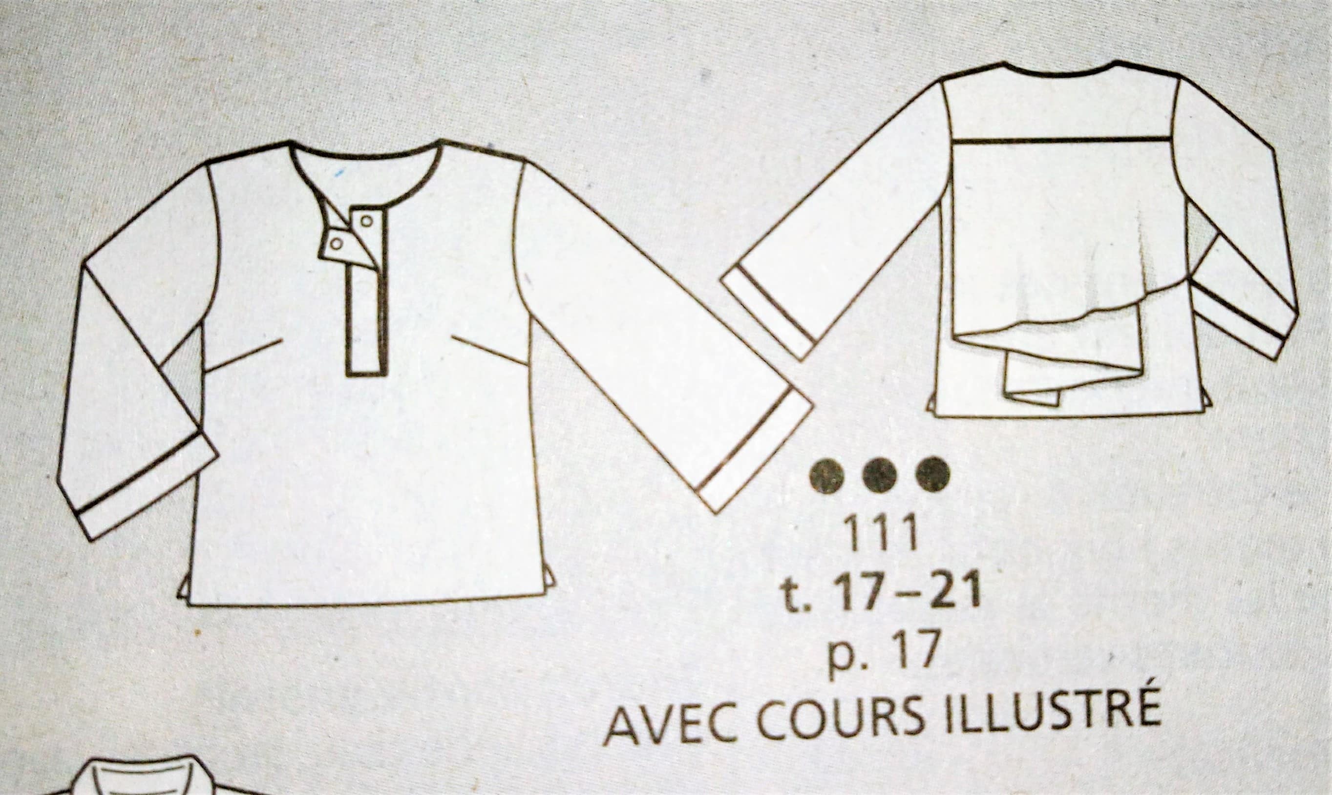 Pour une fois vous trouverez une chemise dans mon top, celle ci est originale avec son jeu de tissus et de pans dans le dos. Elle est assez simple sur le devant avec une simple pattes polo. Les manches sont larges terminées par un ourlet rapporté. Elle va de la taille 17 au 21 (tailles longues).
