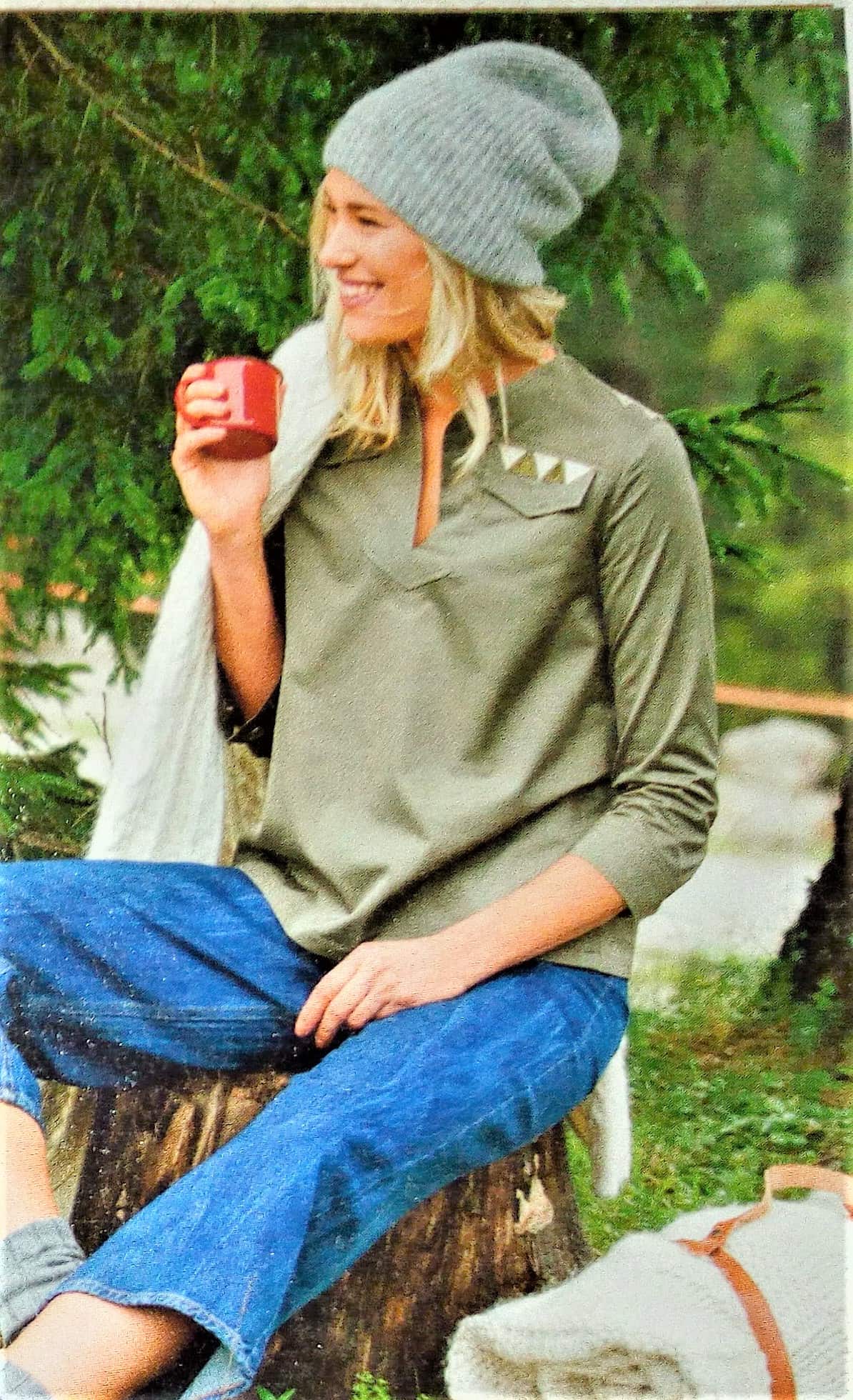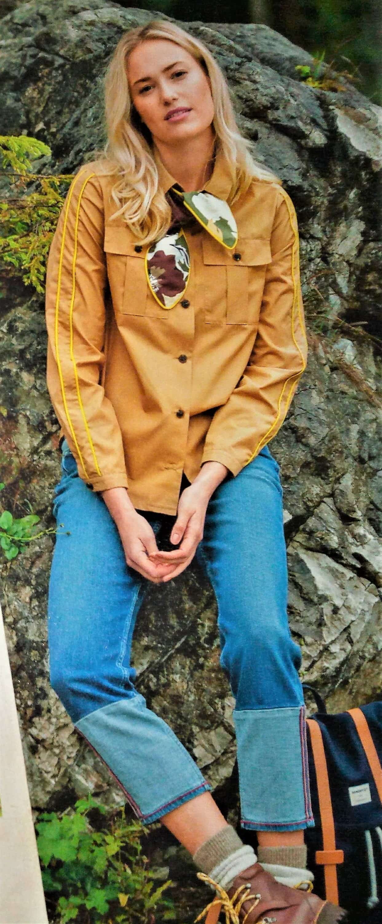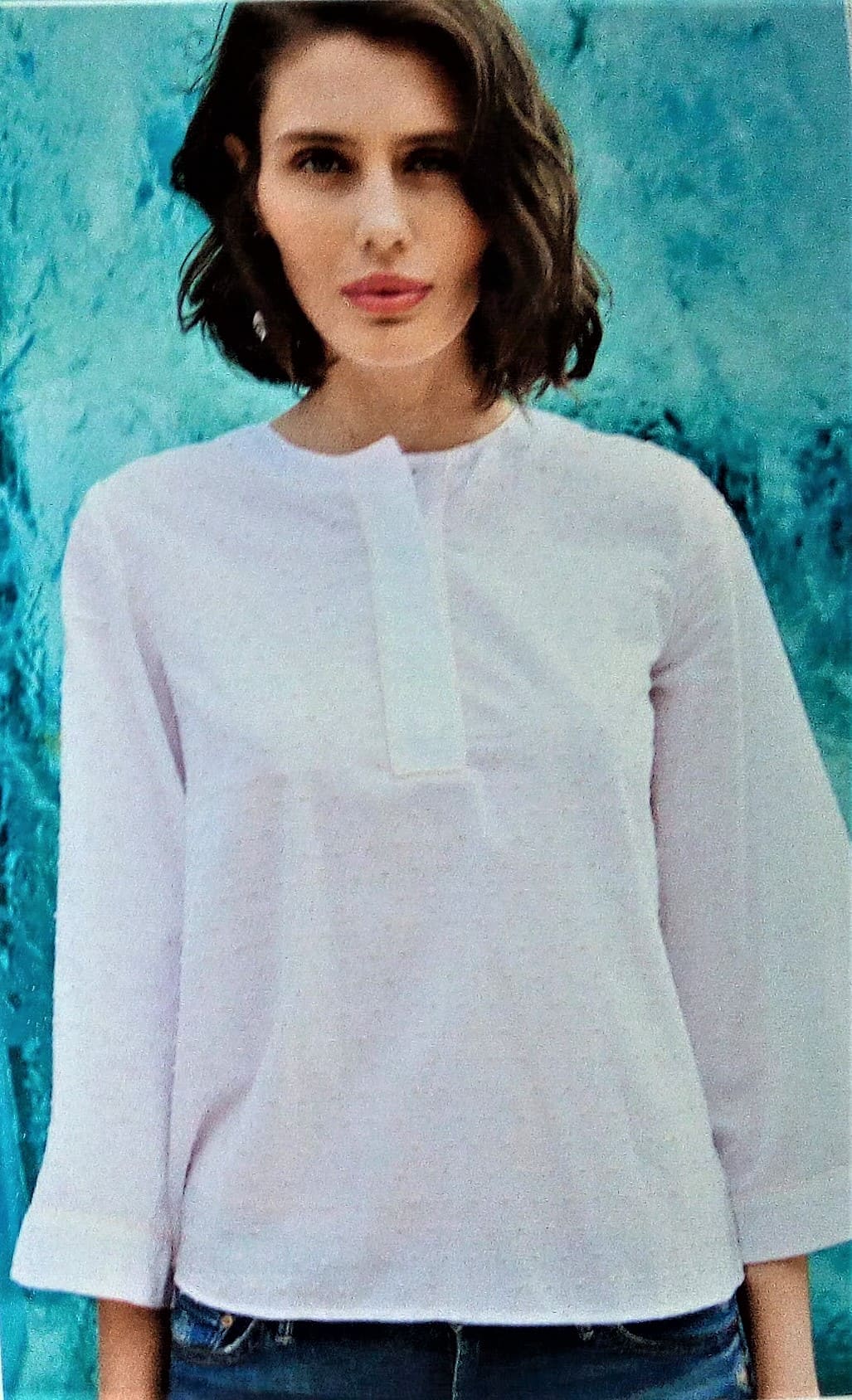 Pour une fois vous trouverez une chemise dans mon top, celle ci est originale avec son jeu de tissus et de pans dans le dos. Elle est assez simple sur le devant avec une simple pattes polo. Les manches sont larges terminées par un ourlet rapporté. Elle va de la taille 17 au 21 (tailles longues).