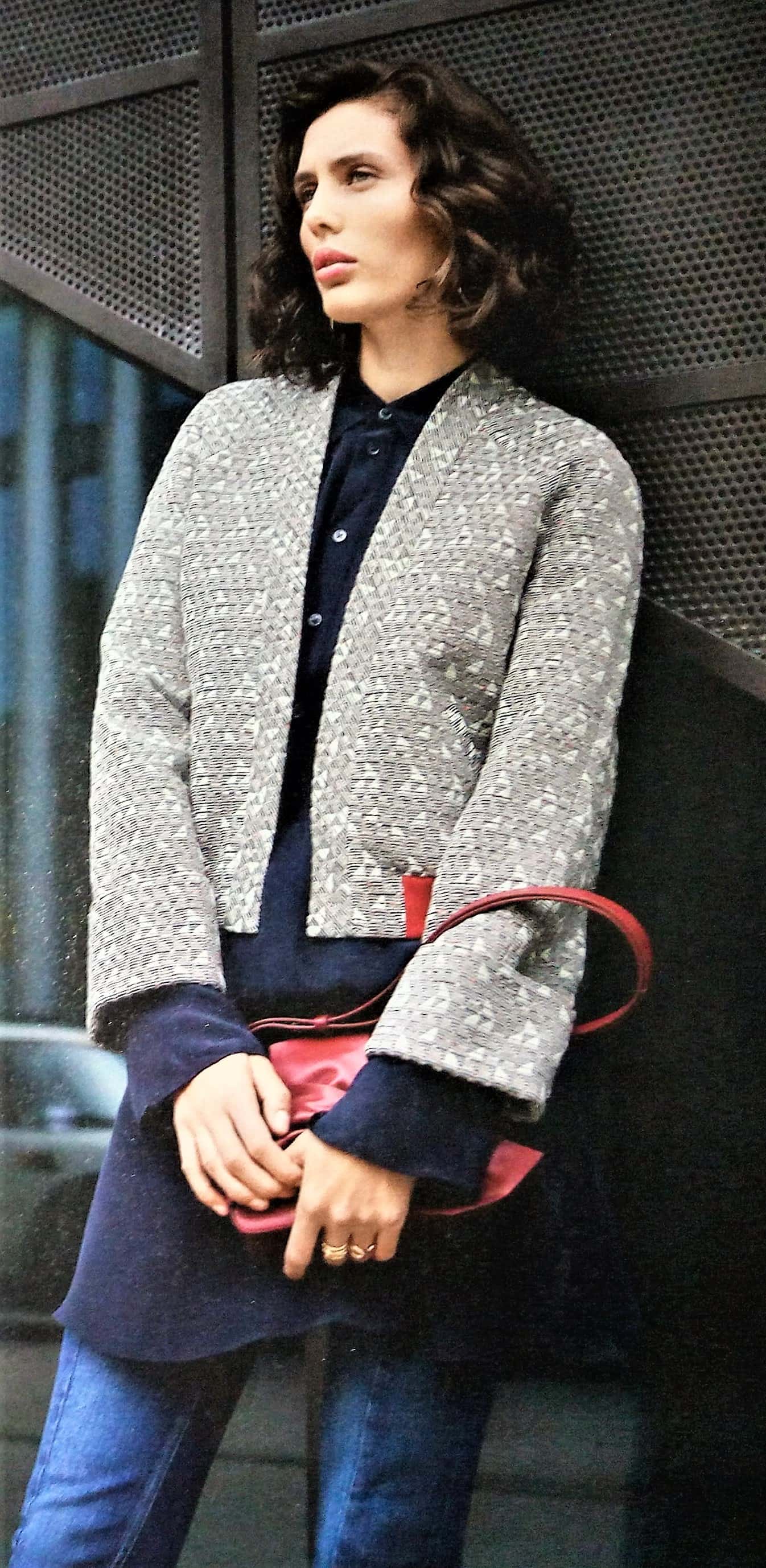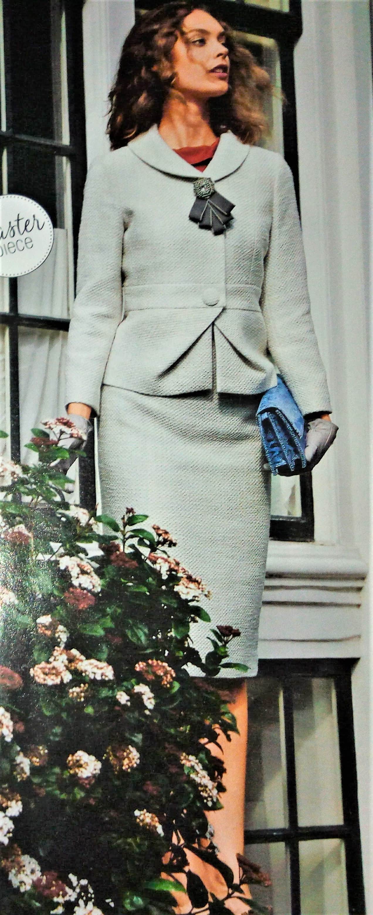 Et cette petite veste de tailleur, délicieusement rétro inspirées des 60’s. Elle possède un petit col châle, des découpes une ceinture incrustée et une basque à plis. Elle va de la taille 36 au 44.