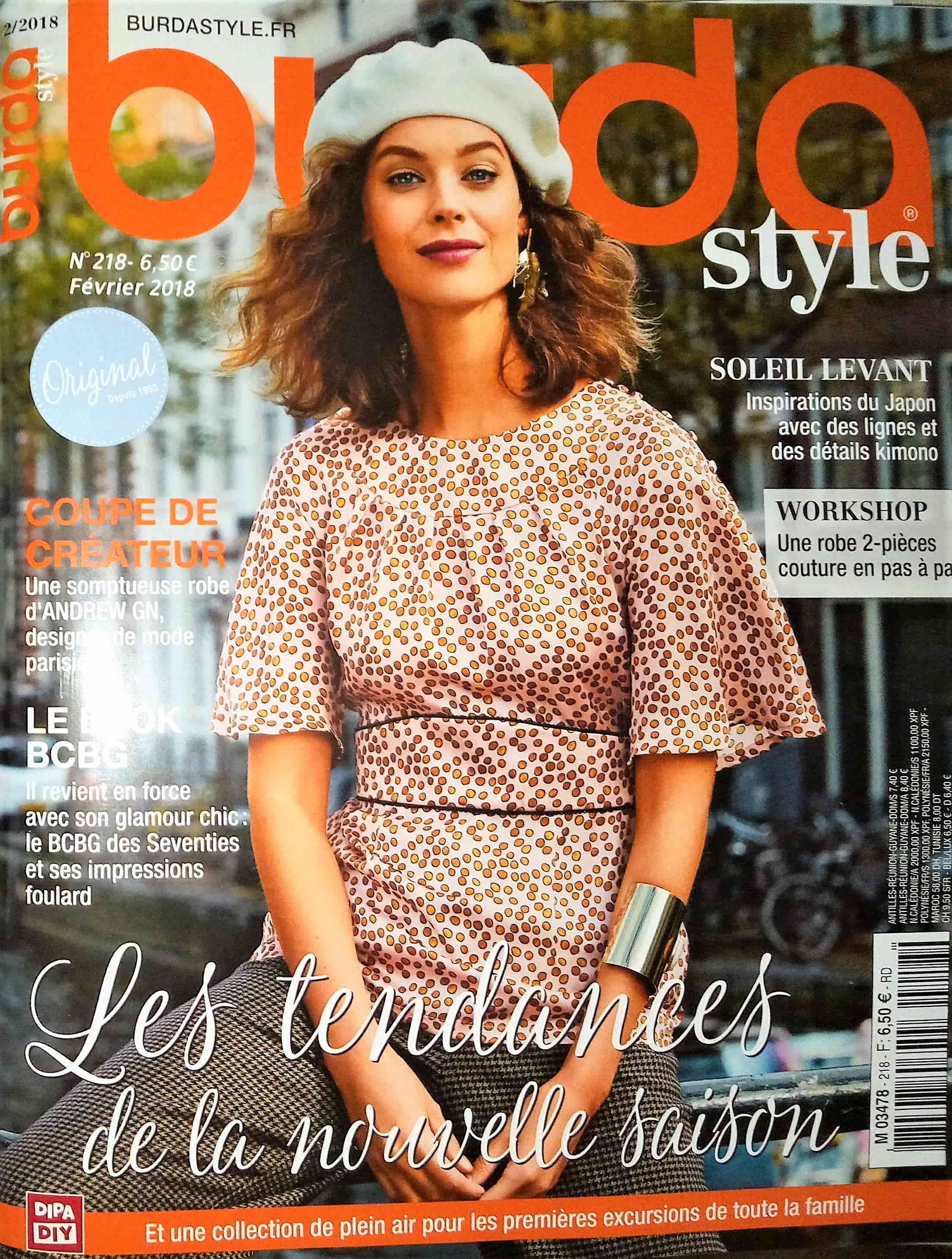 Aujourd’hui je viens vous décortiquer le dernier « Burda Style » . Il s’agit du numéro 218 de Février 2018. J’y suis abonnée, et j’avoue adorer le recevoir directement à la maison dans ma boite à lettres.