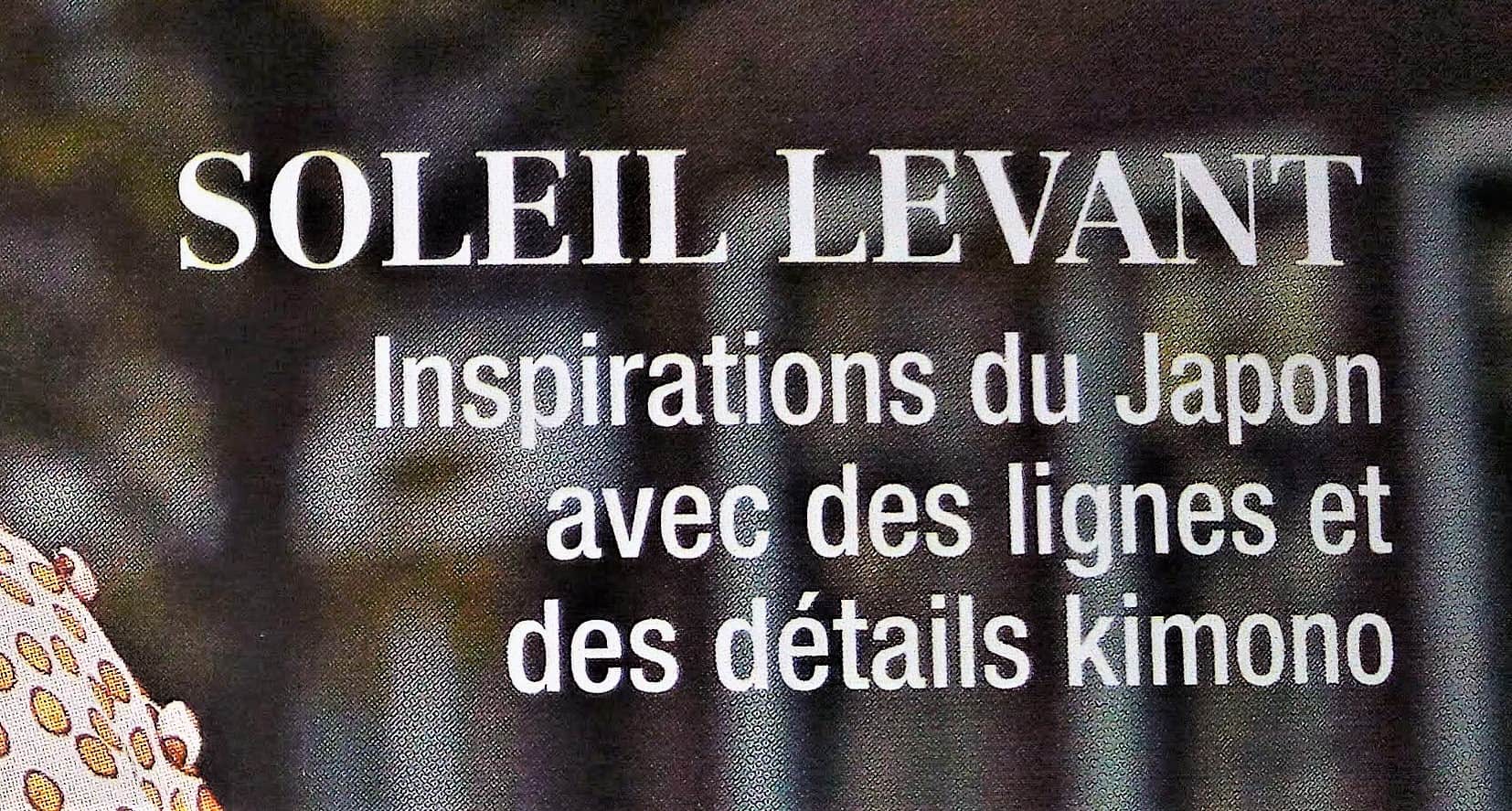 Que m’inspire ce premier bloc titre? Nous trouverons , des imprimés inspirés du Japon, des vêtements dans l’esprit Japonais. Sans surprises on nous parle de détails Kimono . Je pense plus à un Kimono un peu plus complexe que tout ceux que nous avons pu voir jusqu’à présent dans les revues couture.