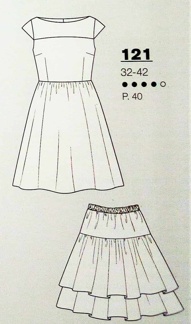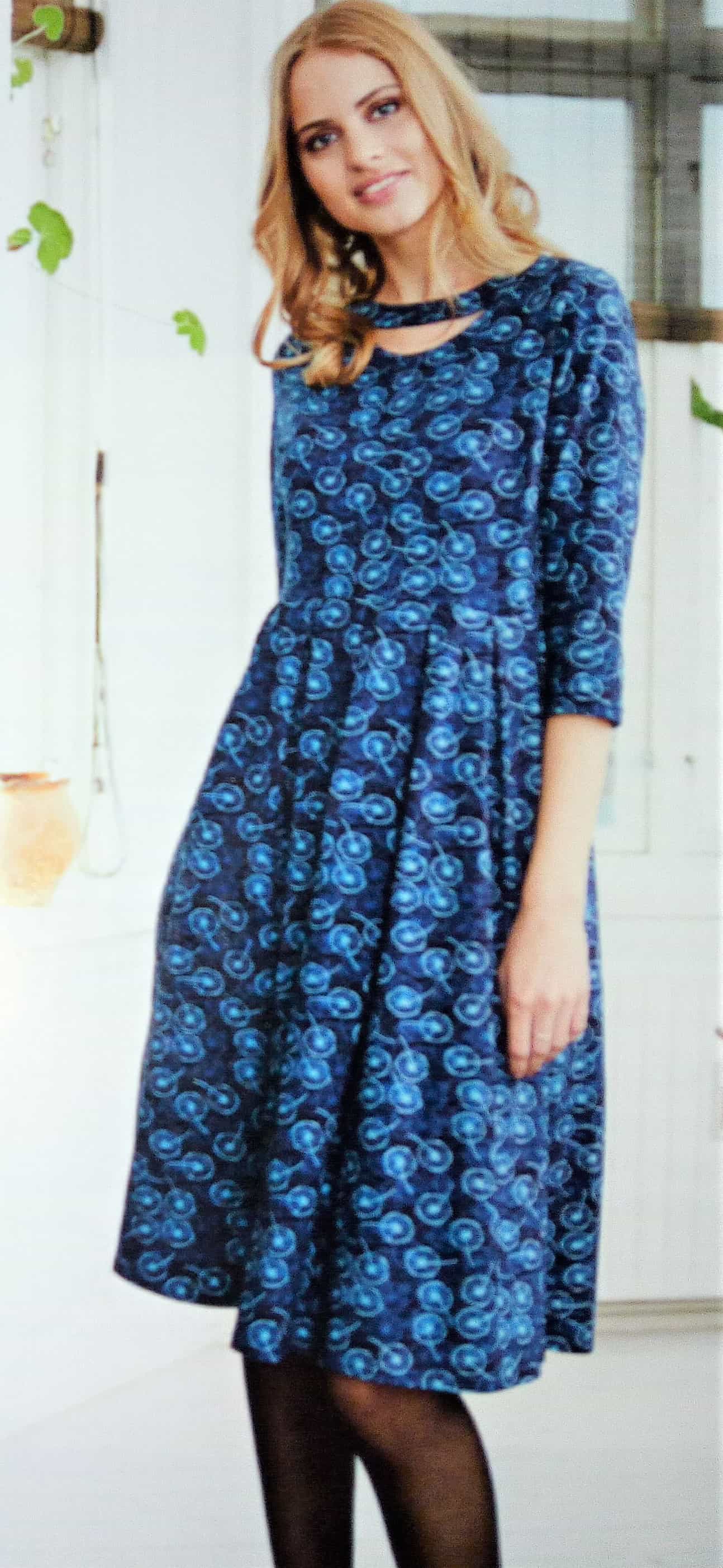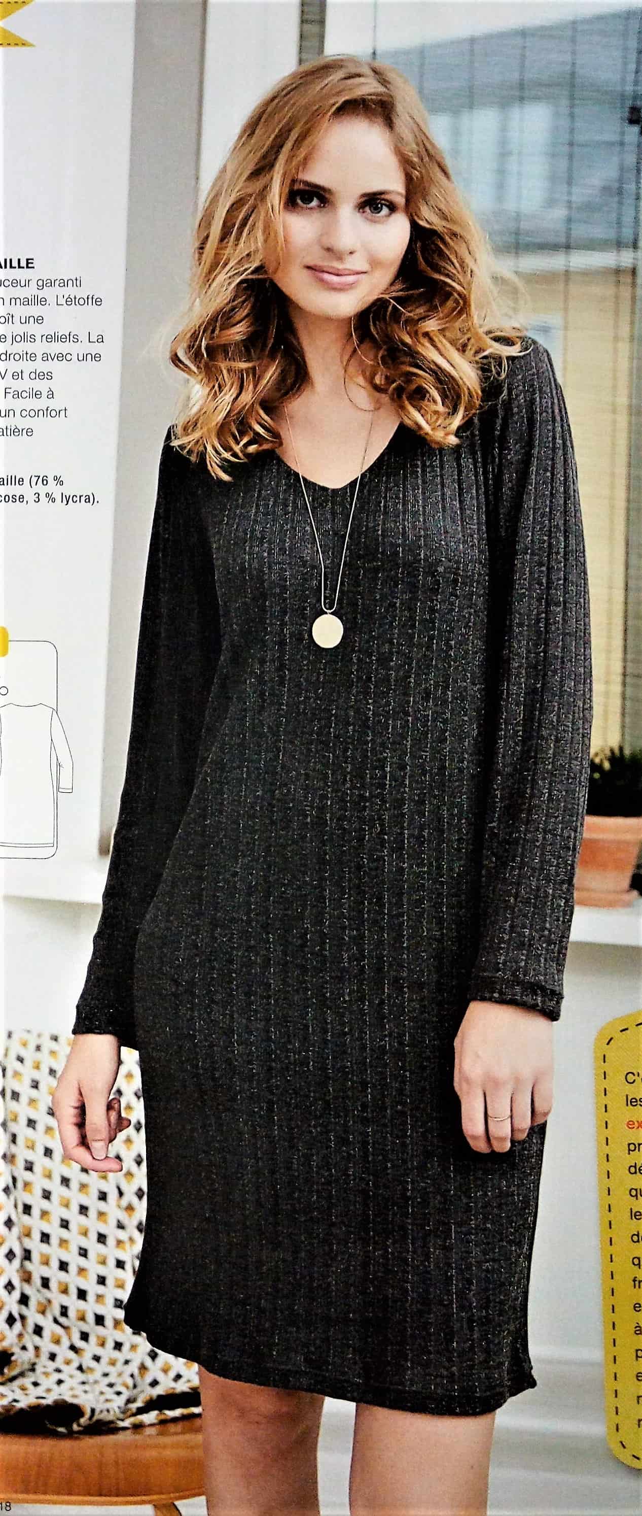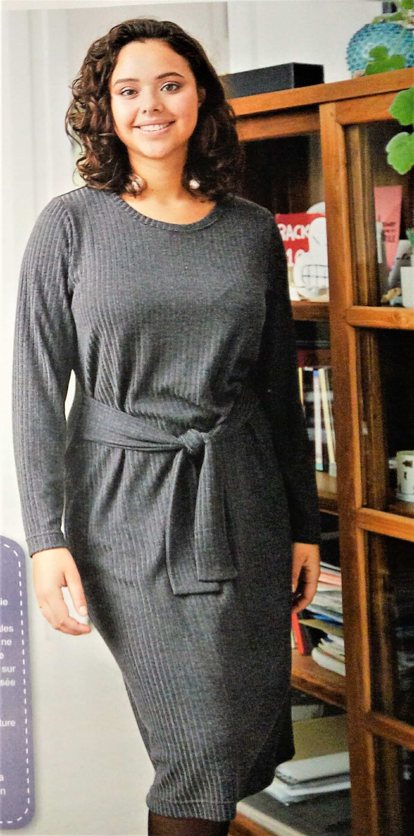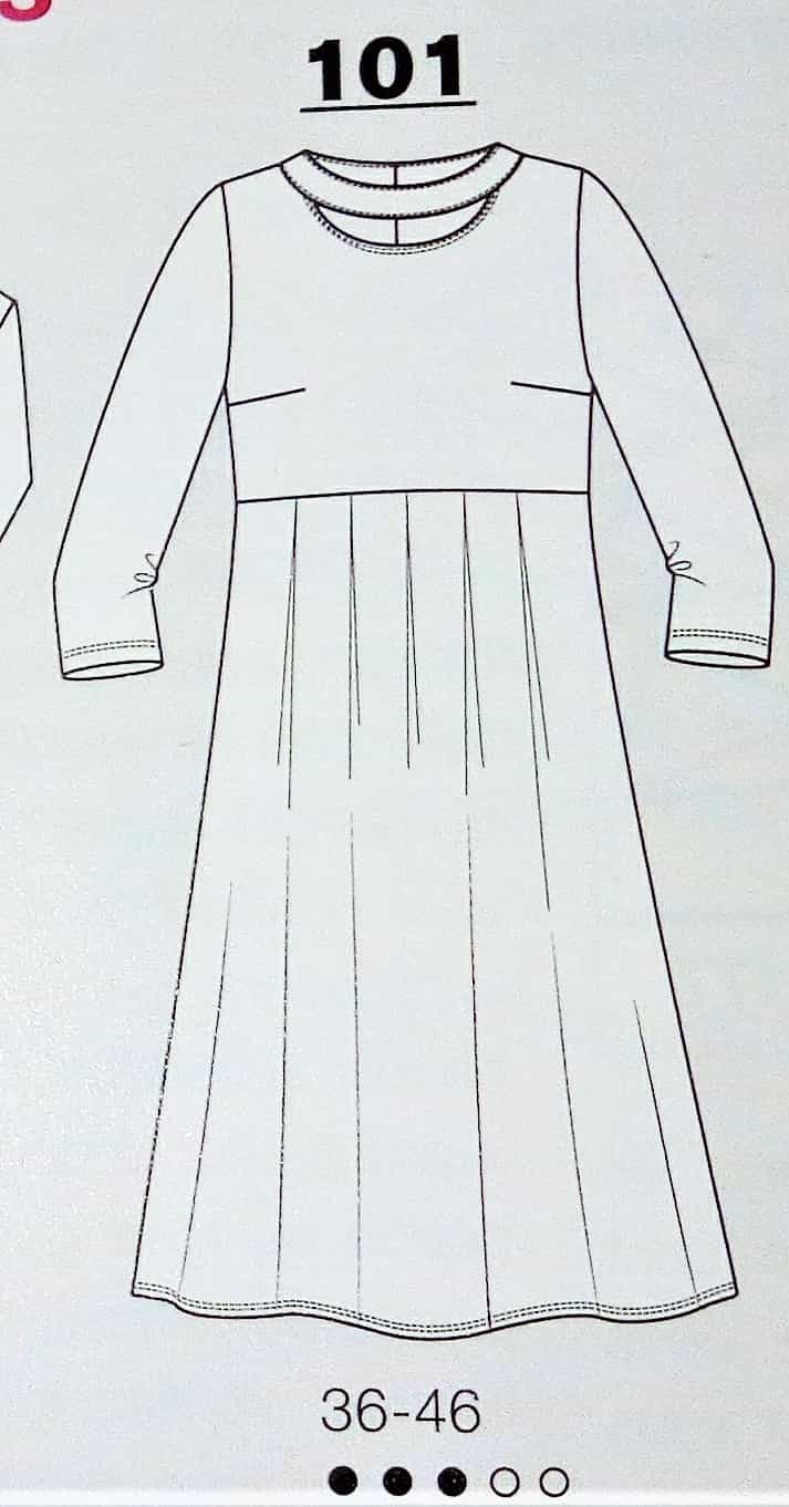Mon premier coup de coeur sera pour cette robe.La jupe a de l’ampleur grâce aux plis creux. La taille est haute. Les manches sont trois quart c’est la longueur que je préfère. Elle est assez Basique mais j’aime beaucoup son encolure arrondie avec un parement. Elle va de la taille 36 au 46