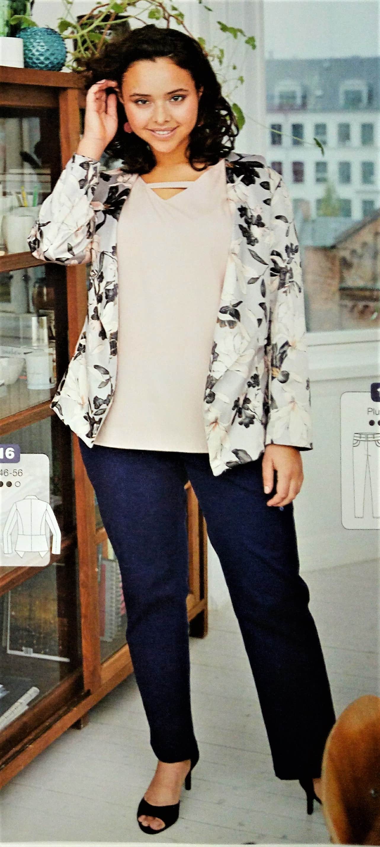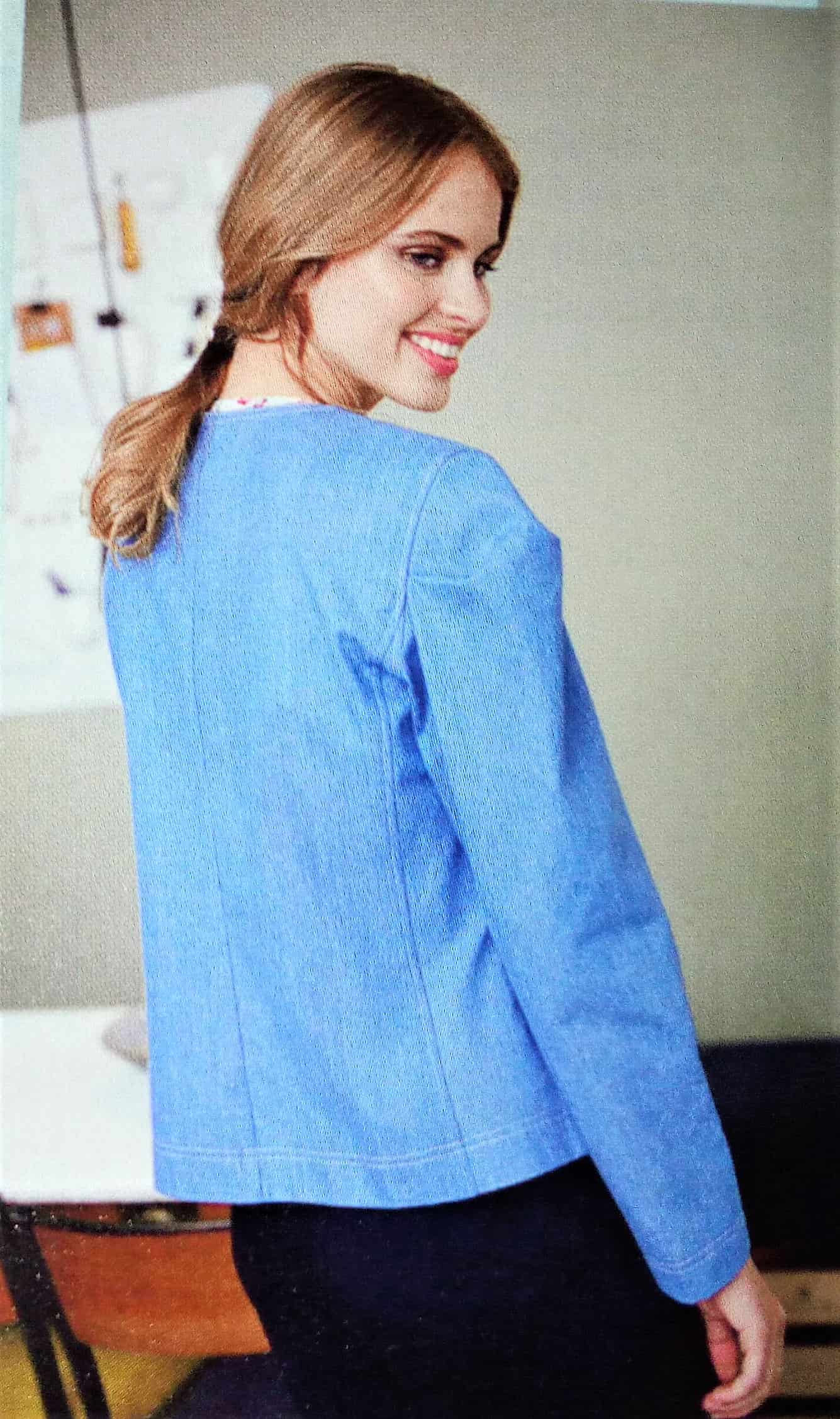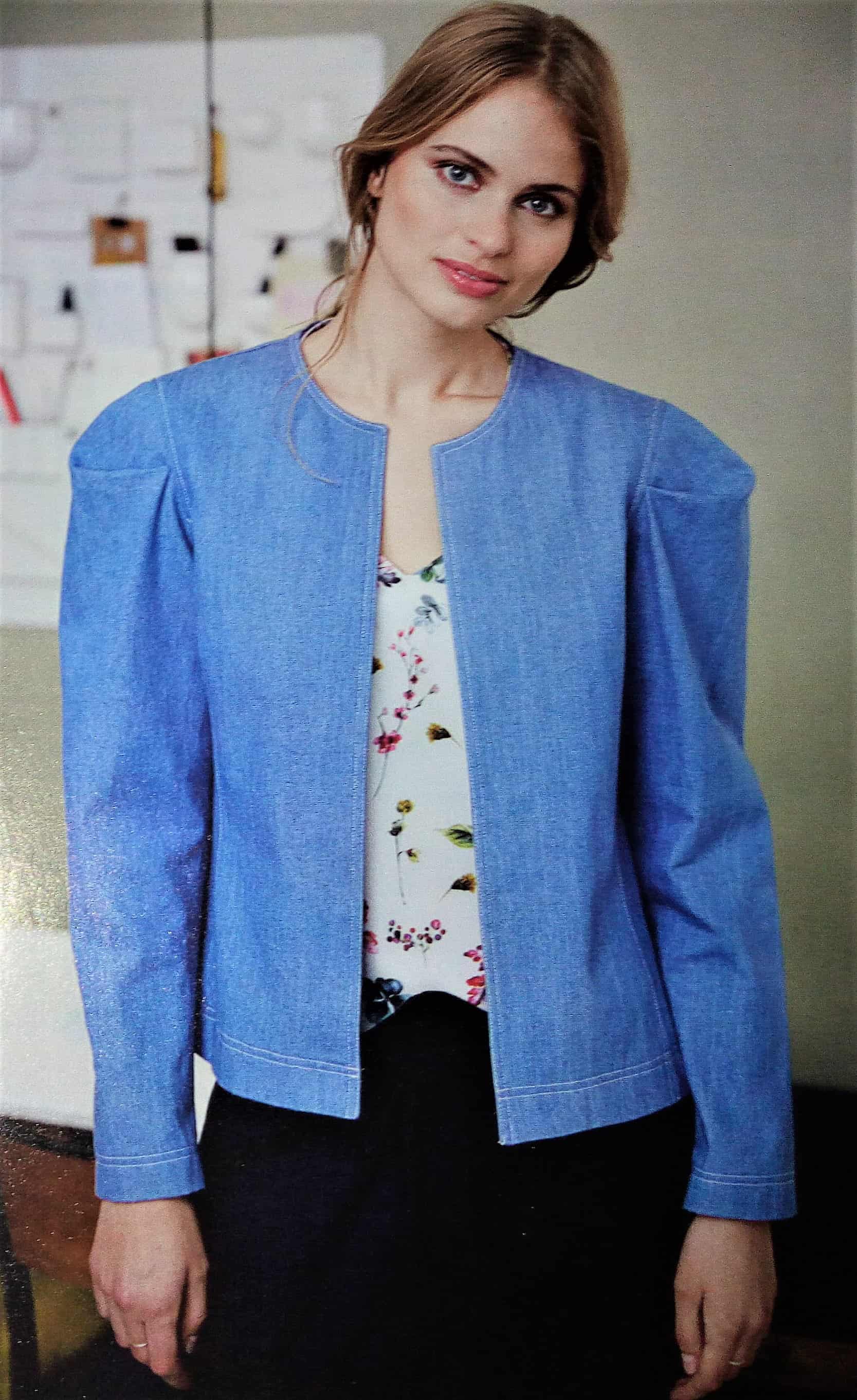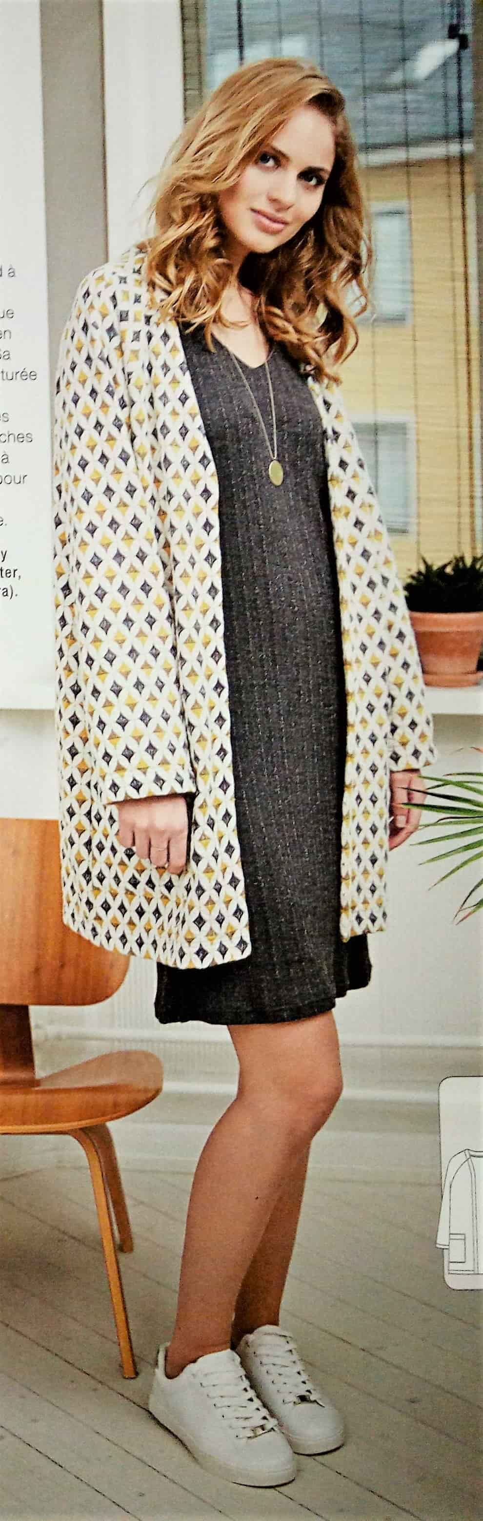 Voici une veste basique de coupe boxy ( pour celle qui comme moi ignore ce que c’est voici un lien ici qui vous l’expliquera ce que c’est). L’originalité est dans les plis astucieux à la tête de manches. Cette veste va du 36 au 46.