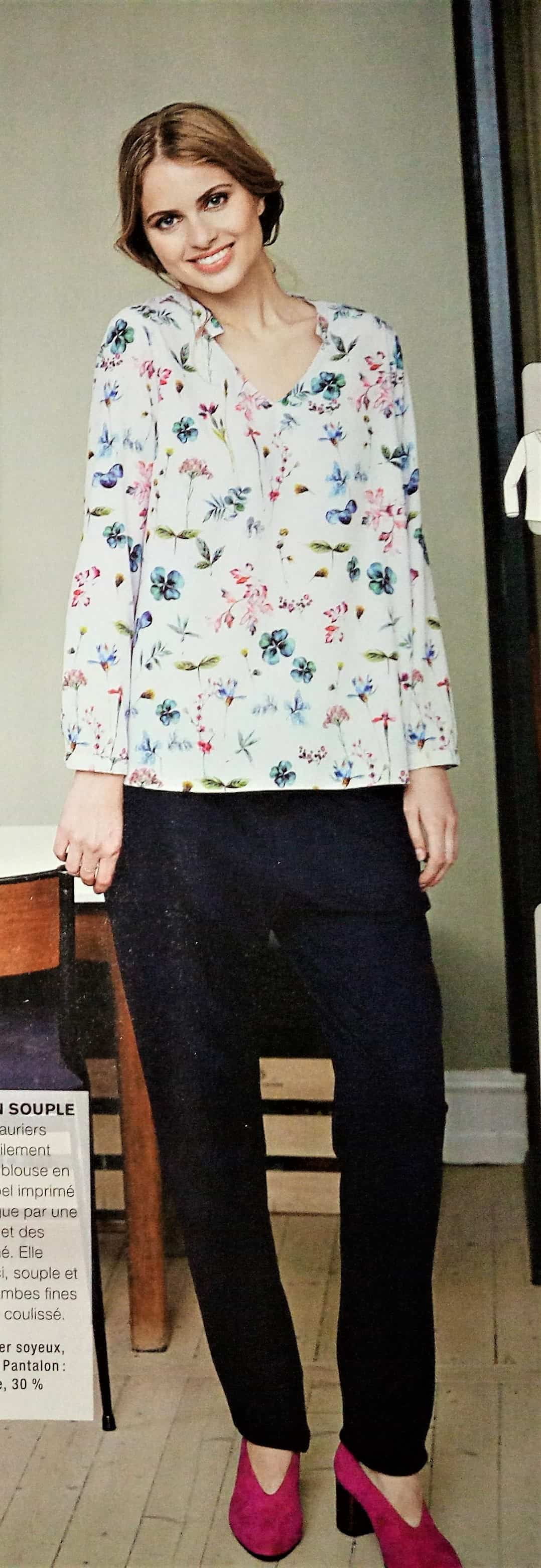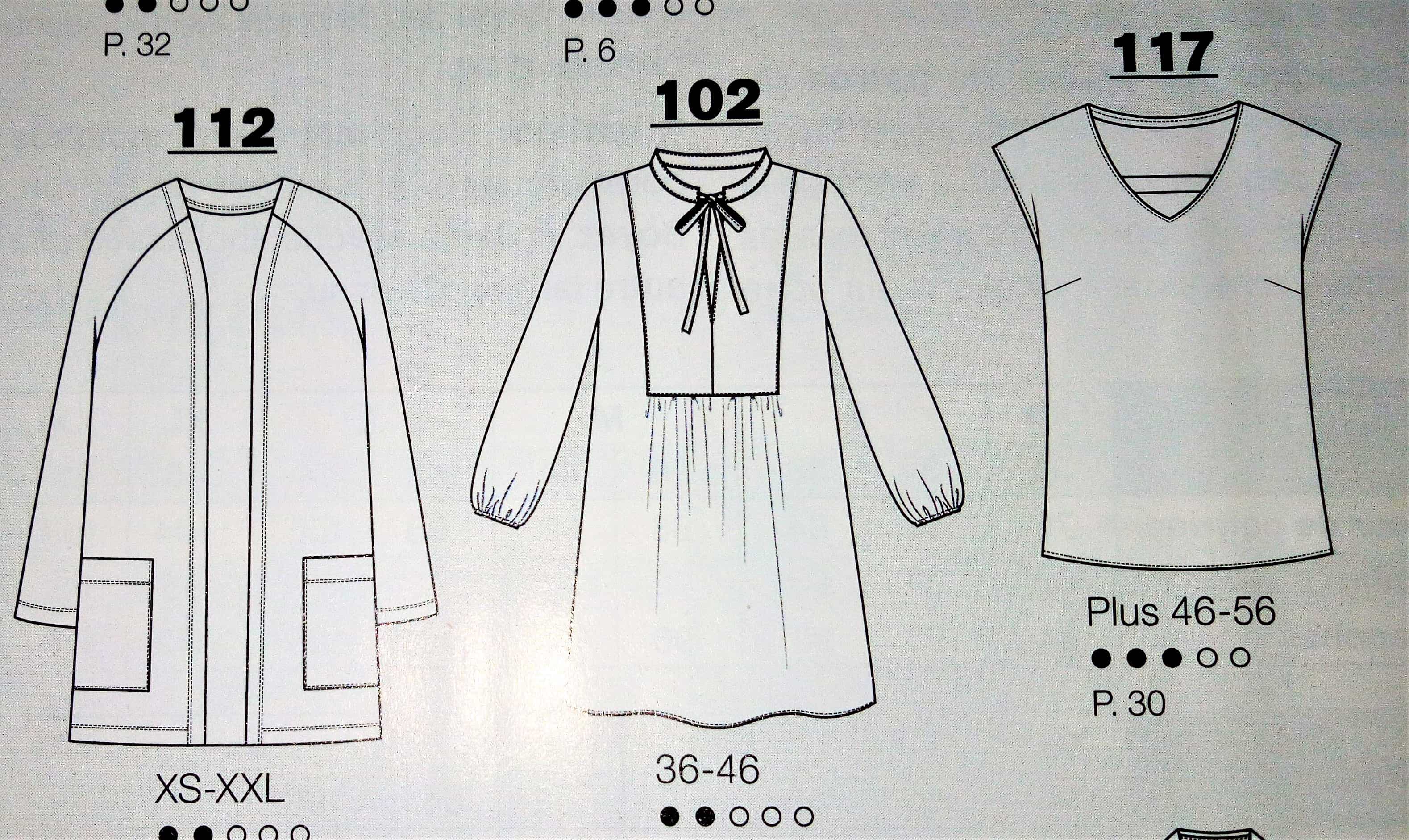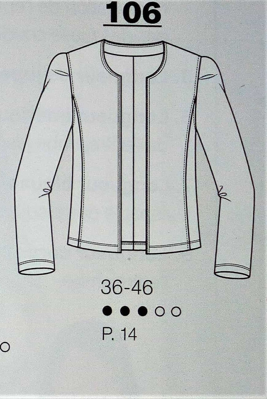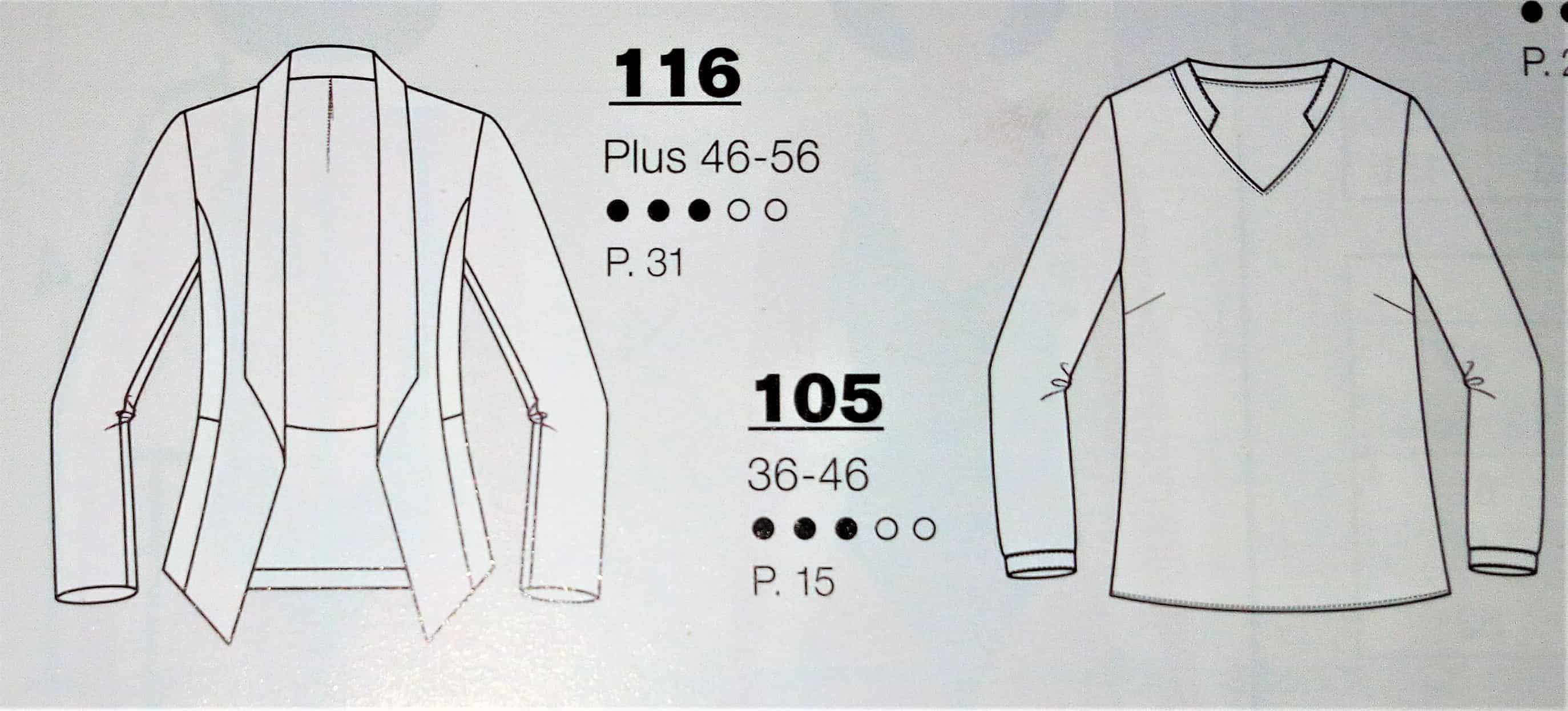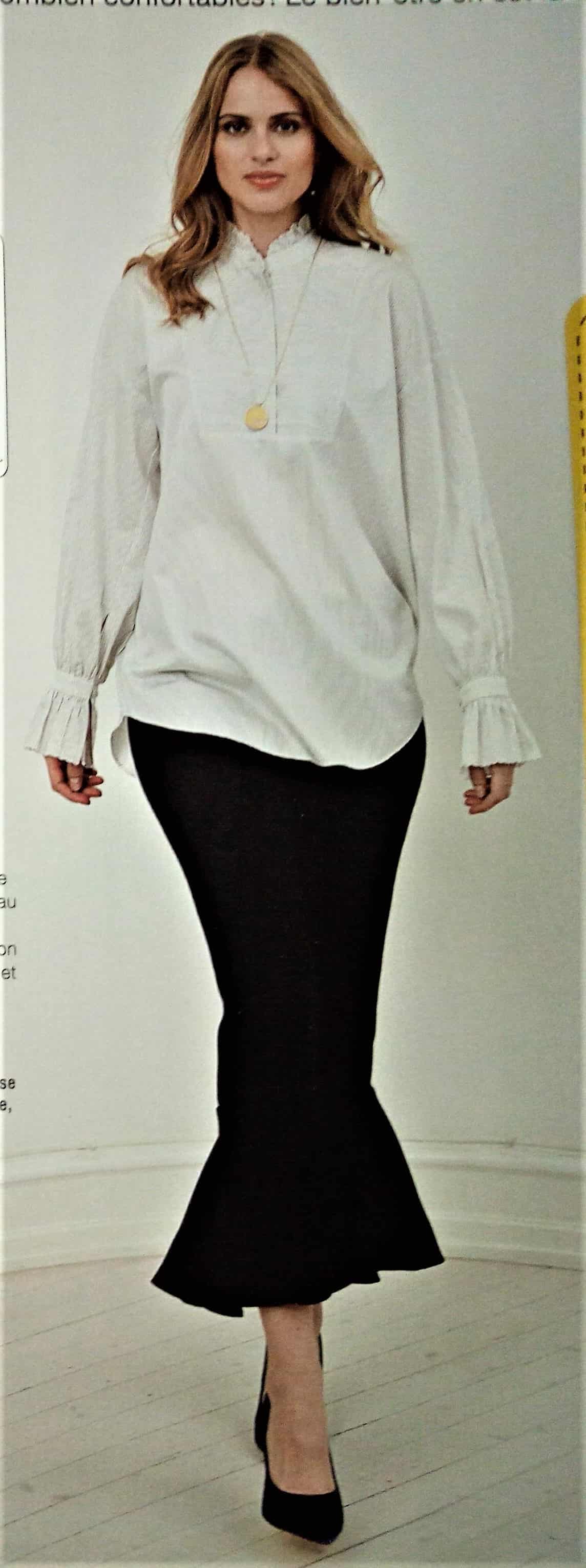 Voici une veste basique de coupe boxy ( pour celle qui comme moi ignore ce que c’est voici un lien ici qui vous l’expliquera ce que c’est). L’originalité est dans les plis astucieux à la tête de manches. Cette veste va du 36 au 46.