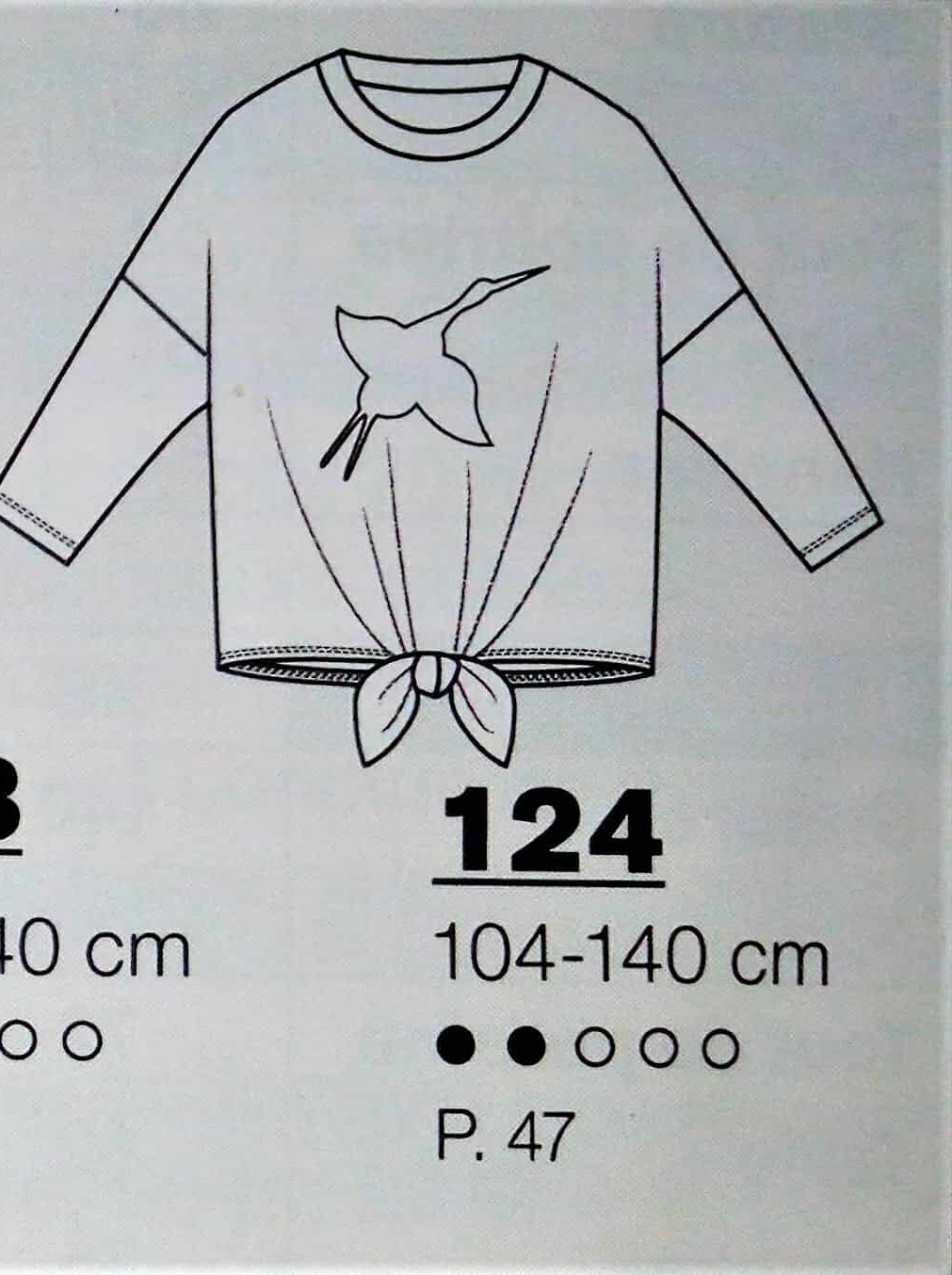 La dernière piece de mon top sera pour cette tunique qui va du 104 au 140. Elle est toute simple avec ses manches longues. Le devant est noué .