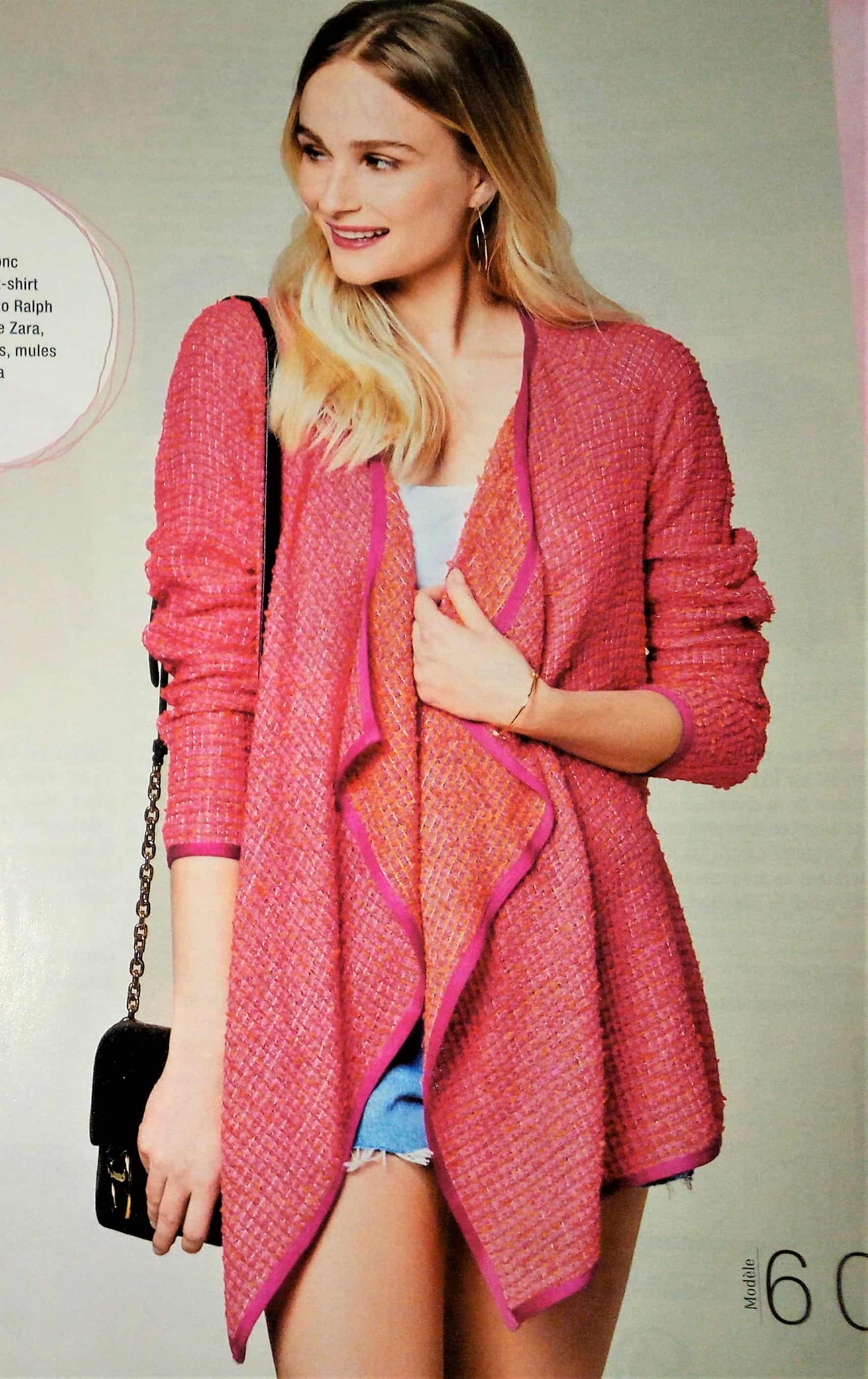 Si vous me suivez depuis quelques temps déjà vous n’ignorez pas que j’adore ce genre de veste. Elle est toute simple à réaliser avec ses manches raglans. Ici ce que j’aime, c’est le choix judicieux des matières. Je la trouve superbe dans le simili rose, pas vous?