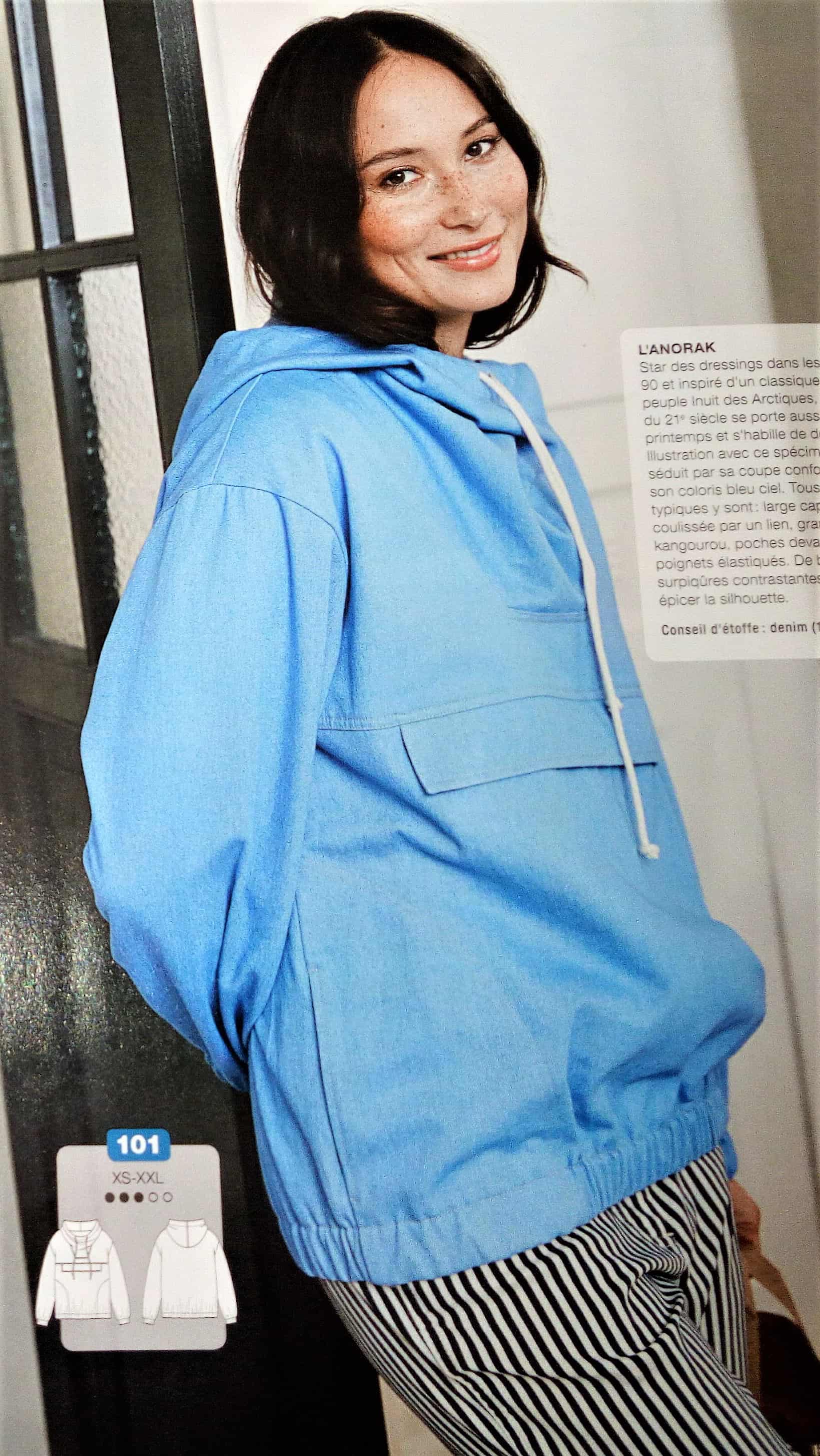 Vous apprendrez au travers de plusieurs tutos à monter les poches de l’anorak et à les surpiquer ainsi que comment coudre des poches poitrines ( qui sont des poches plaquées). Mais aussi comment abaisser des emmanchures, et rectifier la tête de manche.