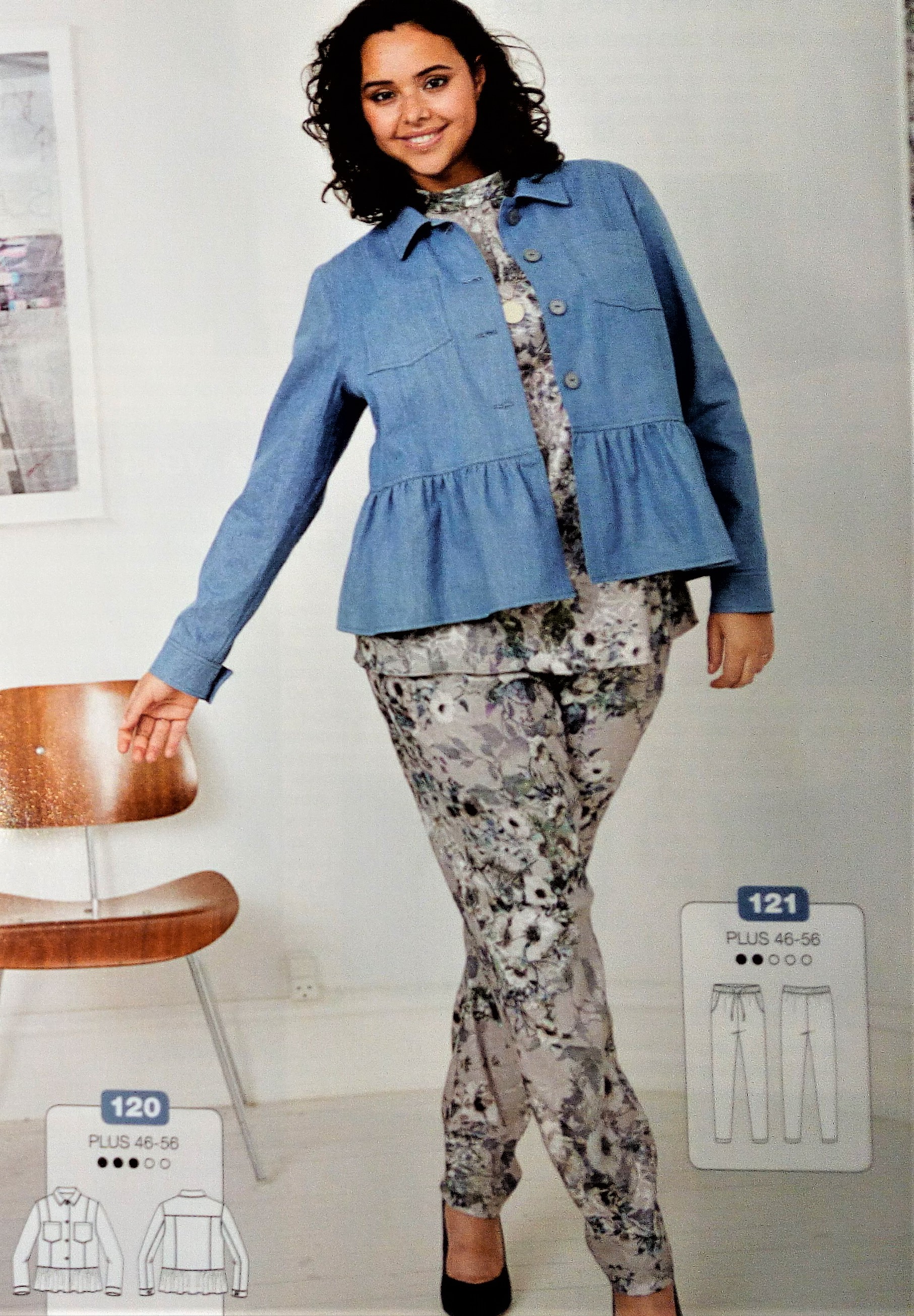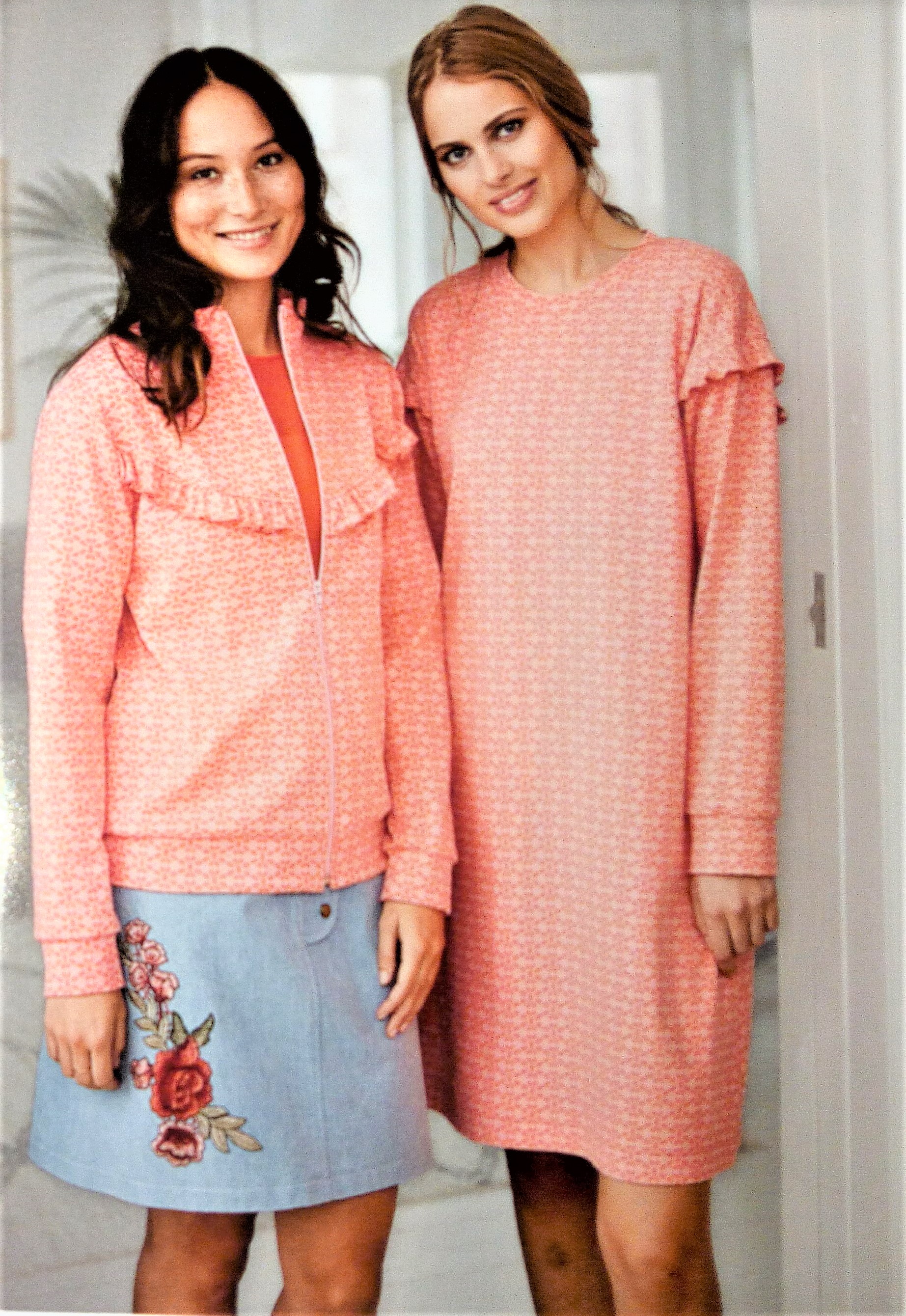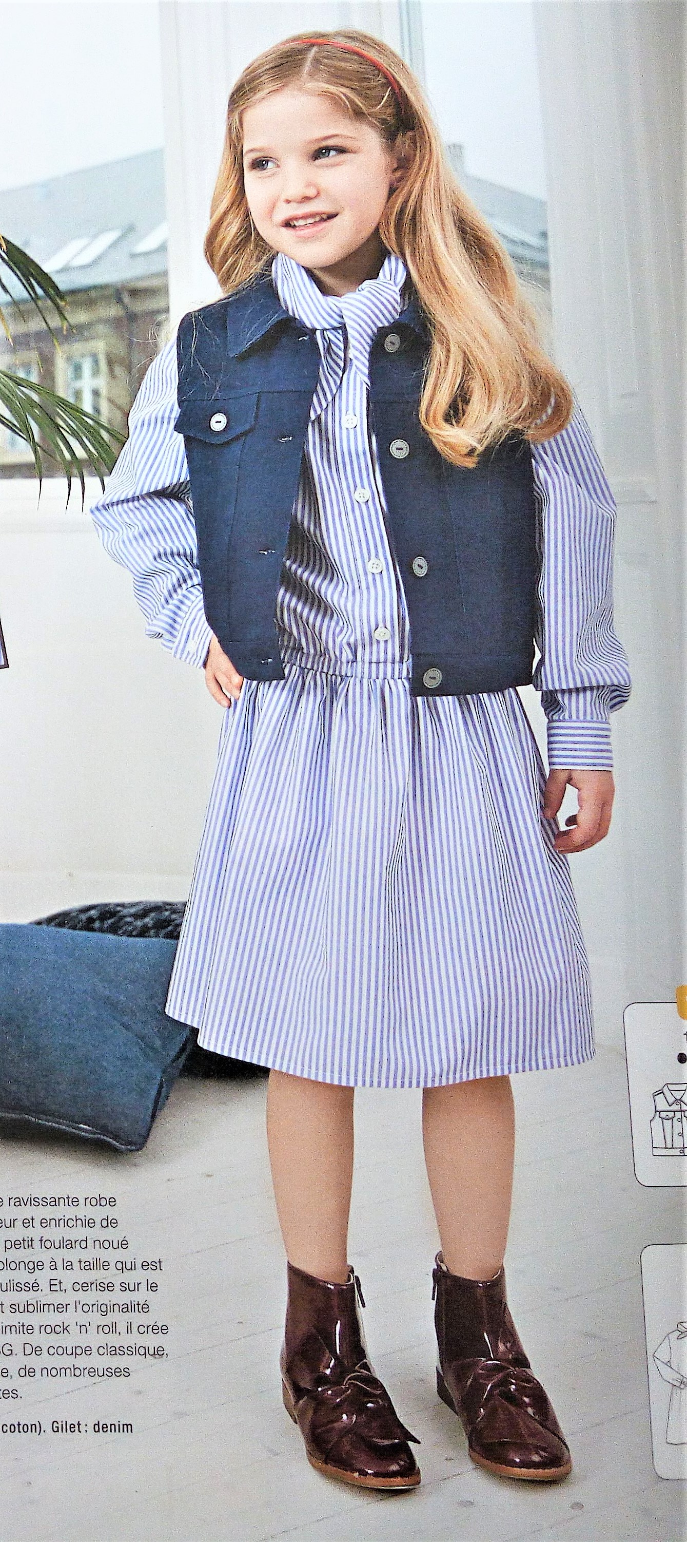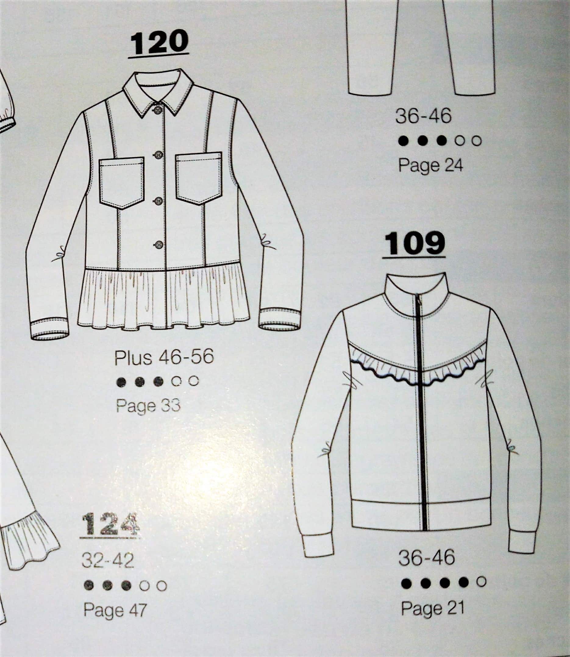 Encore pour ma pepette, ce coup ci des vêtements qui commencent à la taille 32, les ados sont trop souvent délaissés dans les revues couture, donc là je suis ravie de trouver une tenue complète. Il s’agit d’une blouse avec sa basque en forme de volant froncé tout comme les bas de manches. Le « pantacool » est réalisé en jersey , il est de forme droite et coulissé à la taille. Ils vont tous les deux du 32 au 42.